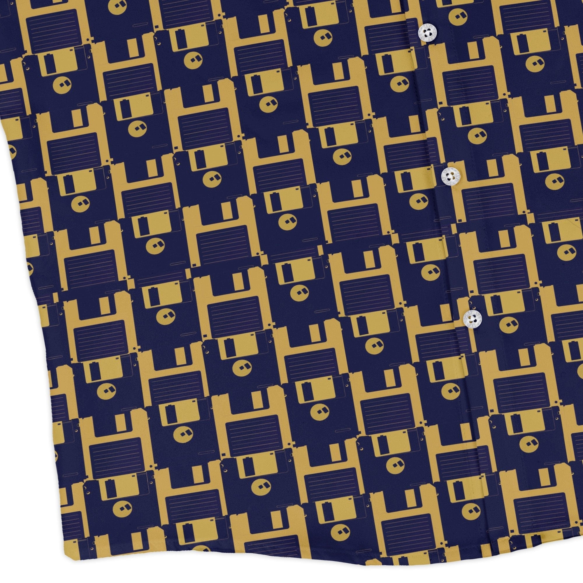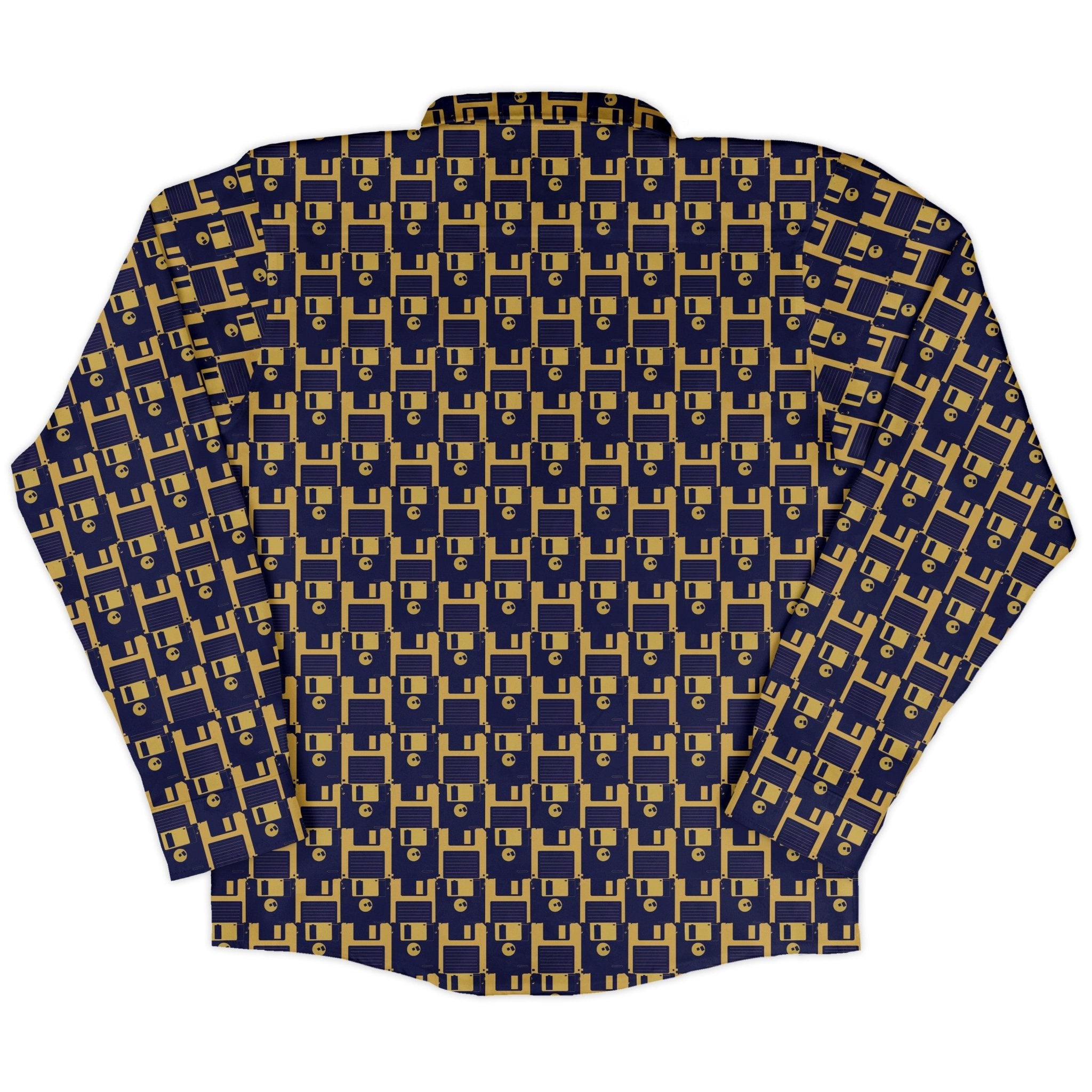 Meet the Floppy Disk Yellow Blue Long Sleeve Button Up Shirt, a retro love letter to the era of manual saves. An all-over field of yellow-and-blue floppy disks pops in a high-contrast palette, with the pattern matching cleanly across the chest pocket for a tidy, nerd-smart finish. Soft, breathable, and built for everyday quests, it layers or stands alone with ease. Designed by Random Galaxy and proudly artist-supported.