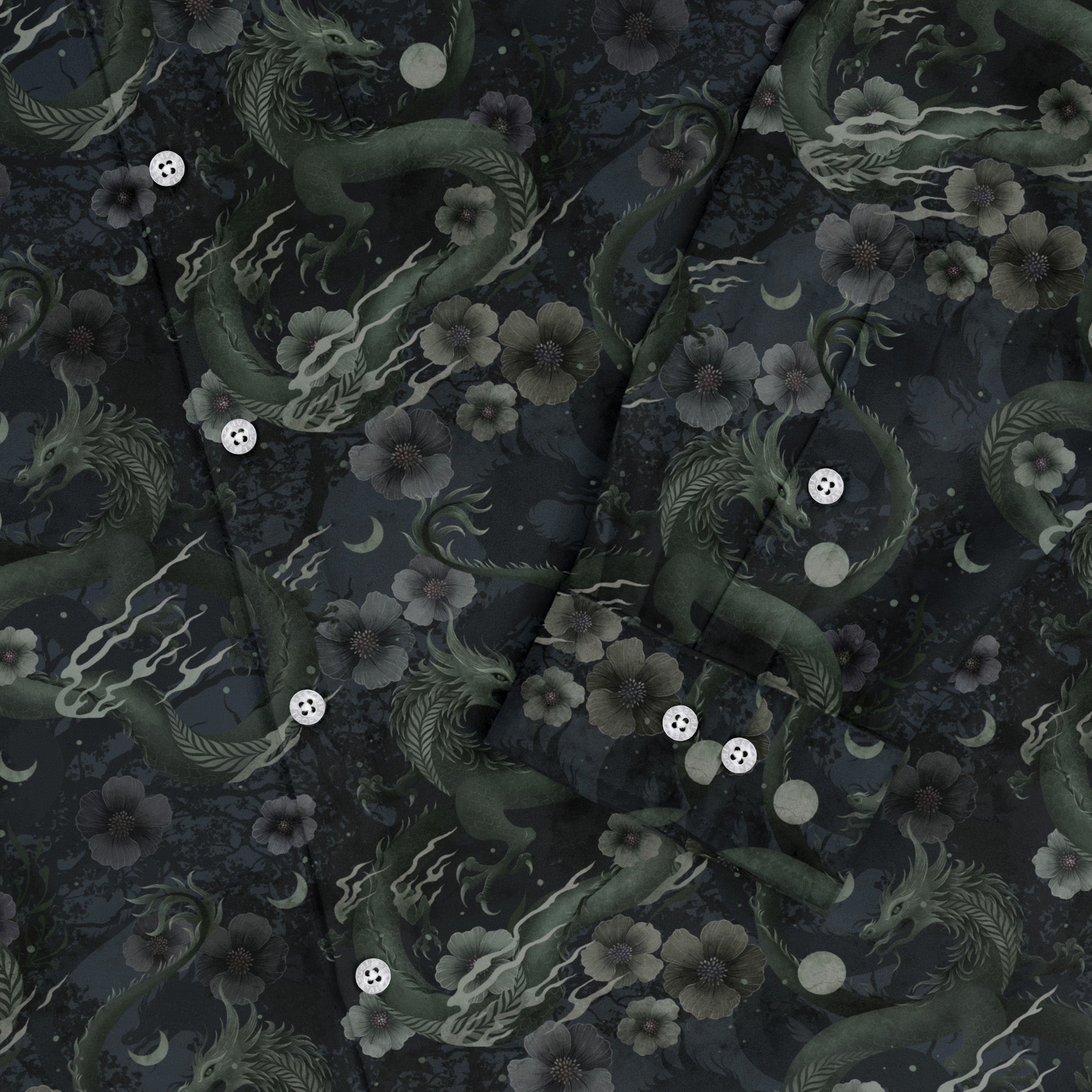 Meet the Floral Dragon Fog Long Sleeve Button Up Shirt, where myth drifts through garden mist. Designed by Episodic, it layers smoke-like gradients with elegant dragon motifs weaving between delicate florals, all aligned so the artwork flows cleanly across the front and pocket. Ready for work, date night, or the con floor—with eco-conscious inks and artist-backed cred.