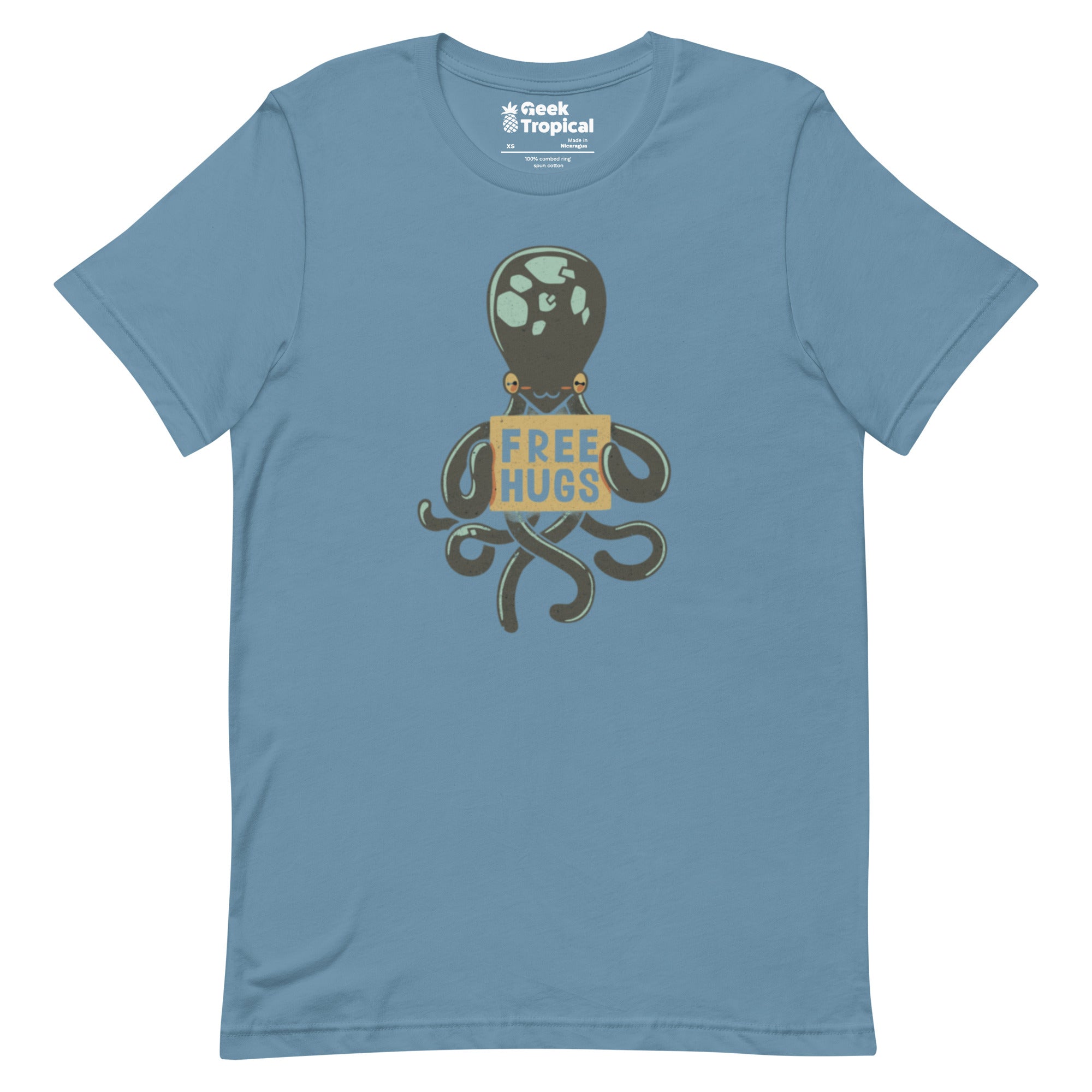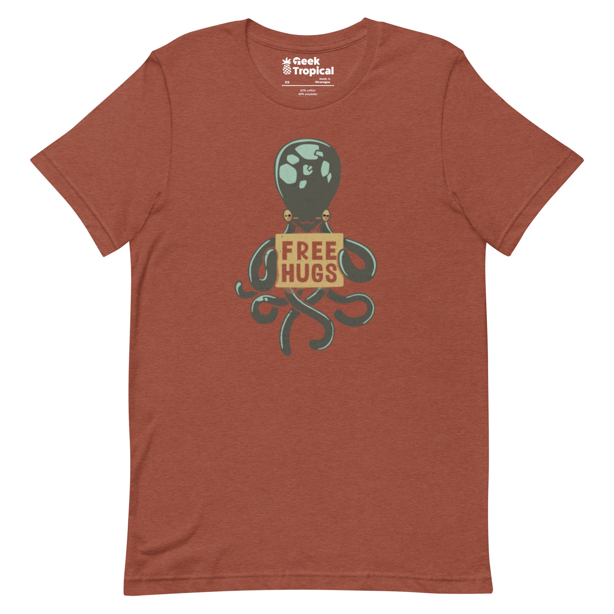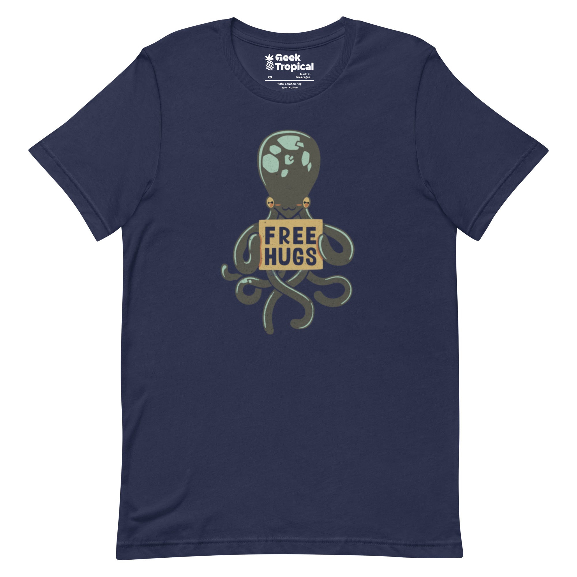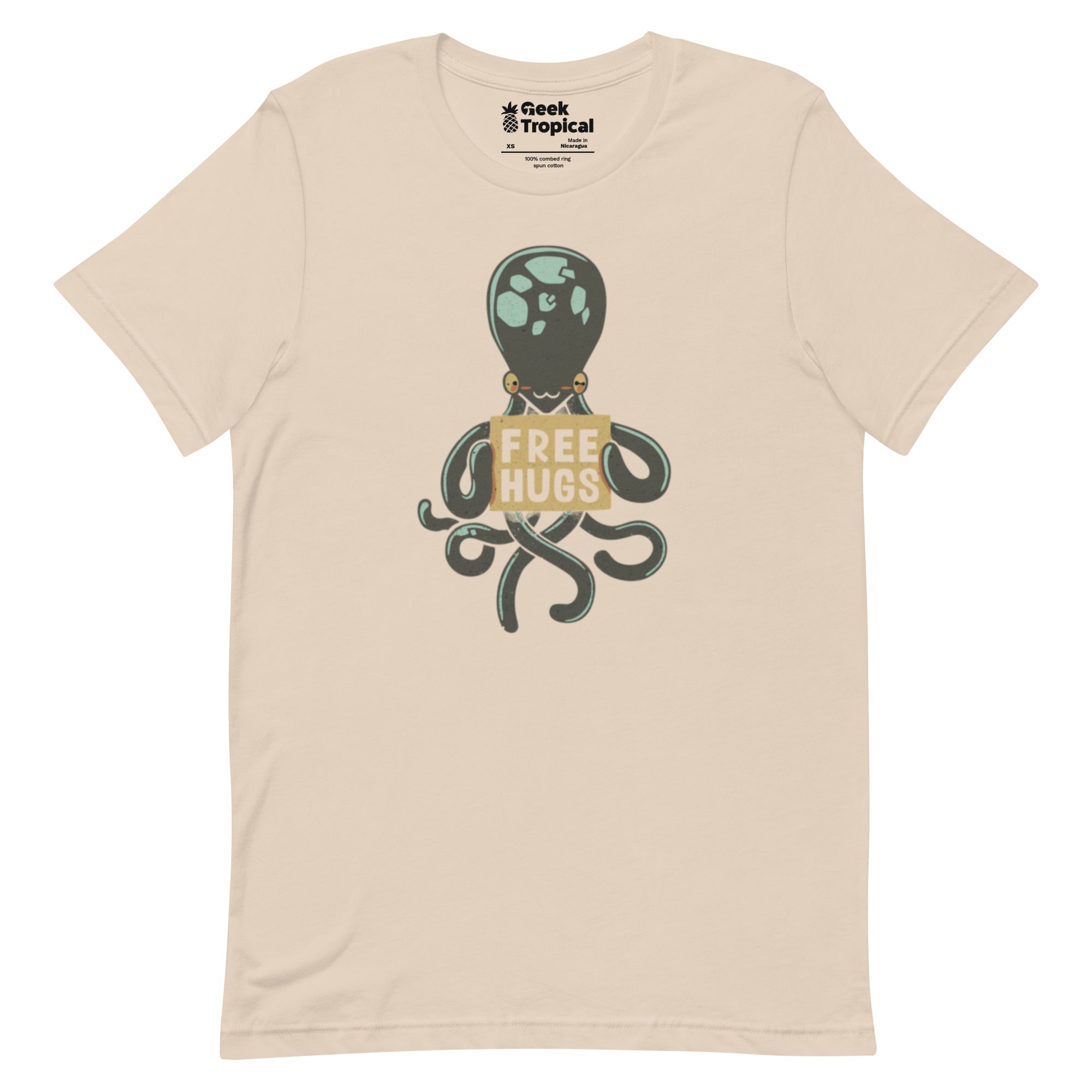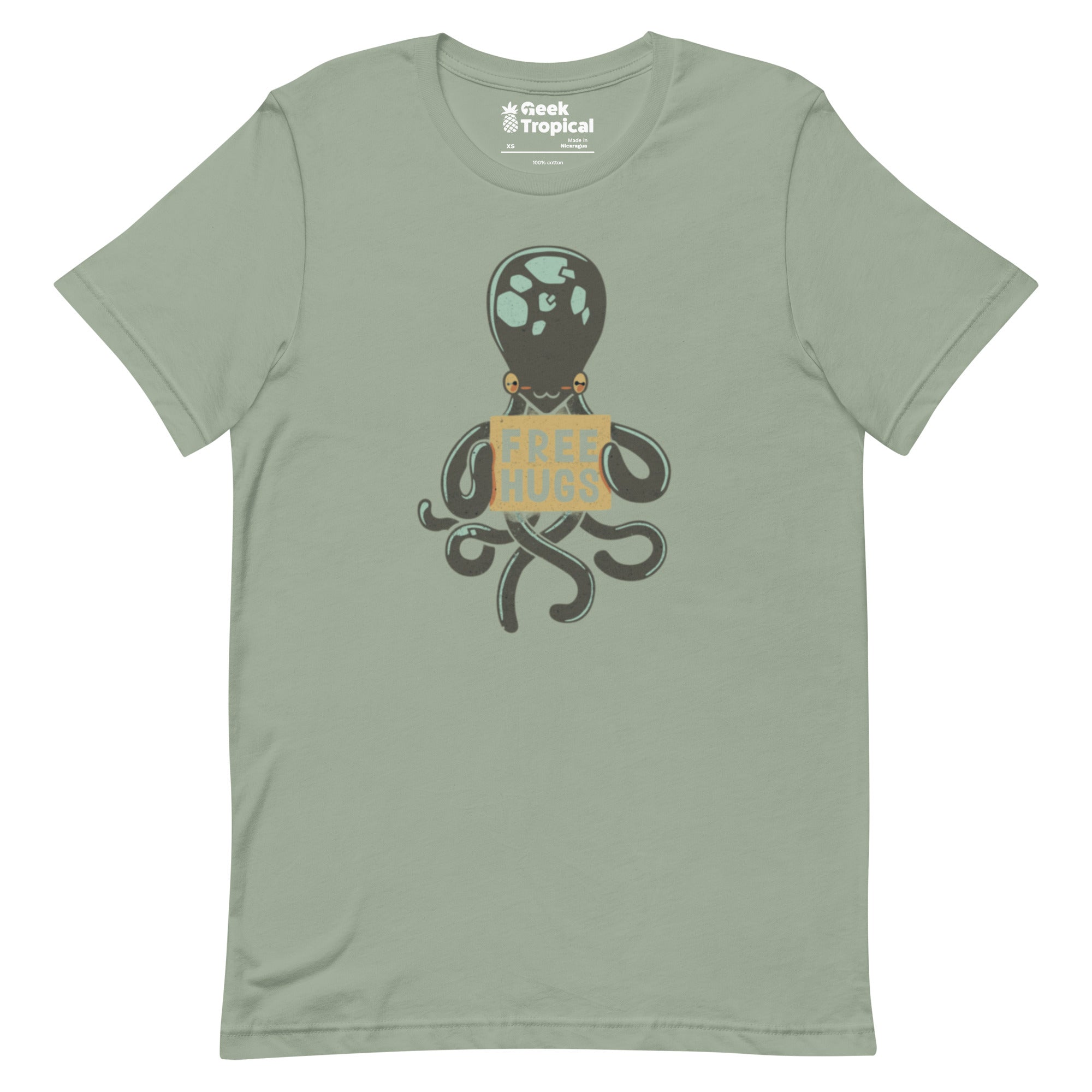 The Free Hugs Octopus T-Shirt serves up eight-armed charm with nerdy confidence. Front and center: a friendly octopus, tentacles wide, offering Free Hugs in playful, curvy type—equal parts punny and marine-bio chic. It’s soft, breathable, and built for everyday quests, from tide pools to tabletop nights. Artist-backed and printed with eco-conscious color, this easy-going staple spreads joy without getting you overly tangled.