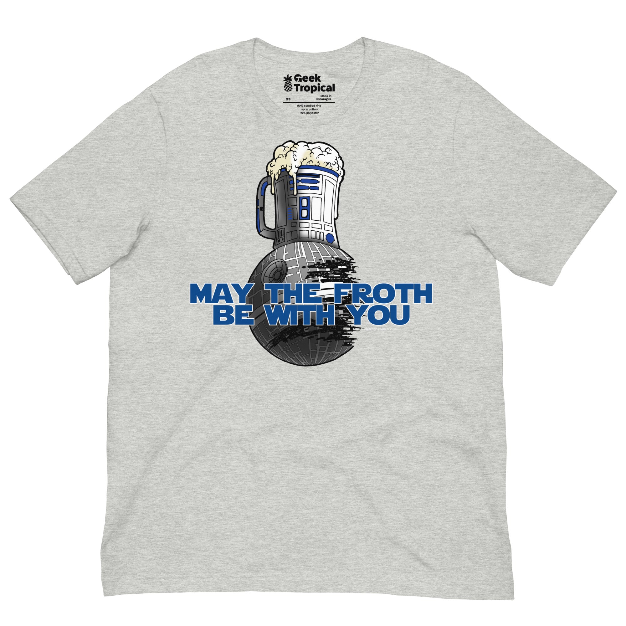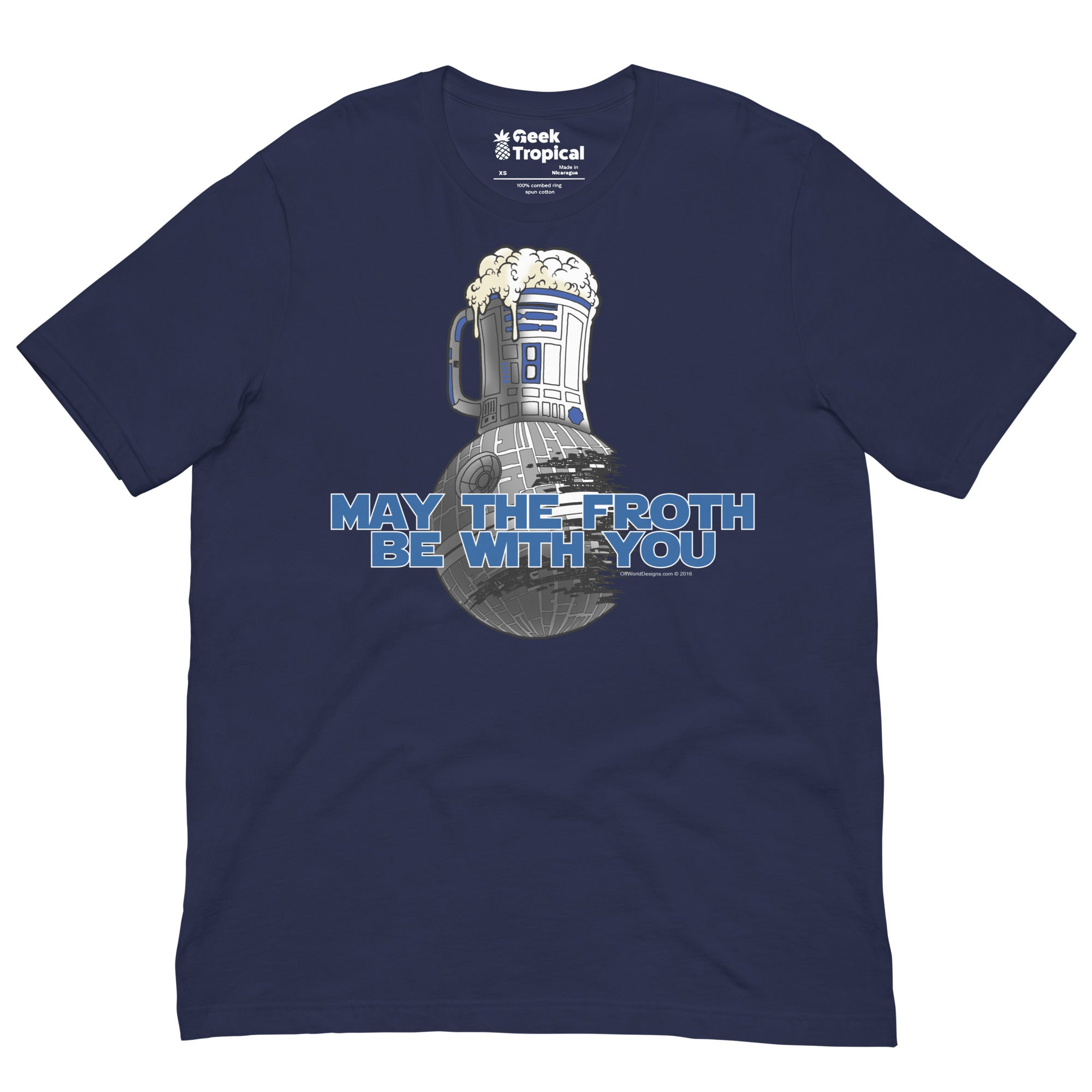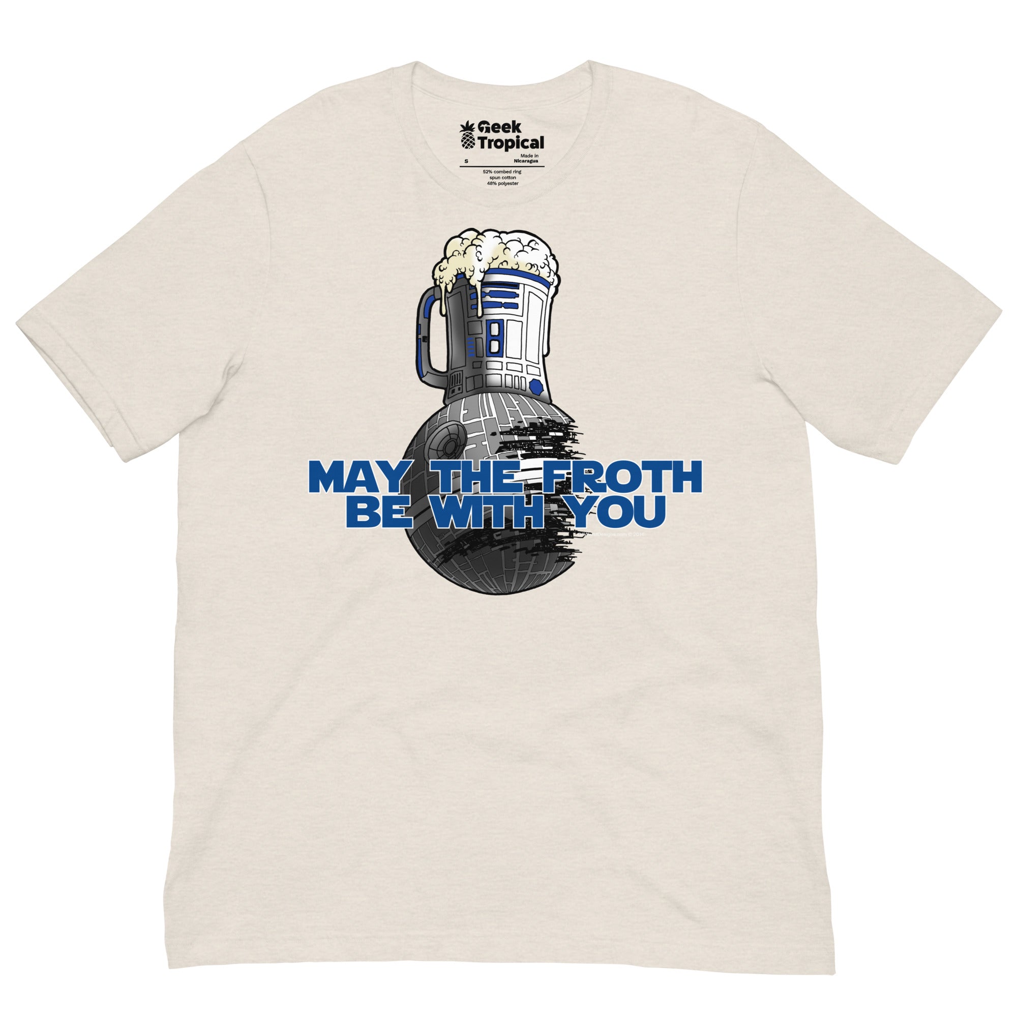 May the Froth Be With You T-Shirt channels your inner bar-side hero with a pun that lands smoother than a perfect pour. The front showcases the phrase in bold, poster-style type, backed by frothy, bubble-kissed artwork that celebrates beer (or your favorite foamy brew). Designed by Off World Designs, this artist-backed tee delivers crisp color, comfy wear, and nerdy charm you can toast to, shift after shift, con after con.