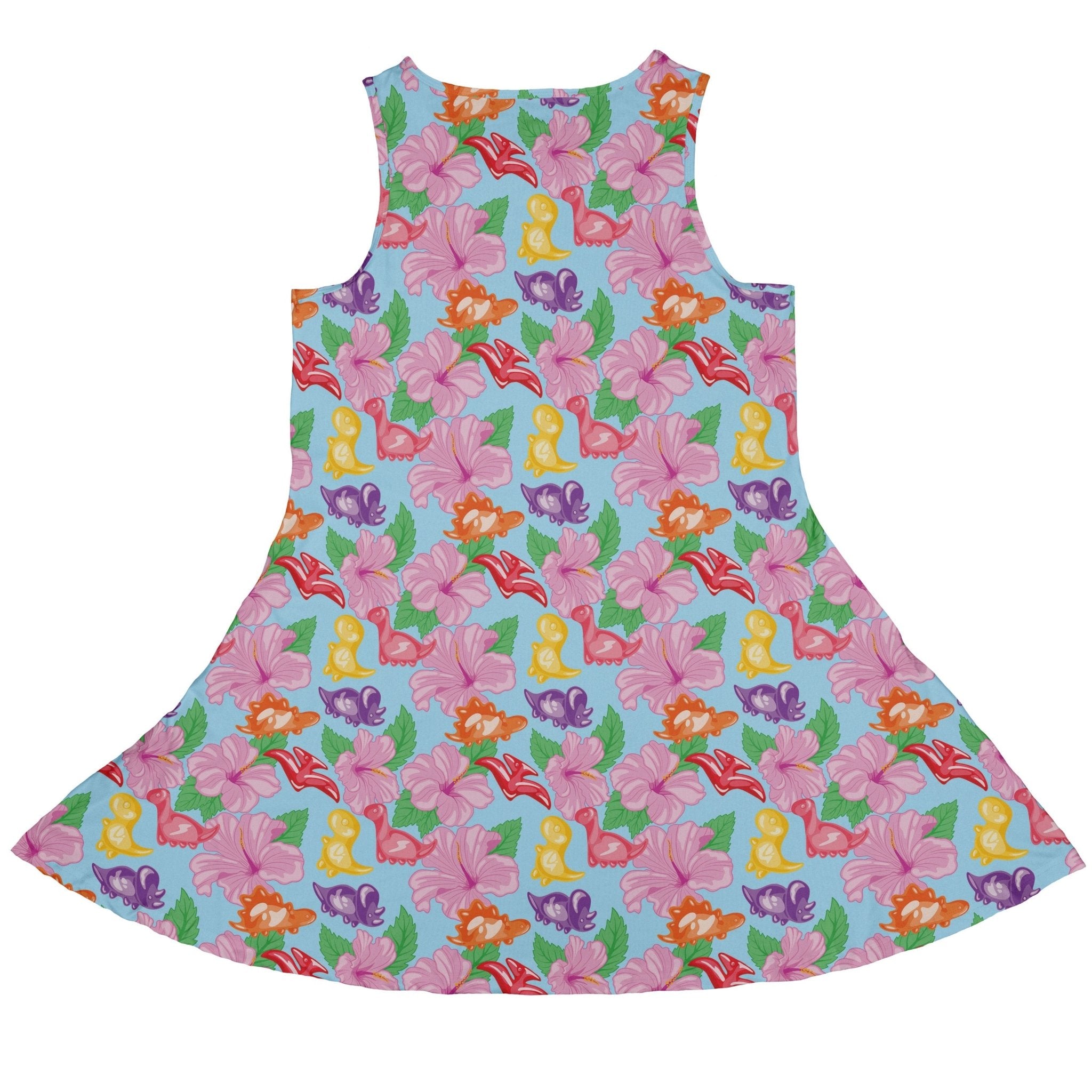 The Fruit Snack Dinos Dress serves up geeky nostalgia with a maximalist swarm of candy-bright dinos, arranged like your favorite fruit snacks in bold, repeating silhouettes. Designed by Julie Kitzes, it balances whimsy and polish, moving easily from con floor to coffee run. Soft, confident, and yes—there are pockets for your quest loot. Style it with sneakers or boots and let the pattern do the roaring.