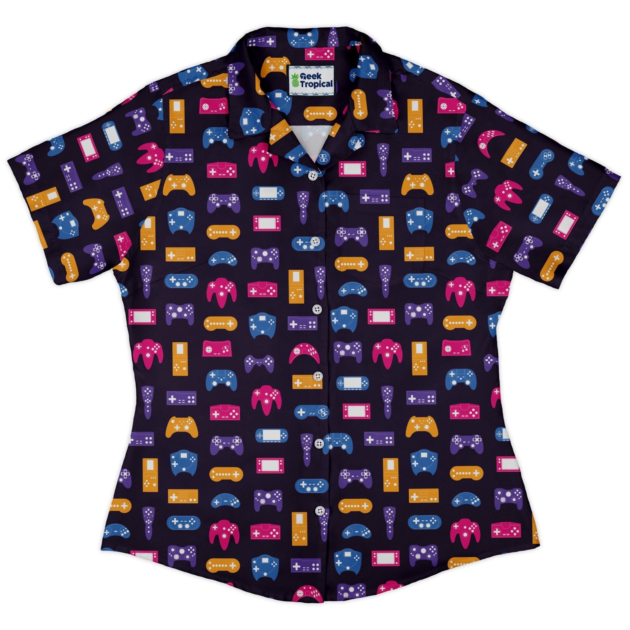 Game Controllers Purple Video Game Curvy Button Up Shirt