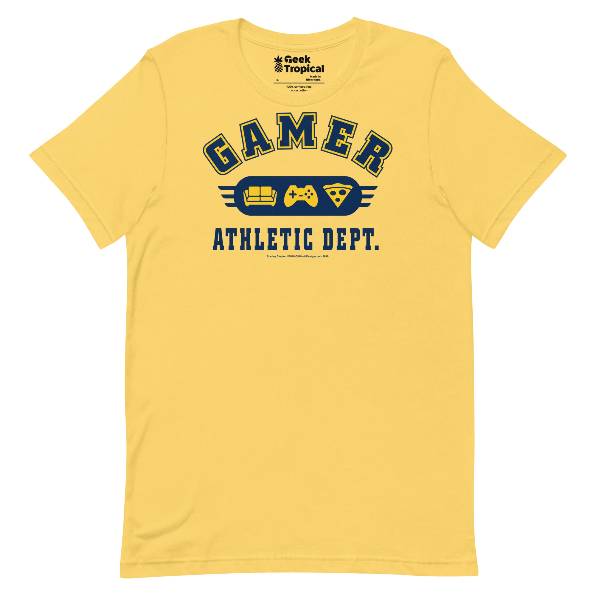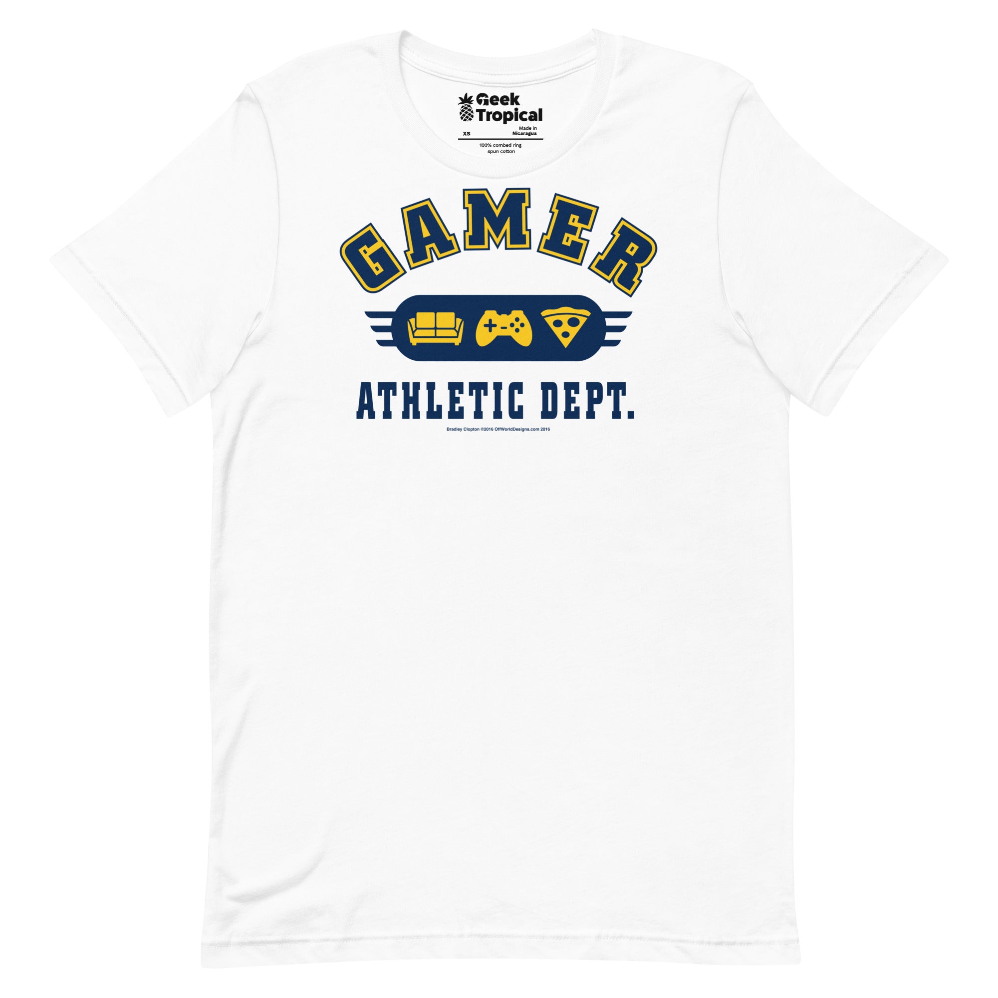 Put your grind on the scoreboard with the Gamer Athletic Dept T-Shirt. The front graphic flexes bold varsity lettering and a clean crest built around a retro arcade cabinet, blending campus-athlete swagger with joystick nostalgia. Designed by Off World Designs, it’s artist-backed and printed with vivid, eco inks so the colors stay sharp. Ready for raids, speedruns, and IRL XP gains.