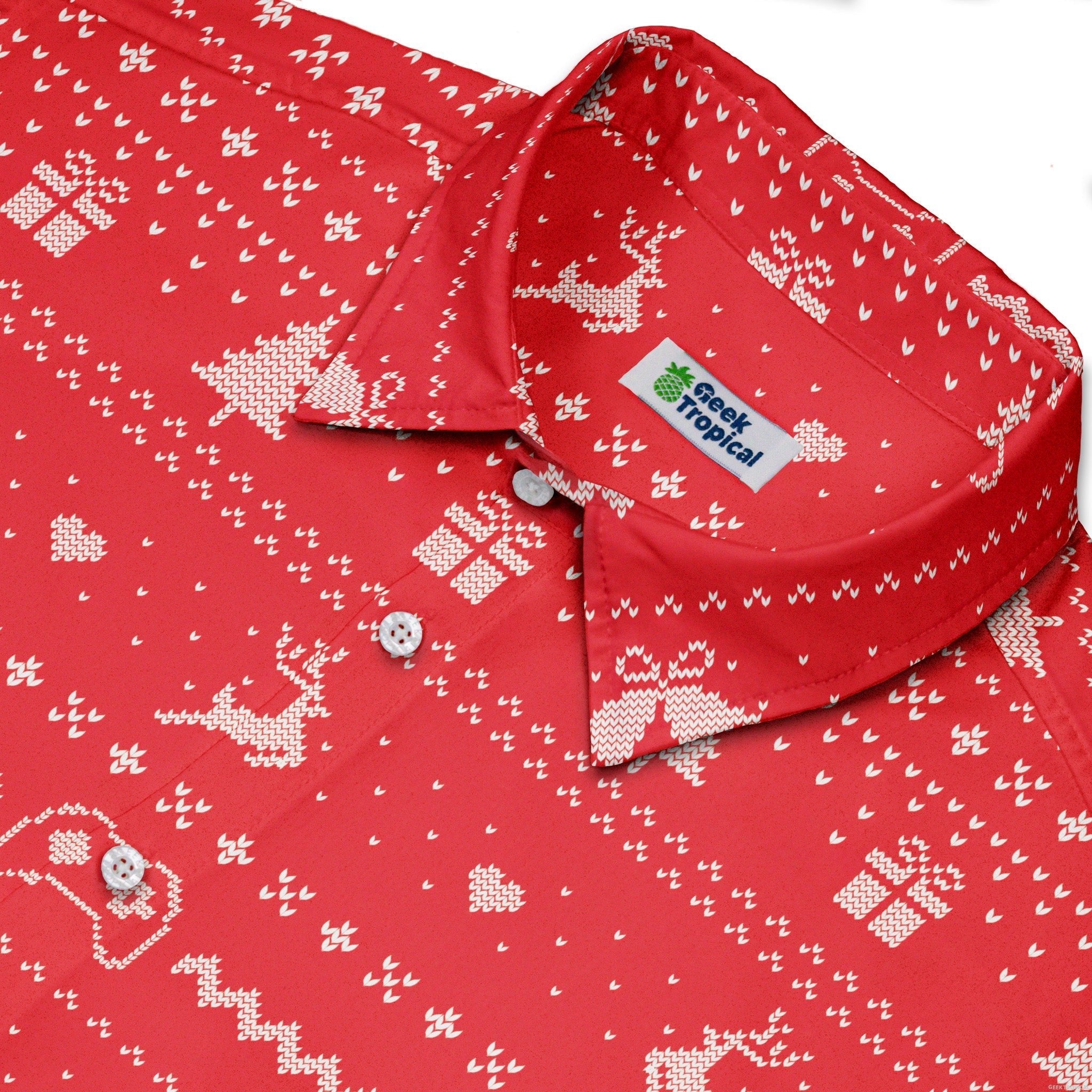 Level up your holiday fit with the Gamer Christmas Sweater Button Up Shirt. Designed by Tobe Fonseca, this print riffs on the cozy sweater vibe with rows of pixel-art arcade motifs and wintery borders, arranged like a high-score screen gone festive. The pattern flows cleanly across the front for a polished look, while the soft hand-feel keeps it couch-to-party ready. Geeky, playful, and artist-backed, it’s your seasonal co-op between nostalgia and style.