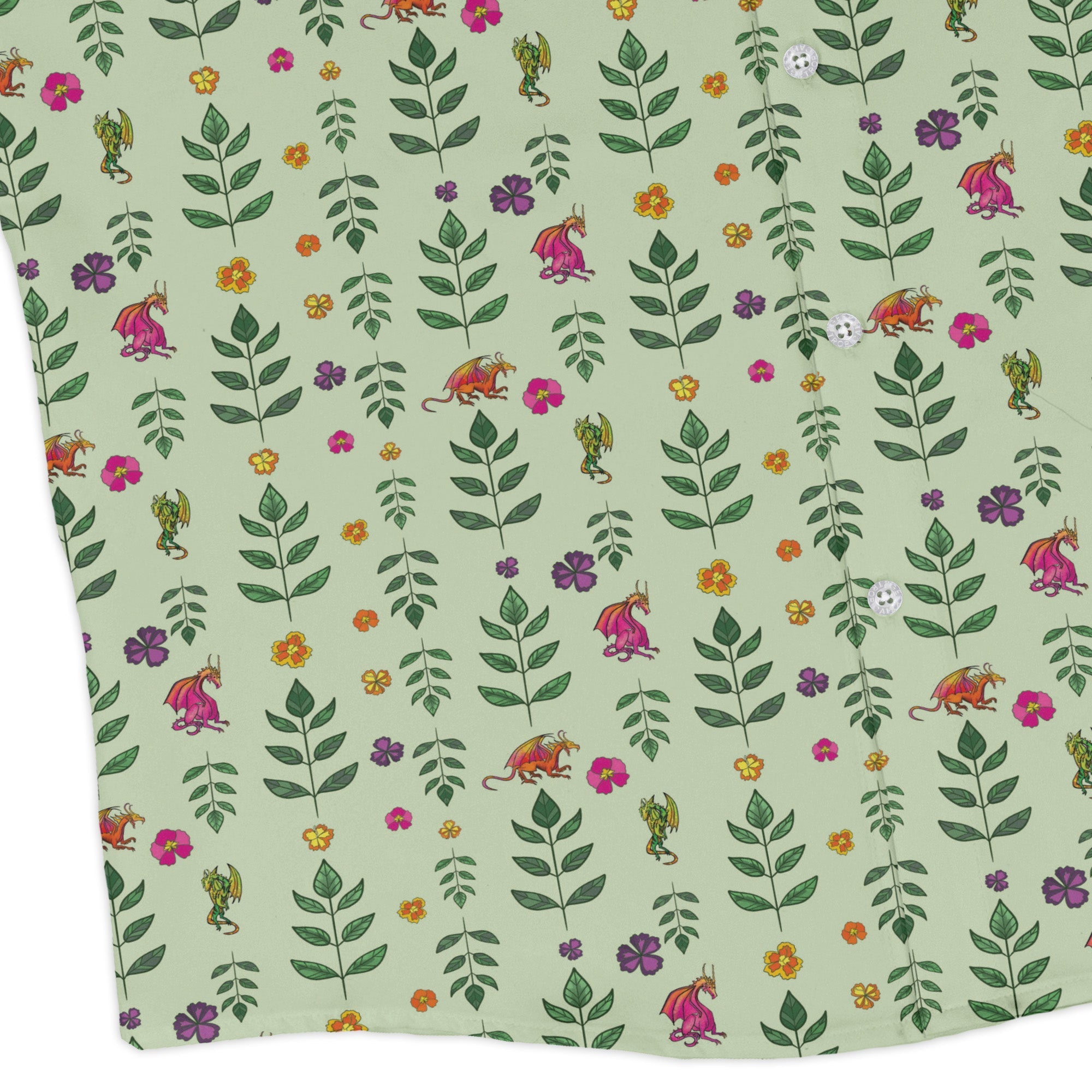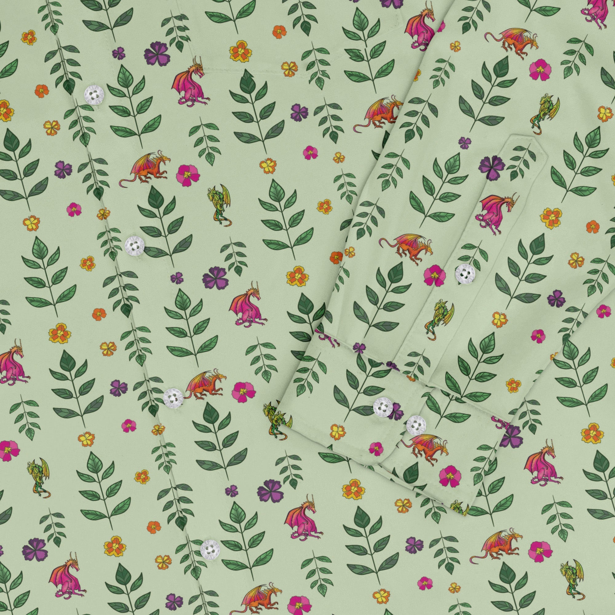 Garden Dragons Fantasy Long Sleeve Button Up Shirt