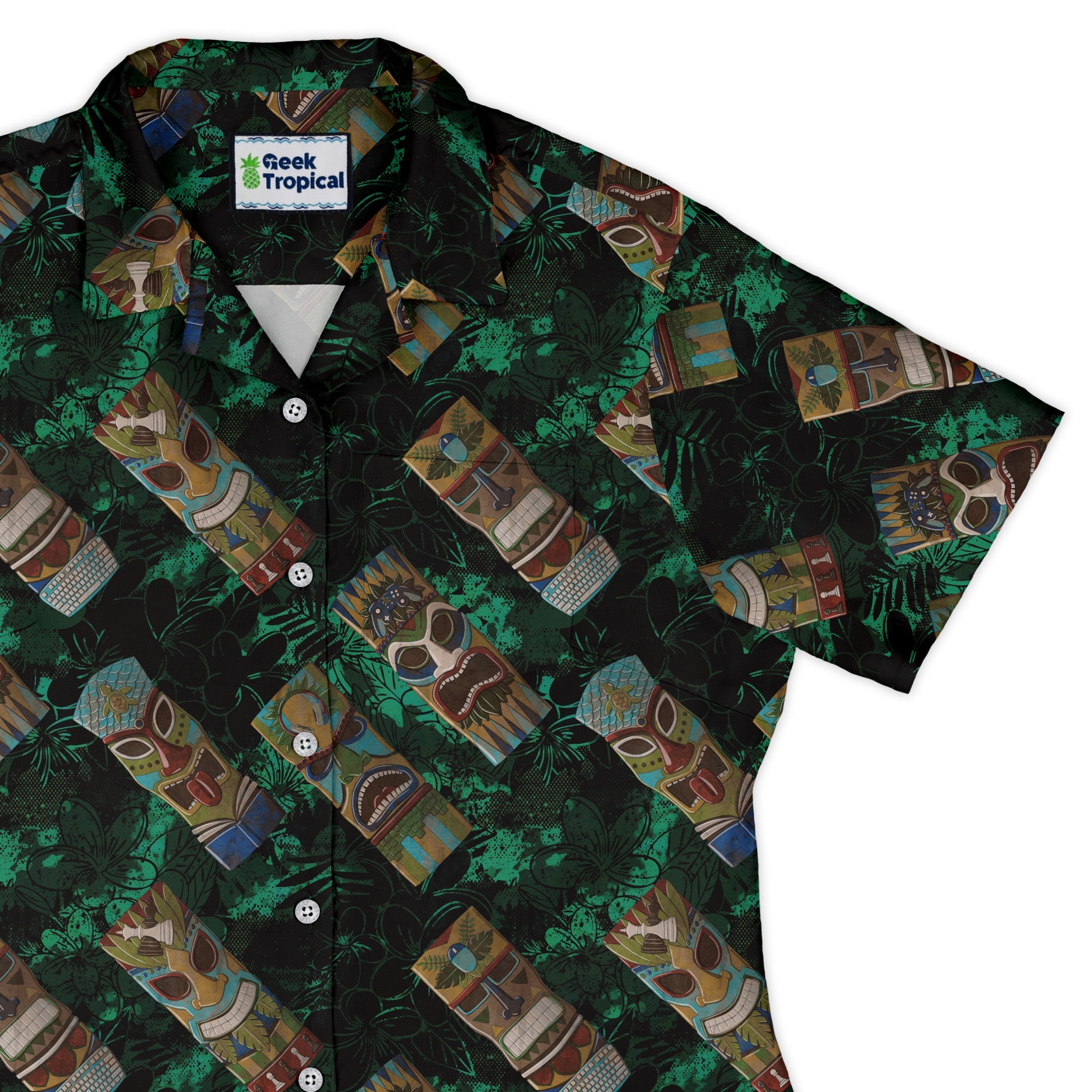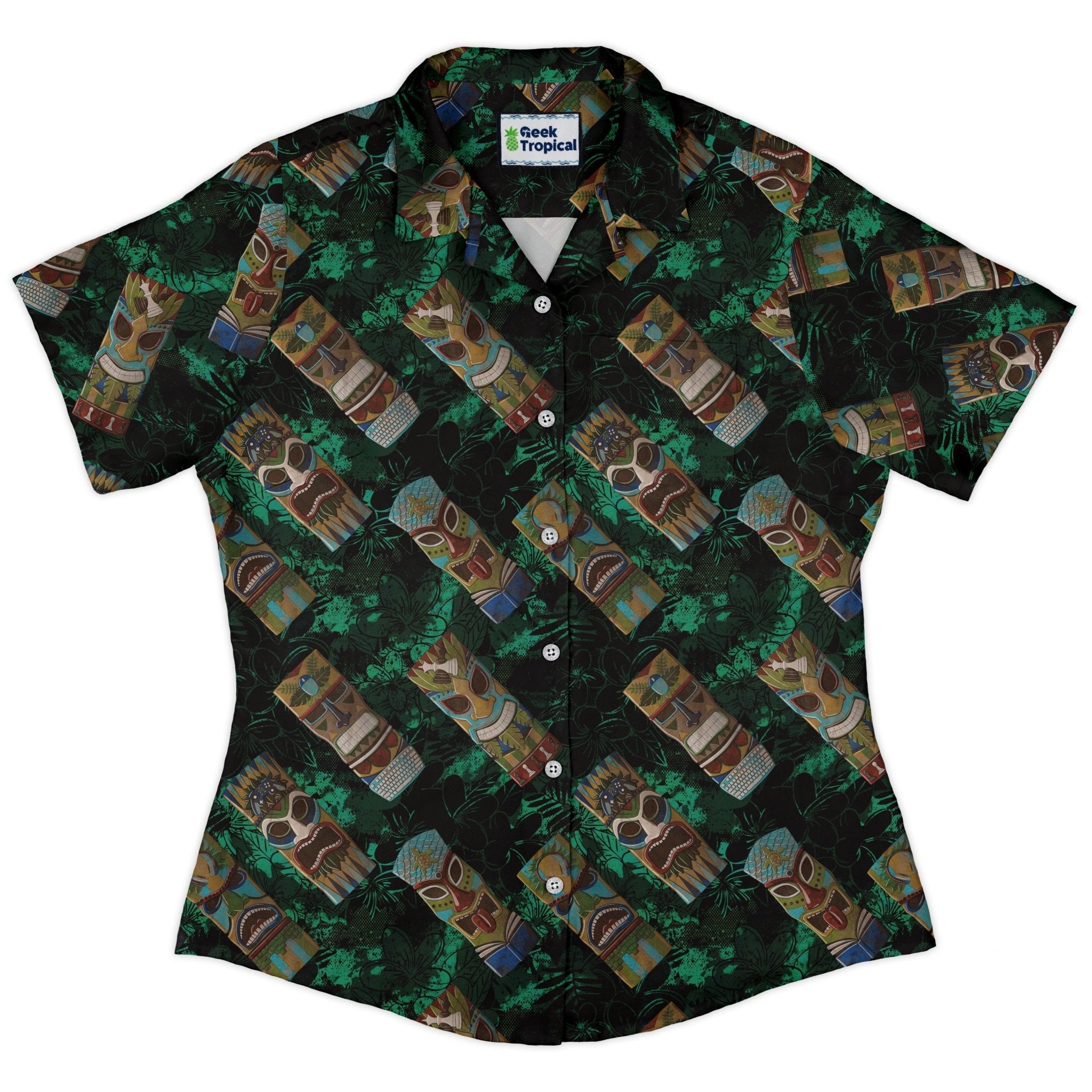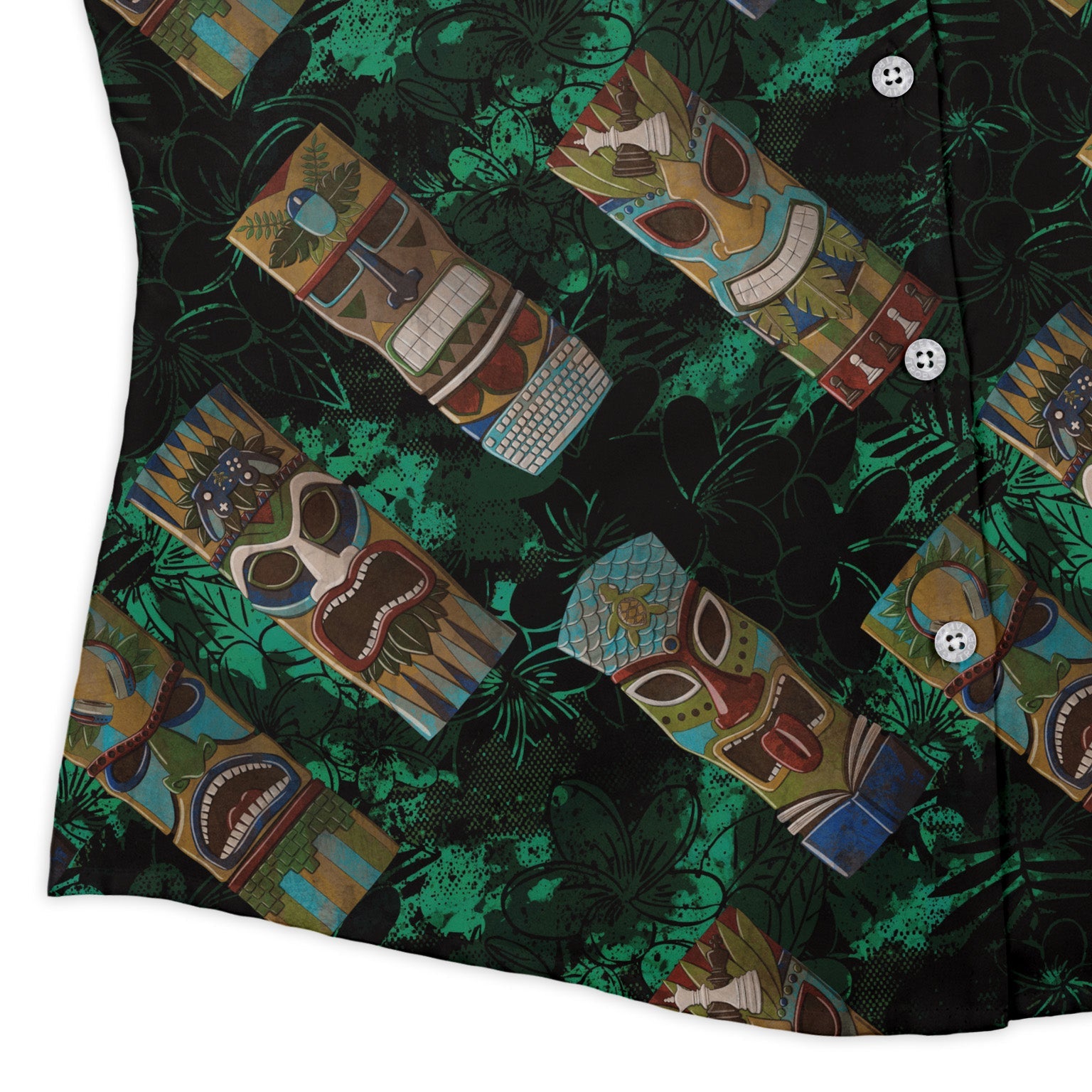 Geek Tiki Masks Dark Green Curvy Button Up Shirt