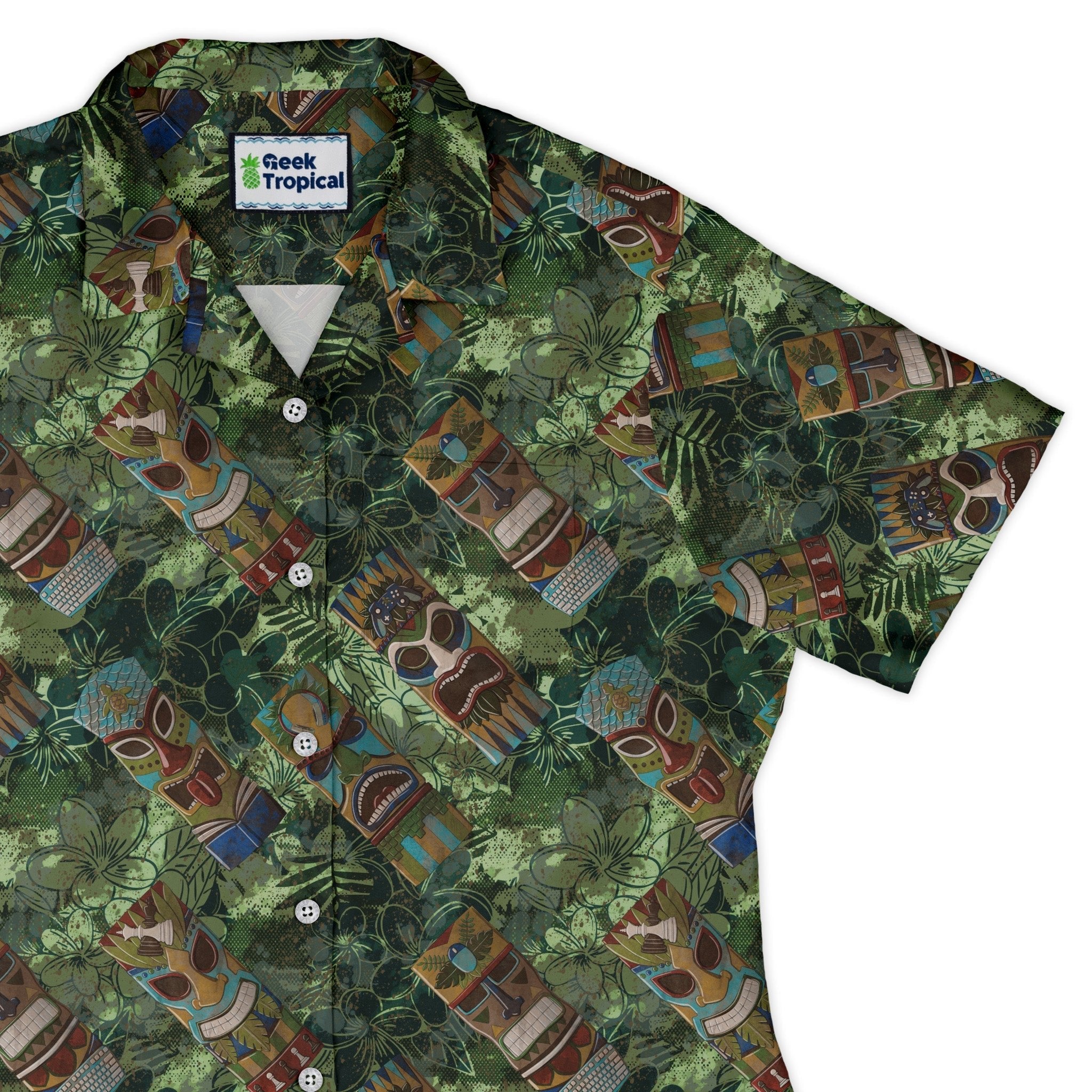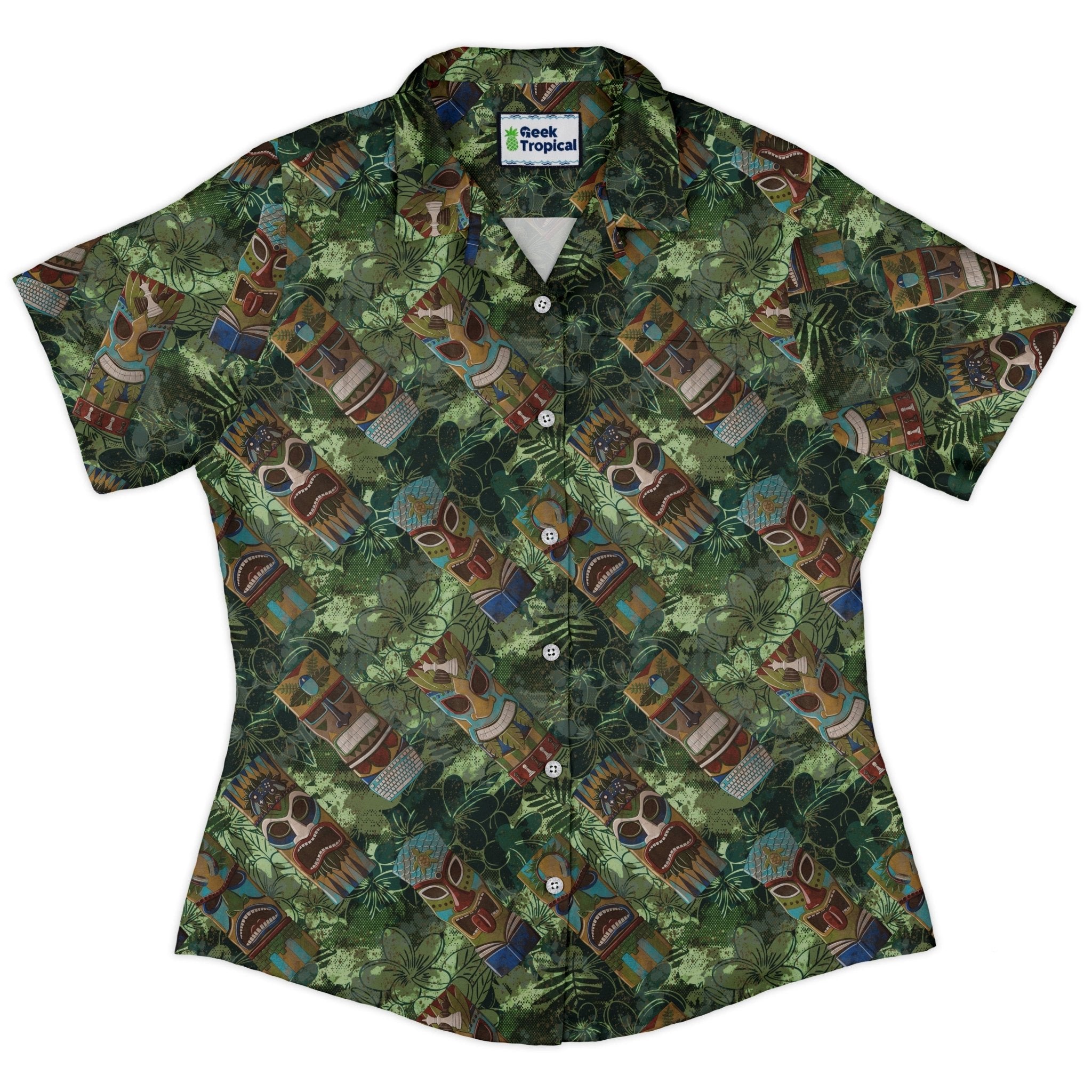 Geek Tiki Masks Light Green Curvy Button Up Shirt