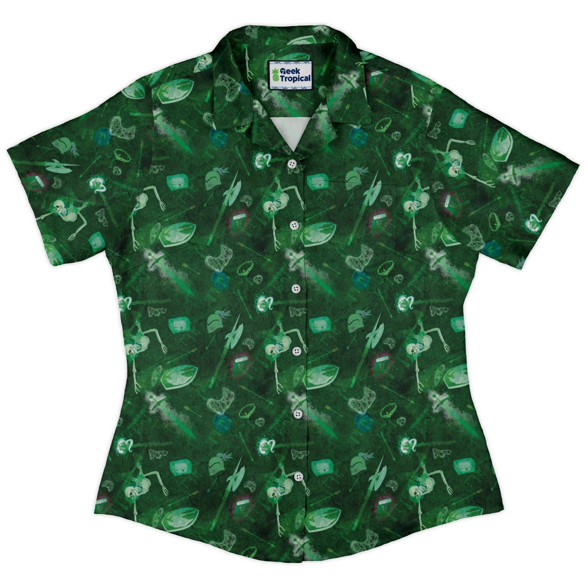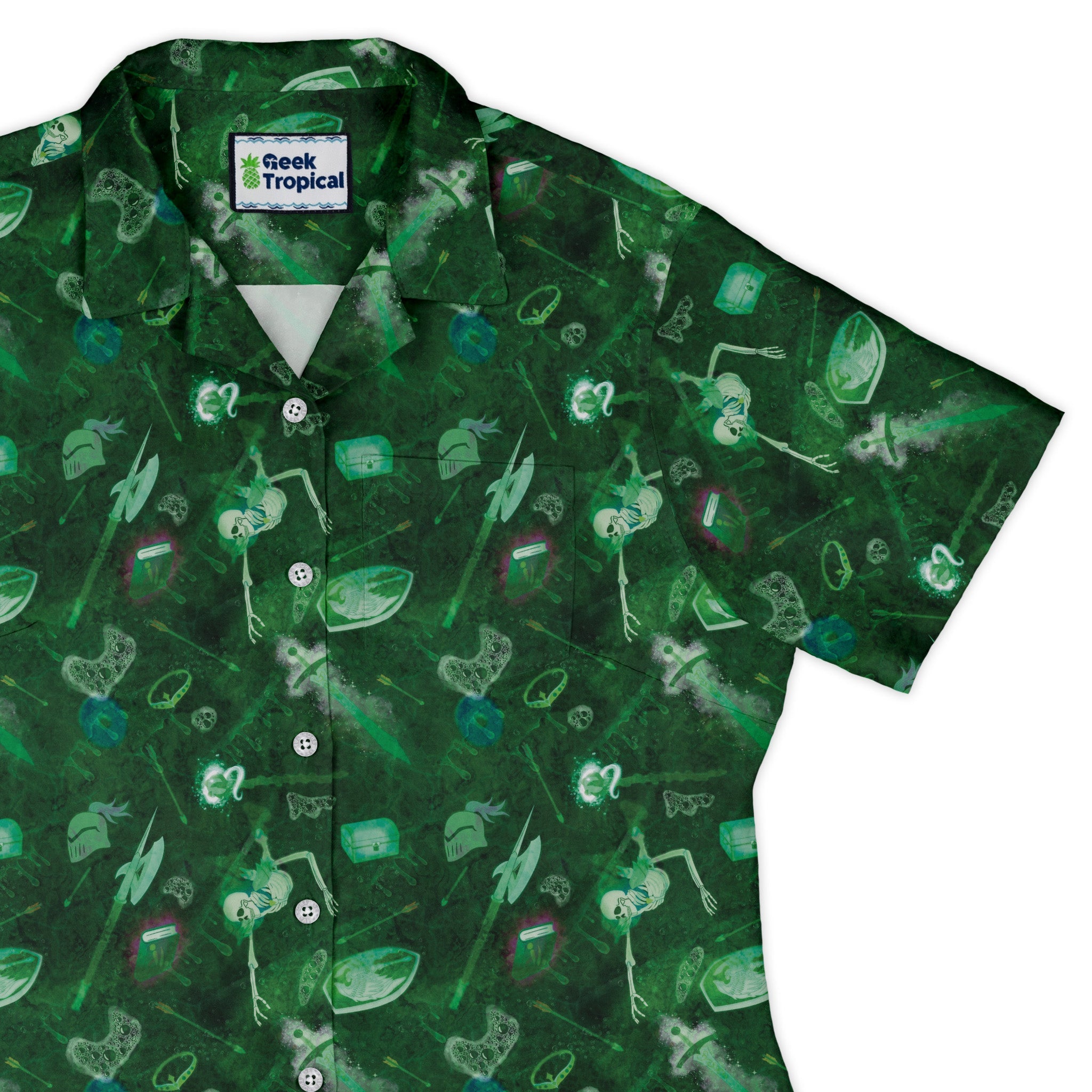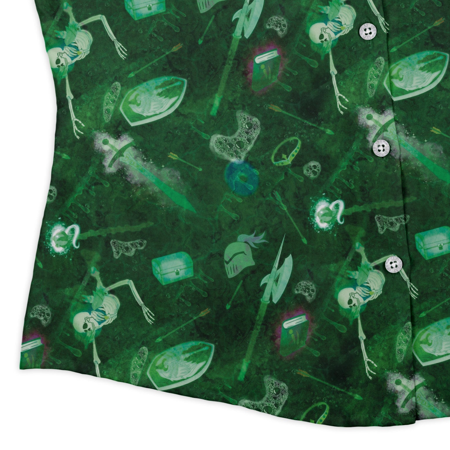 The Gelatinous Cube Dnd Monster Curvy Button Up Shirt turns your favorite dungeon hazard into wearable art, designed by Nathan. An all-over field of translucent, jelly-like cubes—complete with glossy highlights and drippy edges—slides over a deep, moody ground for a bold Dnd vibe. The curvy cut flatters without fuss, keeping things geeky yet polished for game night, date night, or daily quests. Level up office fits or con-day outfits.