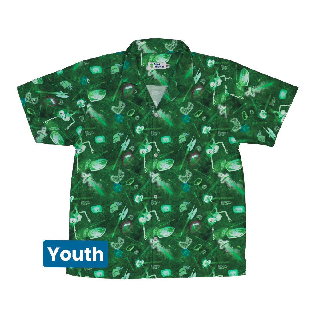 - The Youth Hawaiian Shirt features a flat, open notch neckline, also known as a camp or Cuban collar, offering a classic and relaxed style.