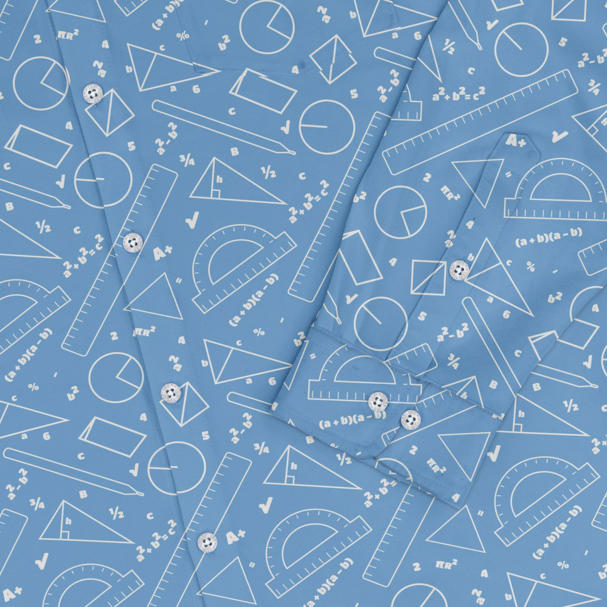 Geometry Blue Math Long Sleeve Button Up Shirt
