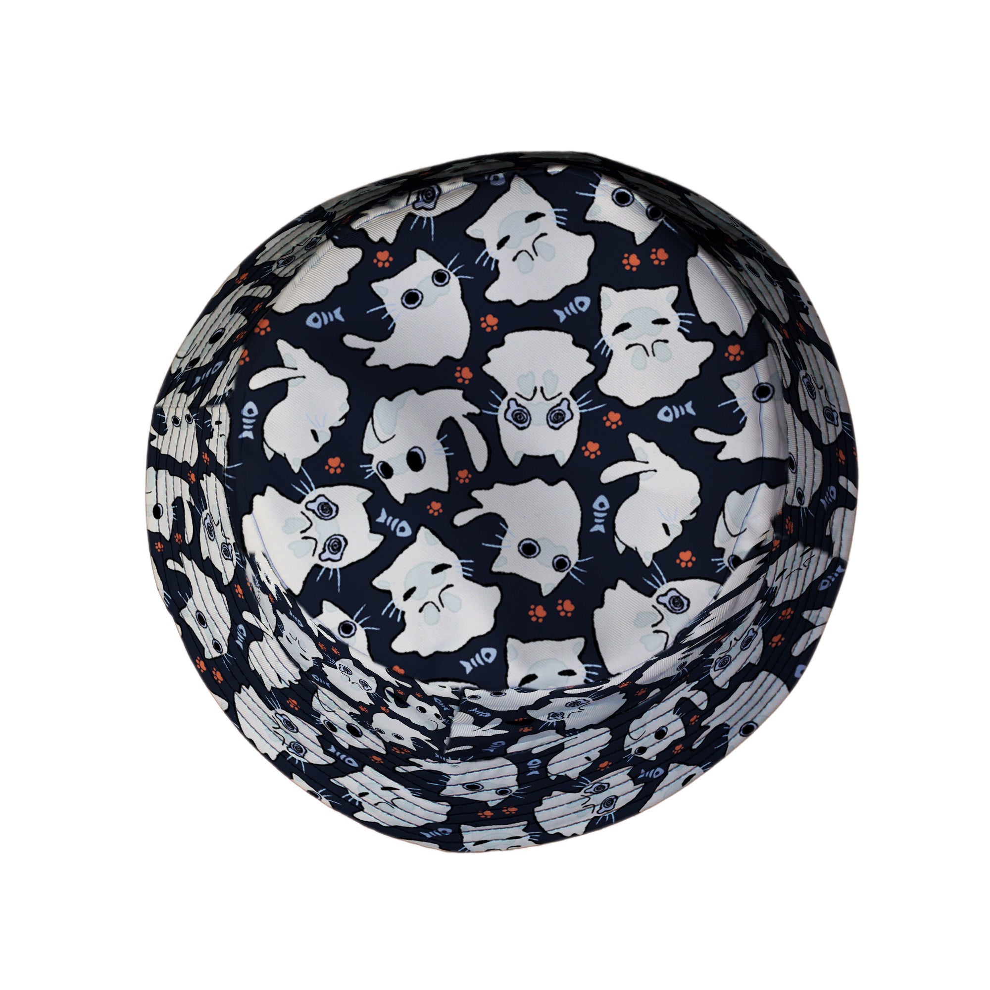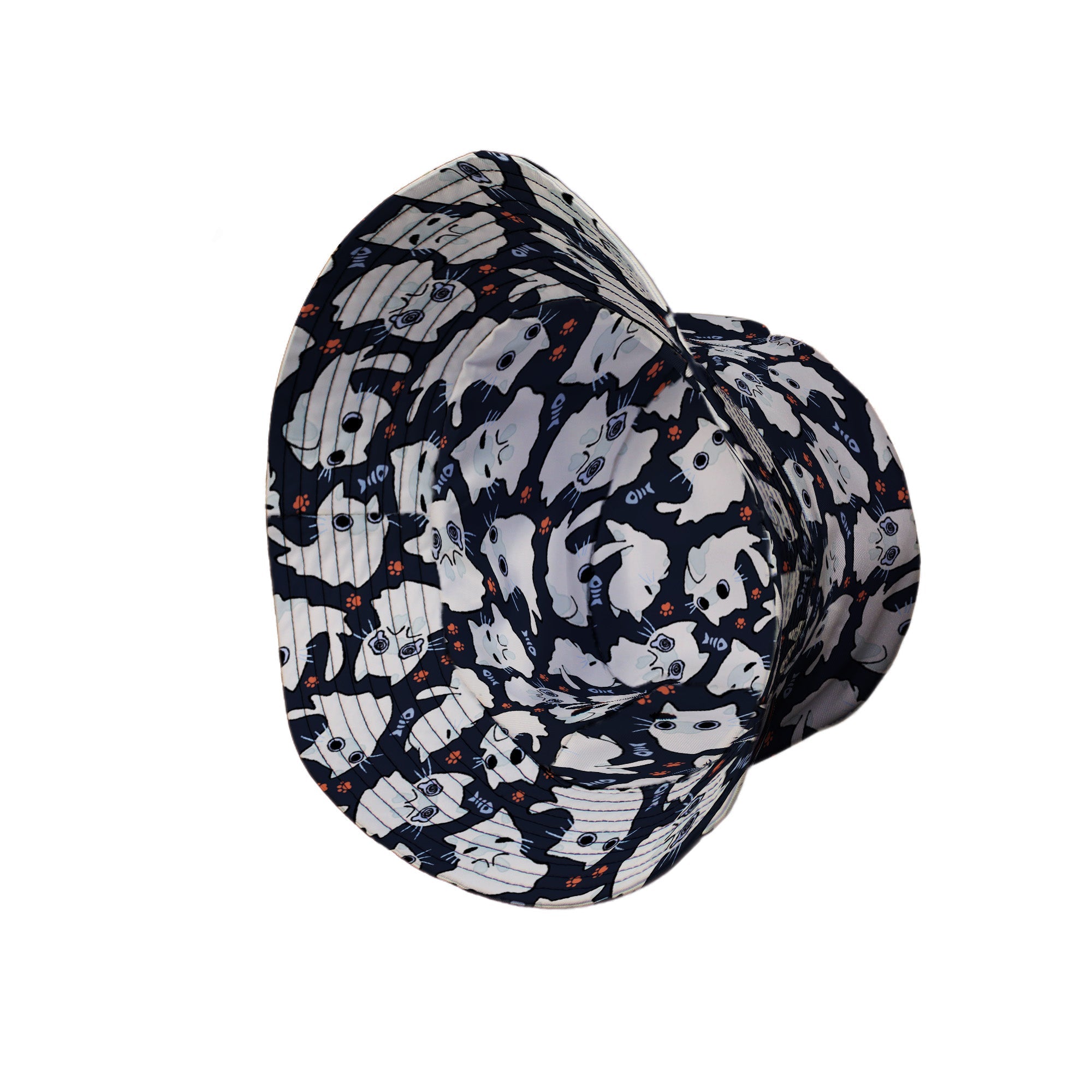 Ghost Cats Bucket Hat brings playful paranormal energy to your fit, with an all-over parade of floaty feline spirits wrapping the crown and brim. Minimal, sheet-like cat silhouettes with rounded ears and mischievous expressions blend spooky and silly. Flip it and the print continues on both sides, keeping your look seamless. Lightweight, roll-up ready, and designed by Ardi Tong for Geek Tropical’s artist-backed style.