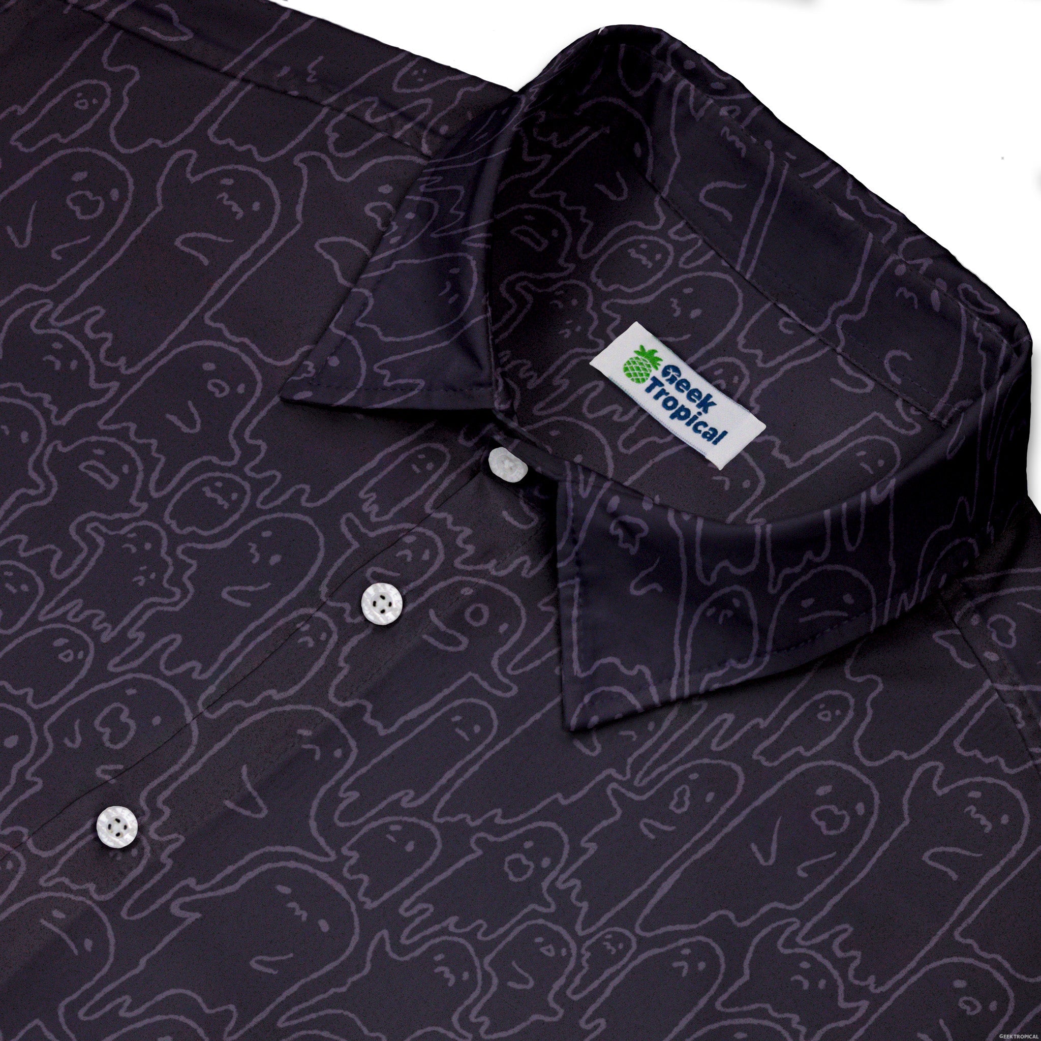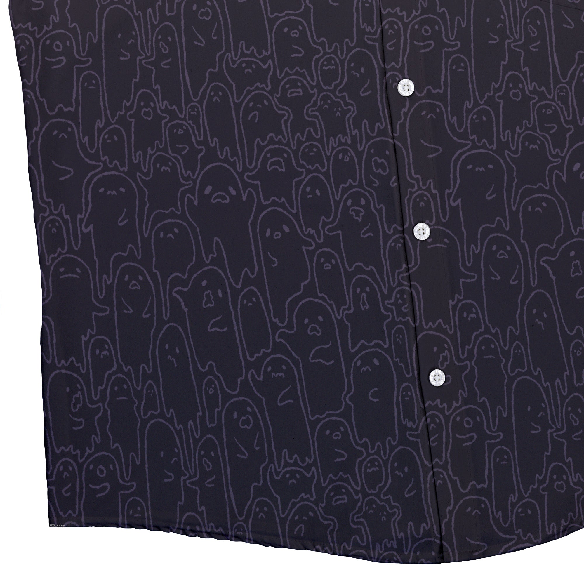 Meet the Ghost Wall Purple Button Up Shirt, a spectral flex for everyday mischief. A lush violet canvas hosts a repeating chorus of cute, minimal ghost glyphs, stacked like a cheeky wall, with soft lavender accents that glow against the dark base. Crisp collar, clean lines, and a relaxed drape keep it sharp yet easygoing. Designed by Ardi Tong, it brings playful fantasy energy to office hours, con night, or last-train hauntings.