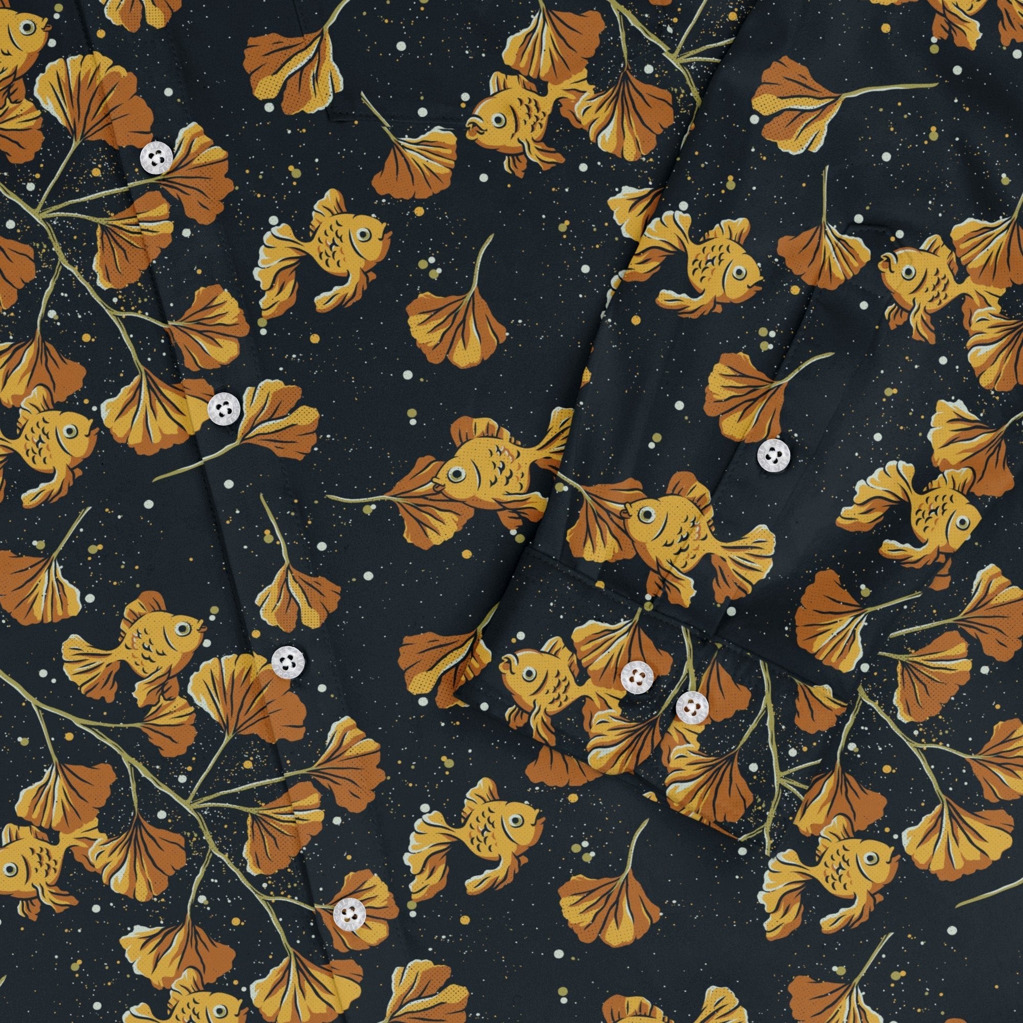 Ginkgo Golden Fish Long Sleeve Button Up Shirt