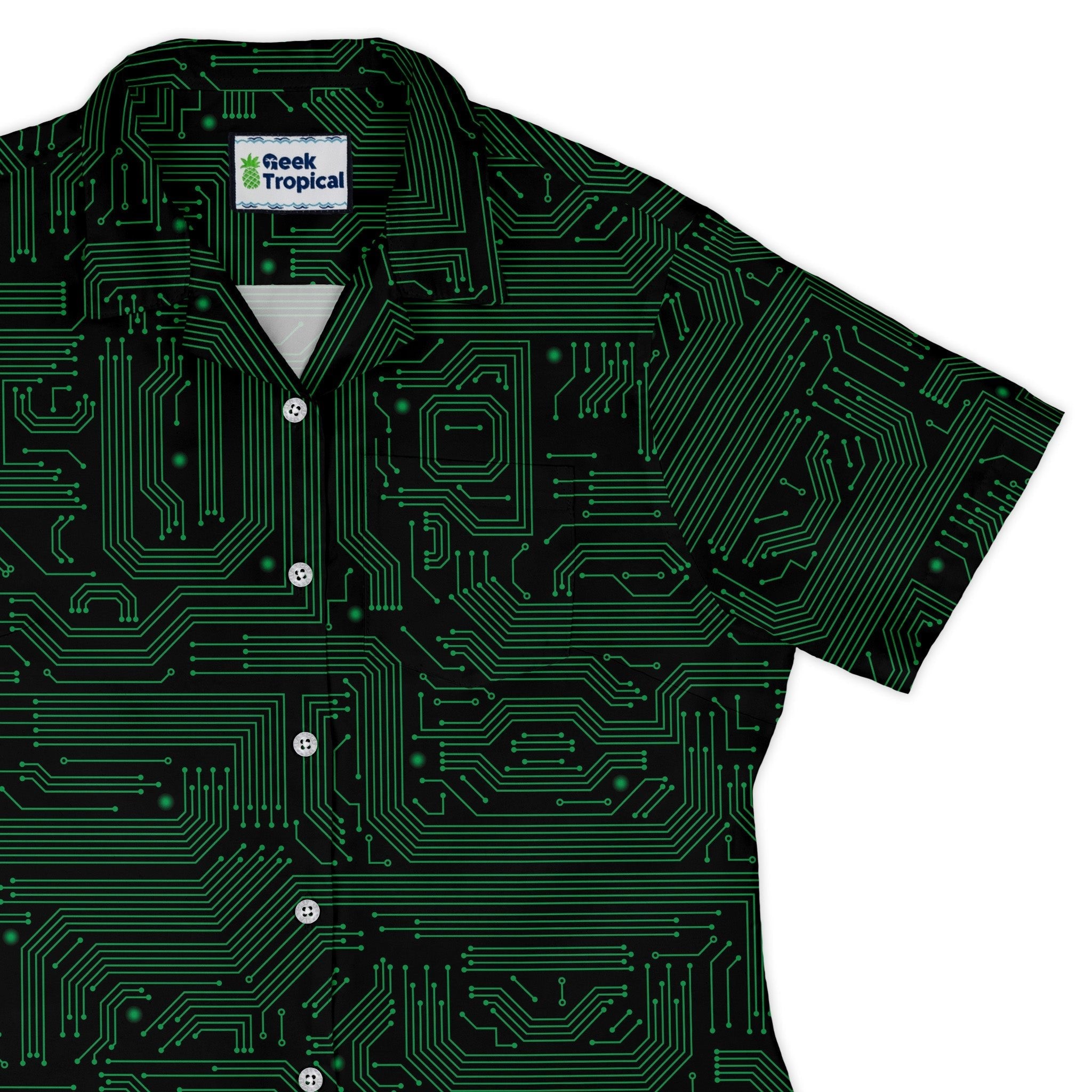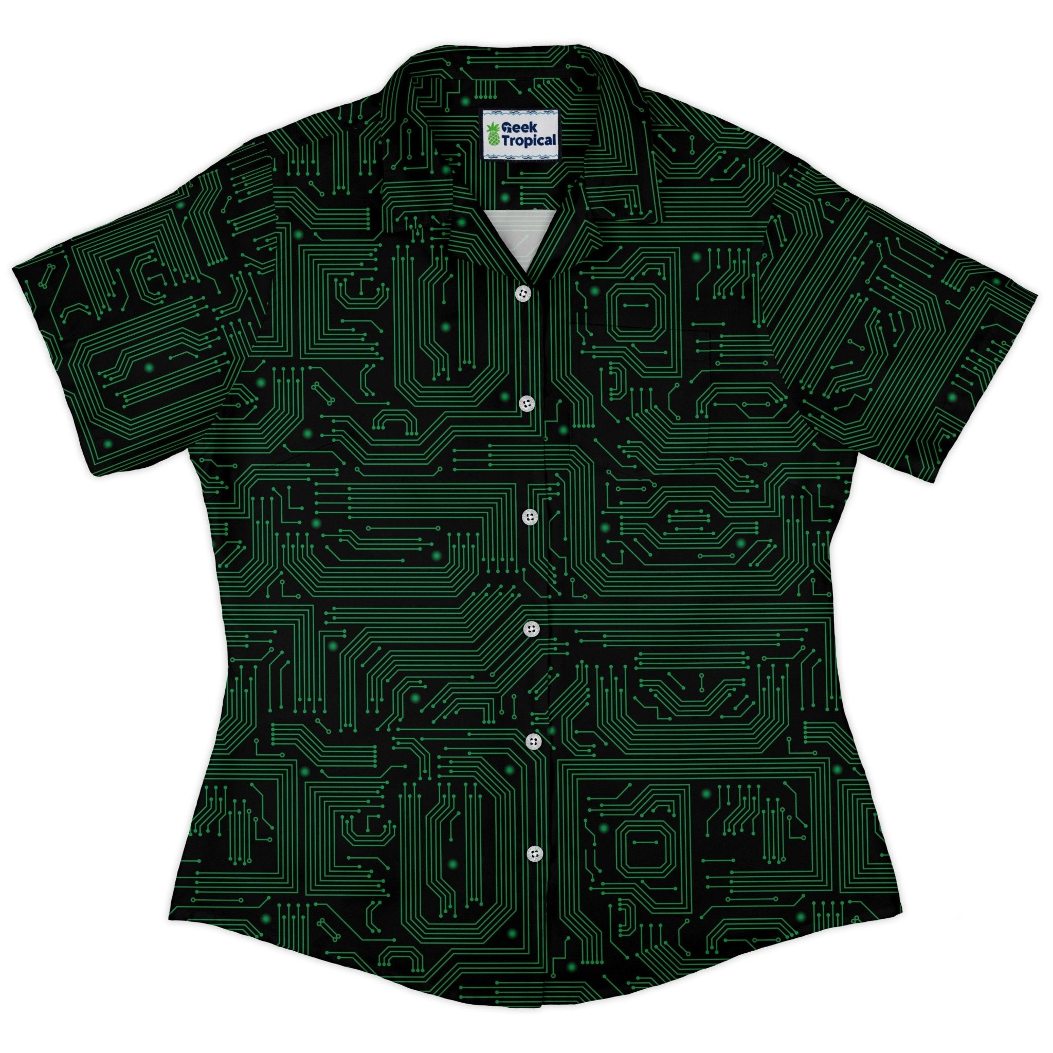 Green Computer Circuits Curvy Button Up Shirt