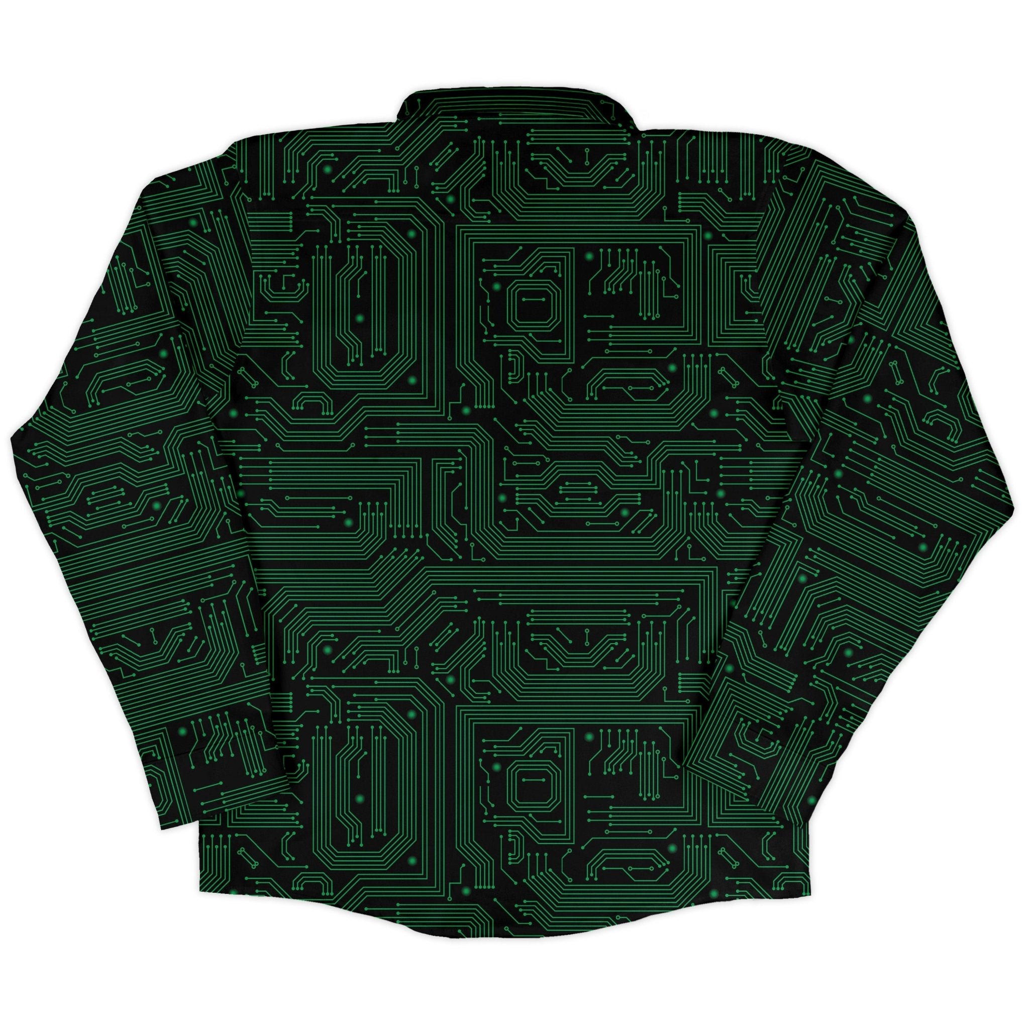 Green Computer Circuits Long Sleeve Button Up Shirt