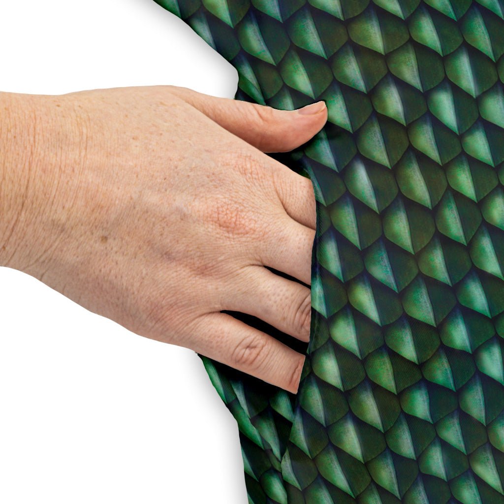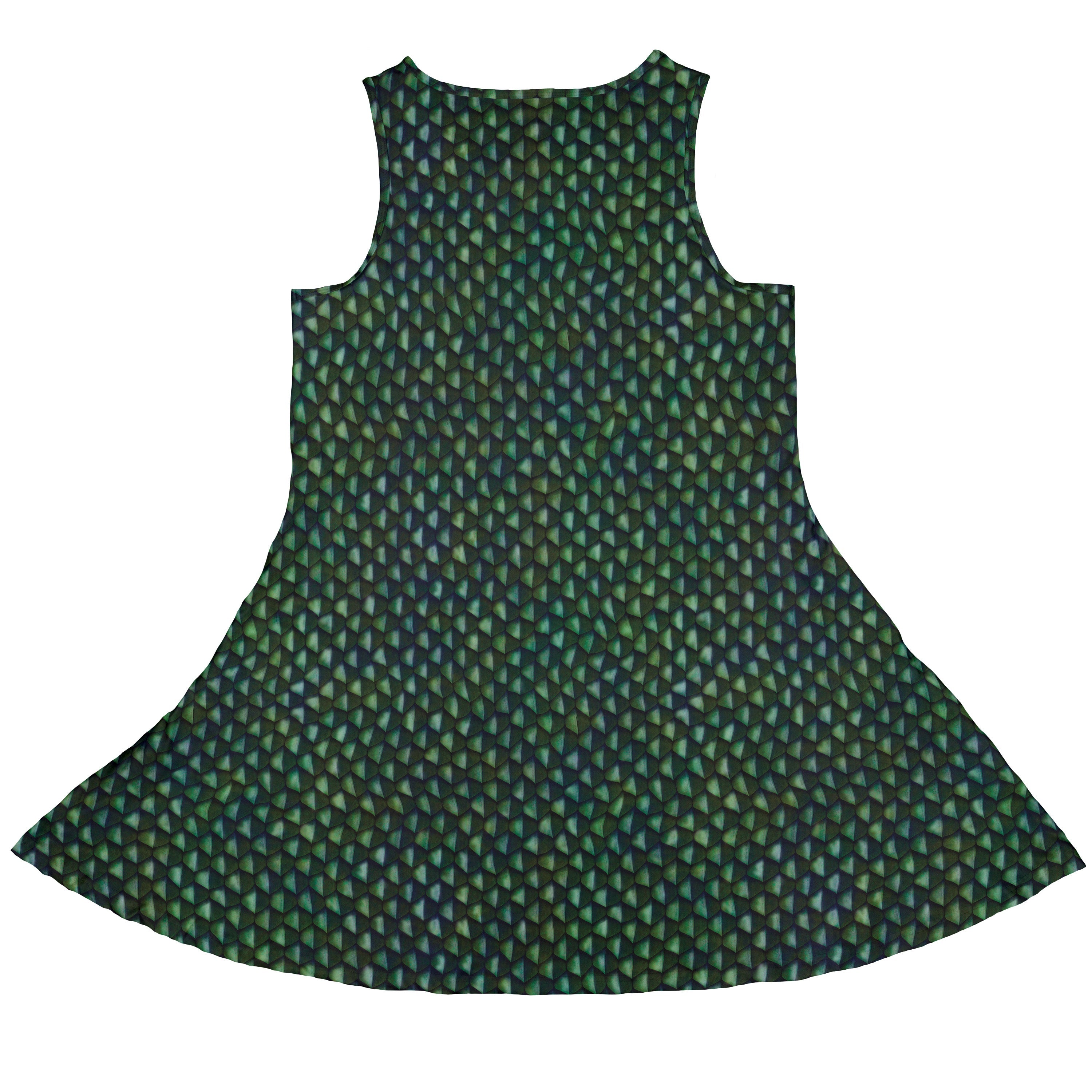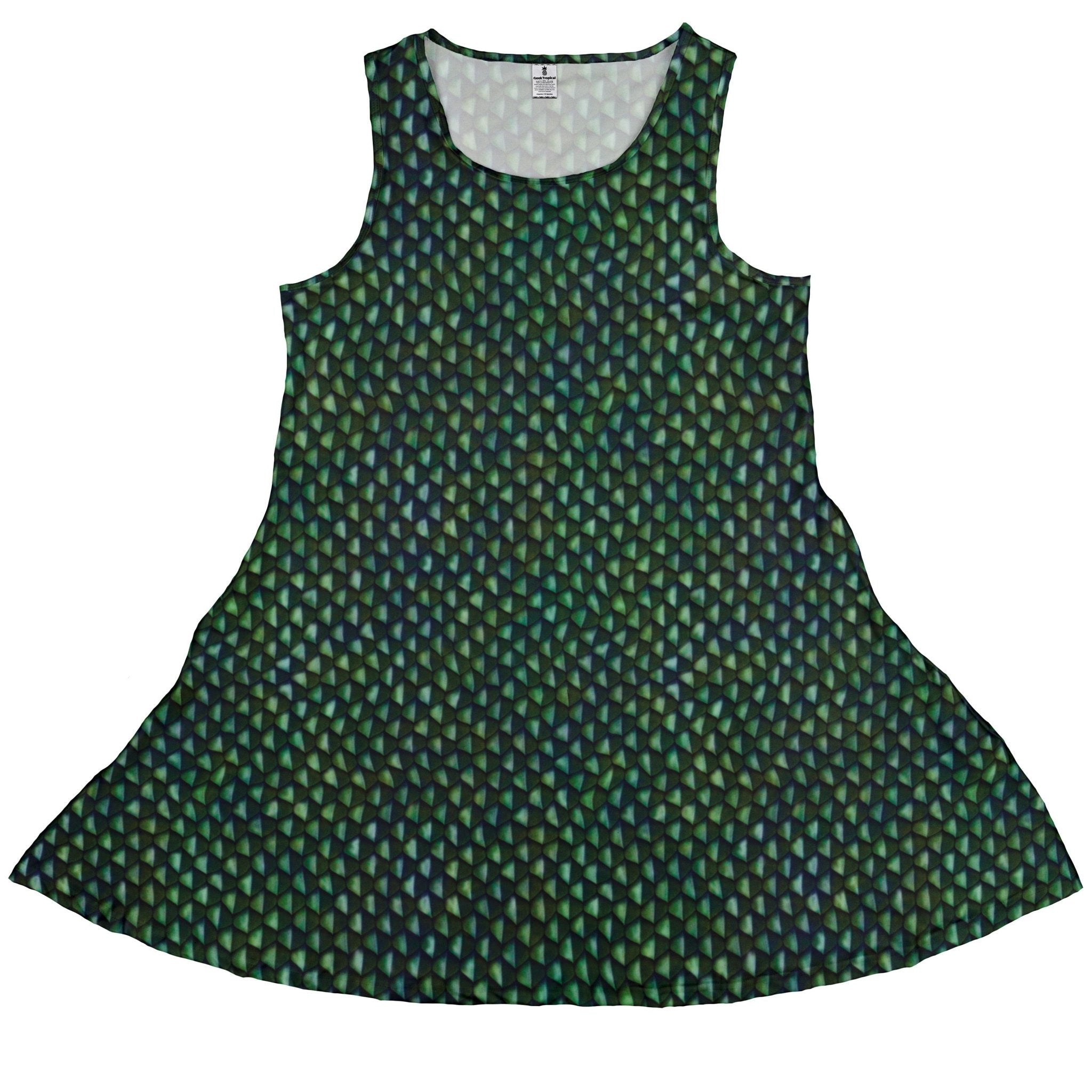 Turn every quest into a style check with the Green Dragon Scales Dress, a playful nod to Dnd glory designed by Nathan. An all-over field of emerald scales shifts from light to deep green, adding dimensional, armor-like texture while staying sleek and swishy. The easy silhouette moves with you, with discreet pockets for essentials. Artist-backed and unapologetically geeky, it levels up everyday outfits, con strolls, and game nights.