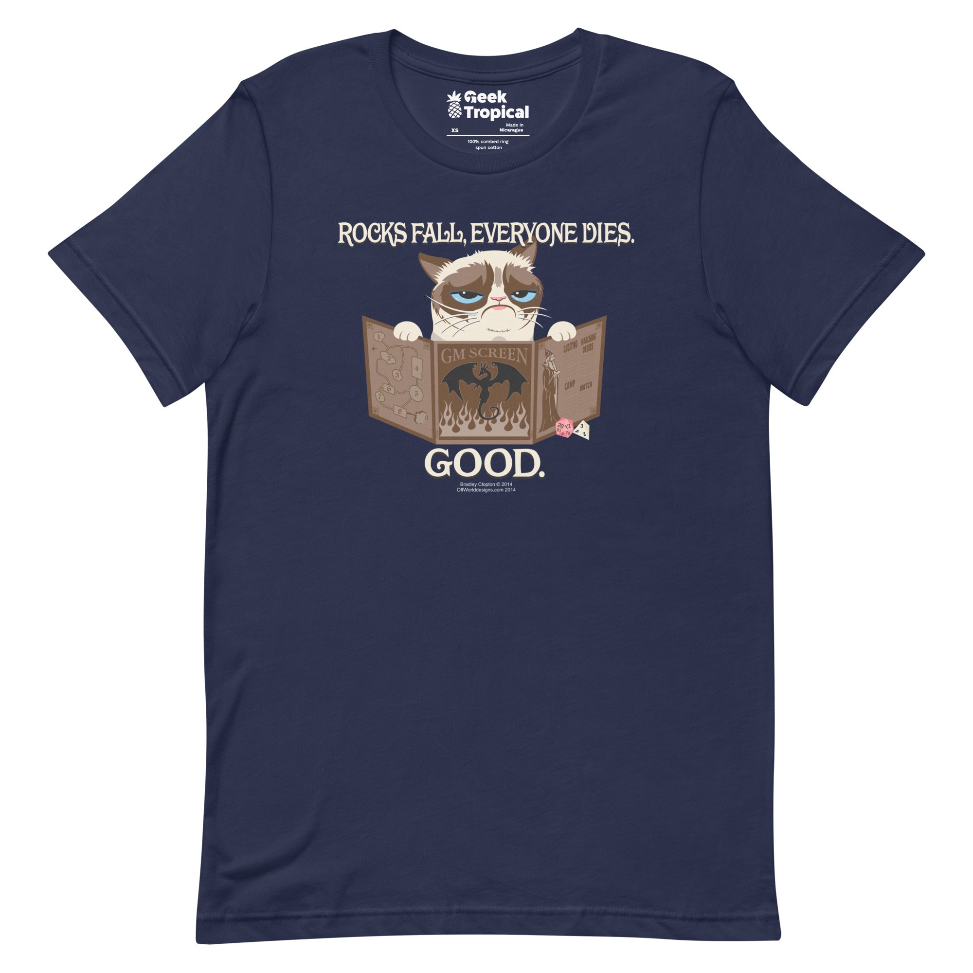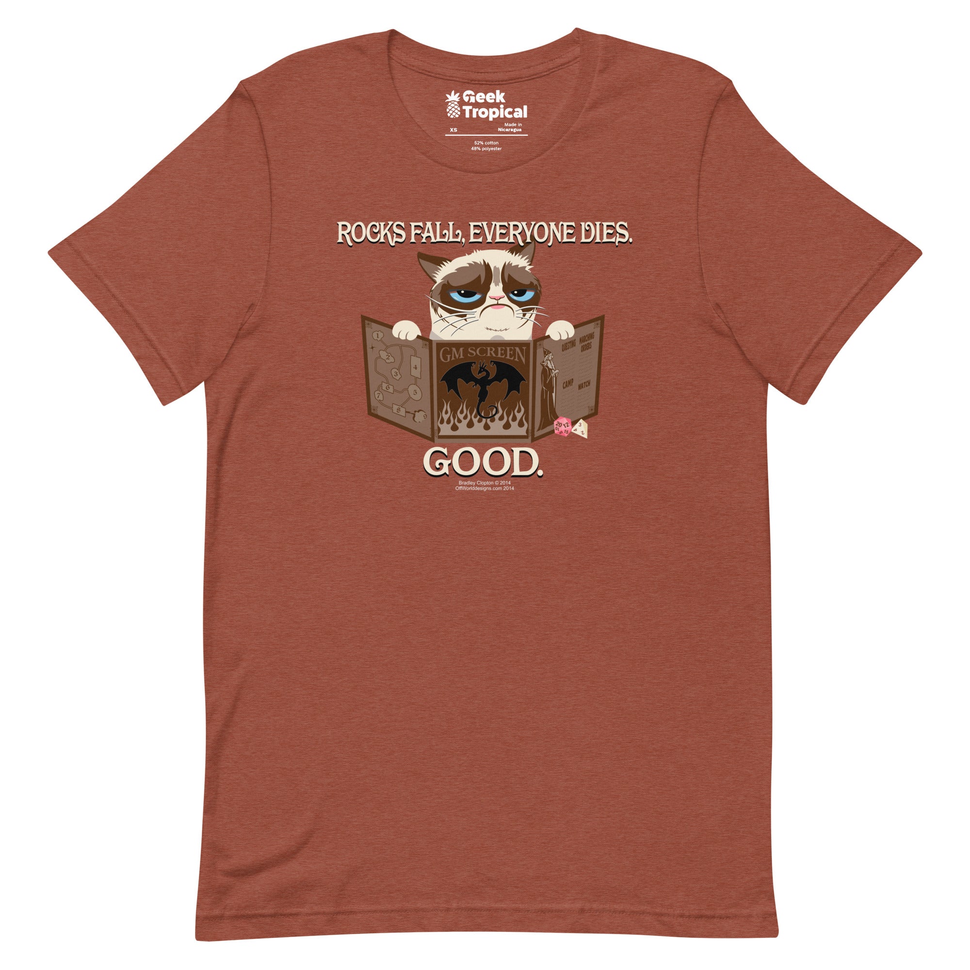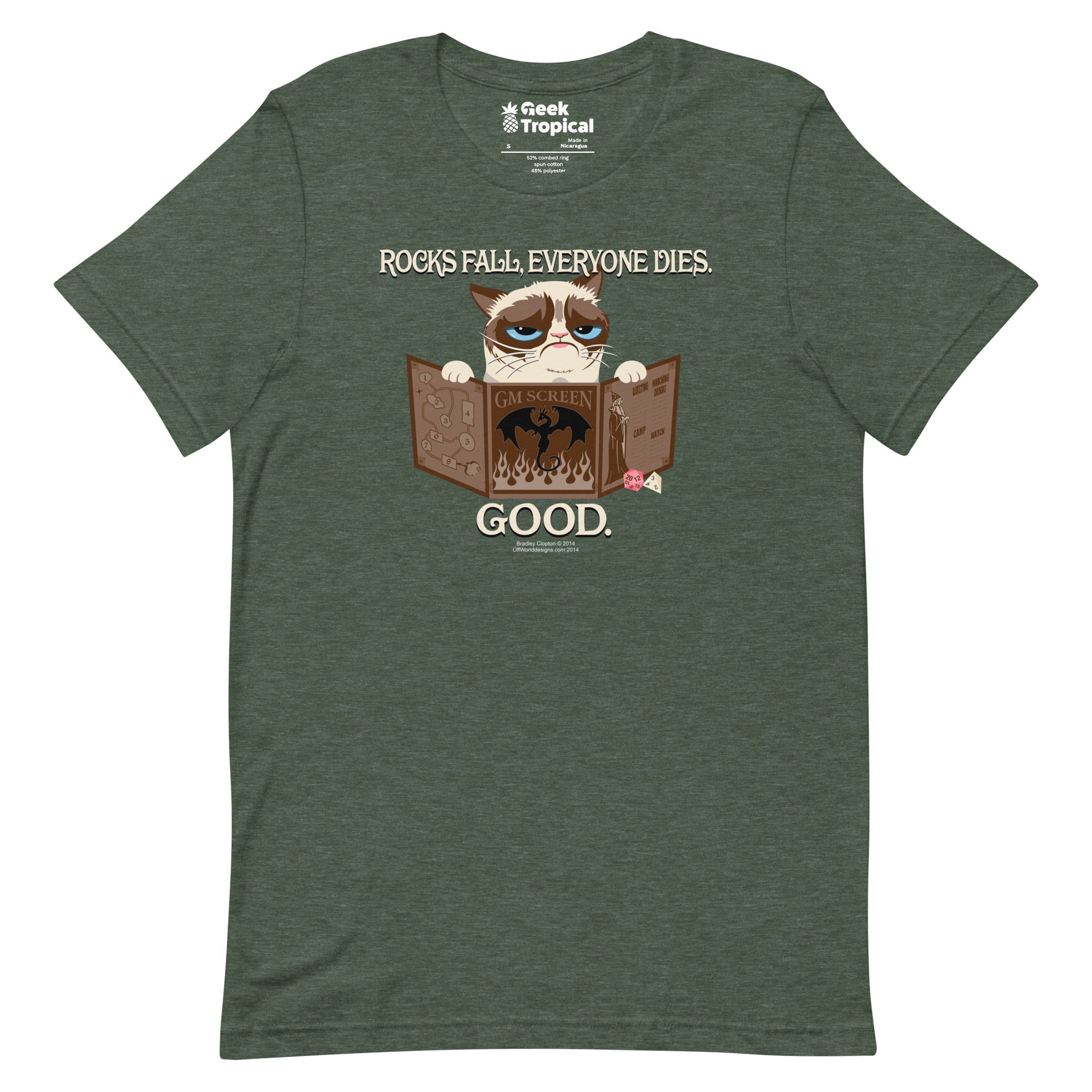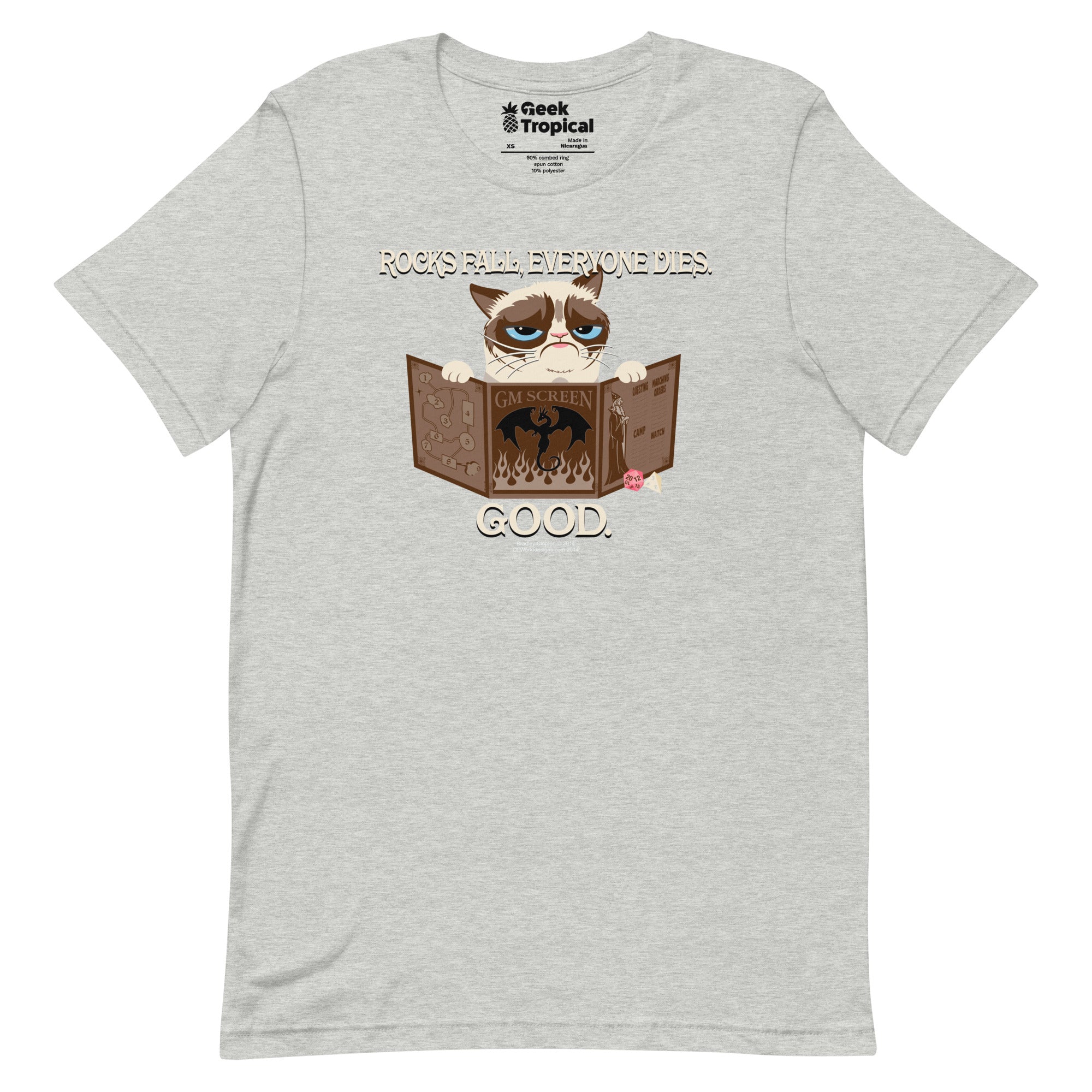 Grumpy Cat GM T-Shirt brings sardonic tabletop energy to your wardrobe. The graphic features a gloriously cranky feline Game Master fixing you with a withering stare, perfect for those TPK vibes and late-night Dnd sessions. Licensed art by Off World Designs, printed with eco-conscious inks that keep the snark sharp. Artist-backed comfort built for long campaigns.