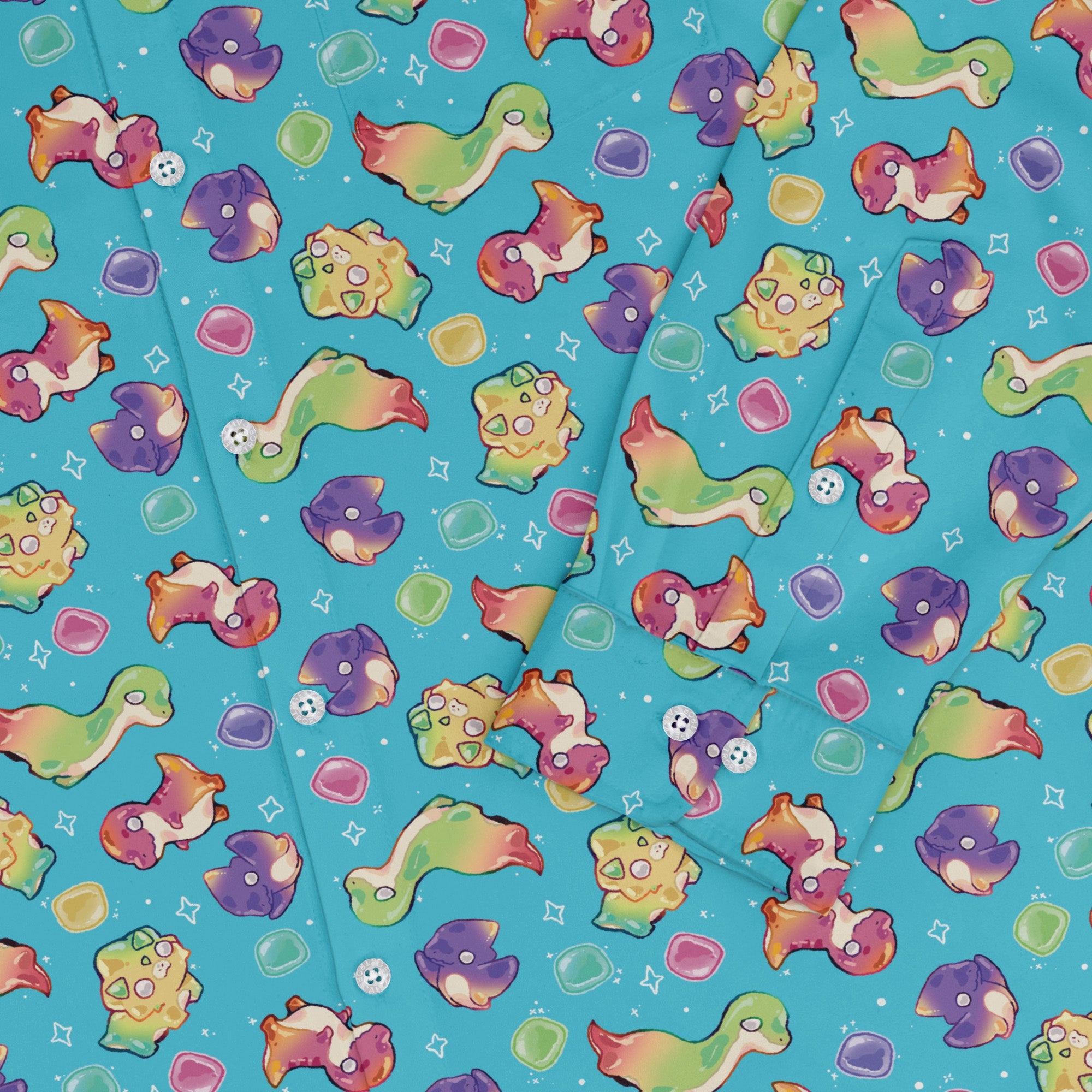 Gum Drop Dinos Long Sleeve Button Up Shirt