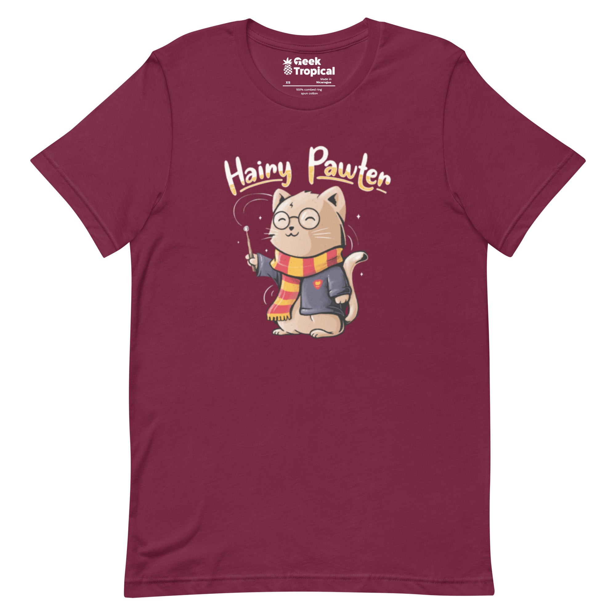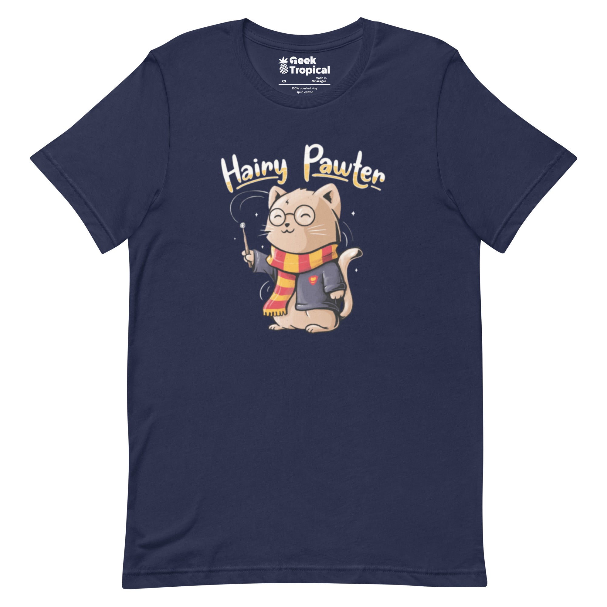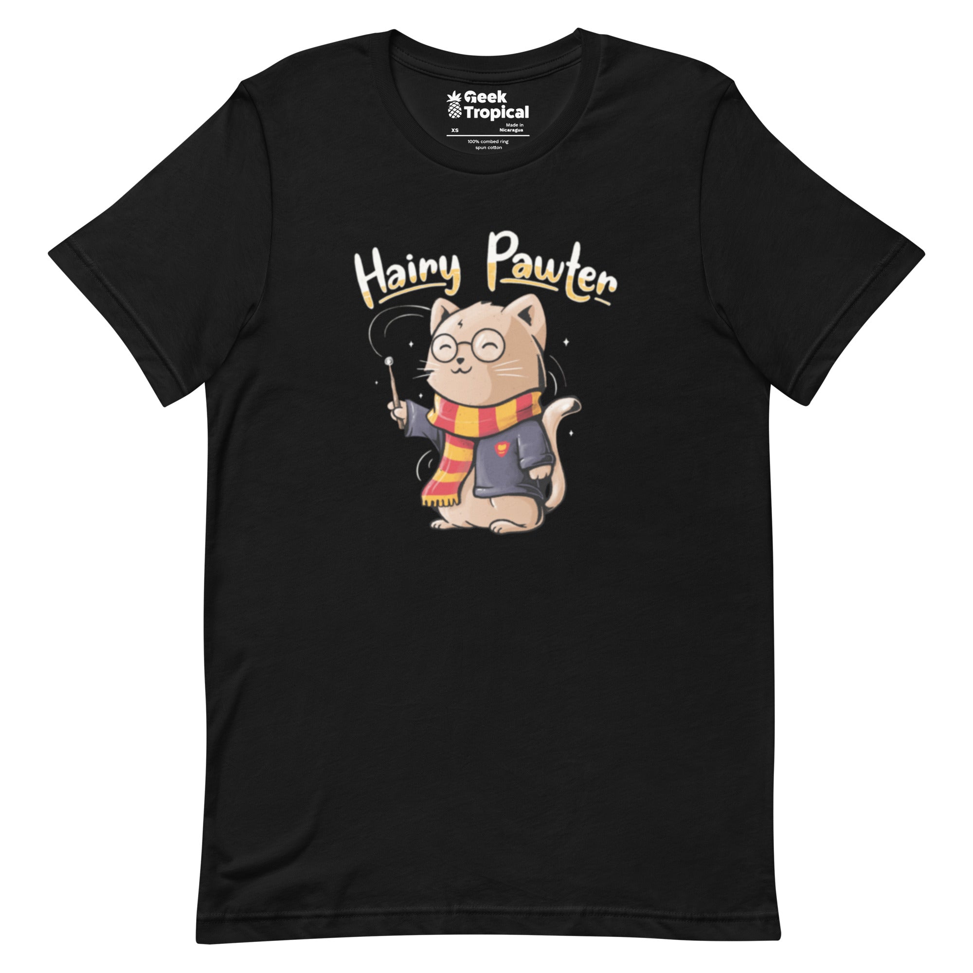 Hairy Pawter T-Shirt conjures a cheeky crossover between fantasy lore and furry charm. The graphic features a hand-drawn, whiskered wizard with storybook vibes and crisp, gallery-clean linework—equal parts parody and poise. Designed by Tobe Fonseca and printed with eco-conscious inks, this artist-backed tee lets your love of books, beasts, and magic share the same spell.