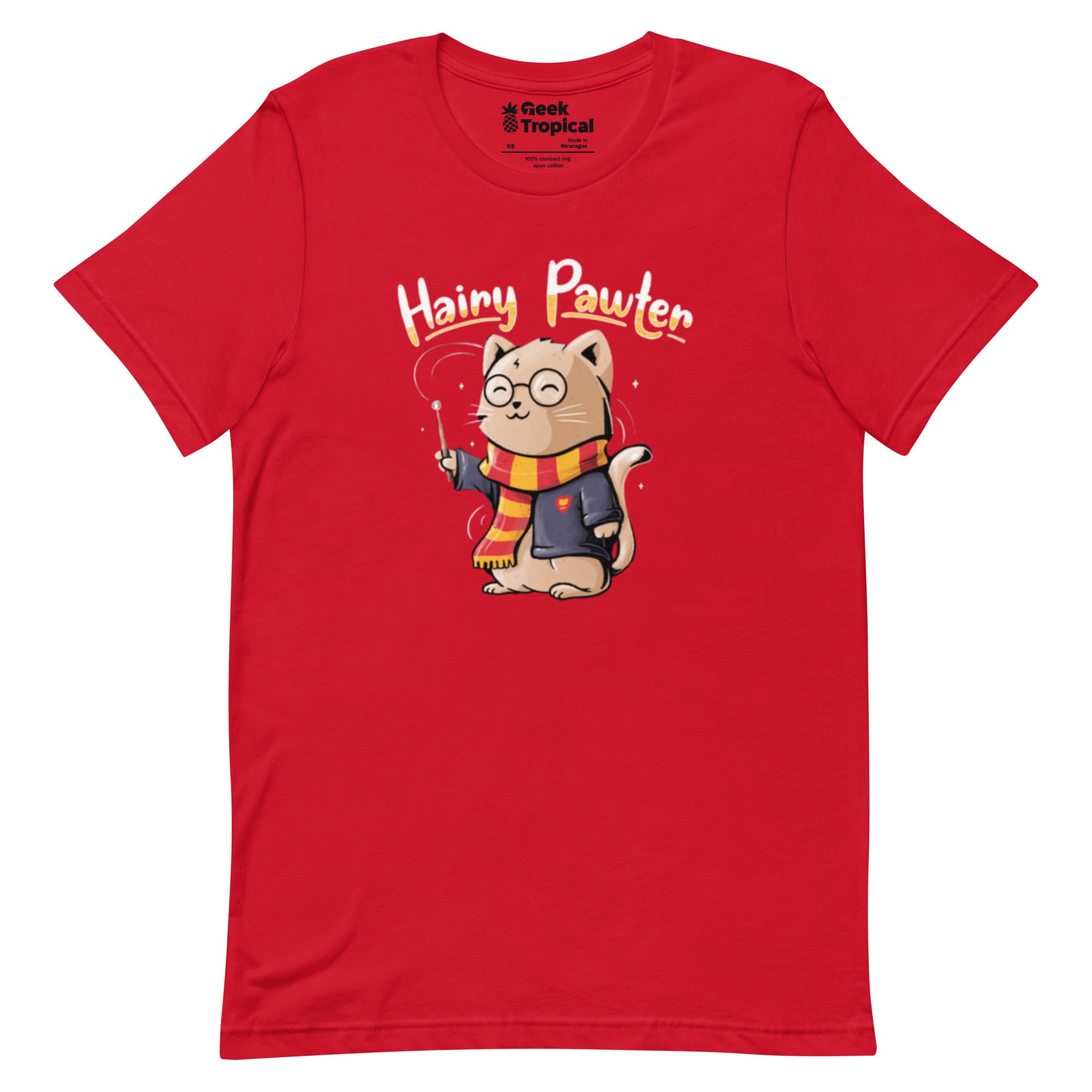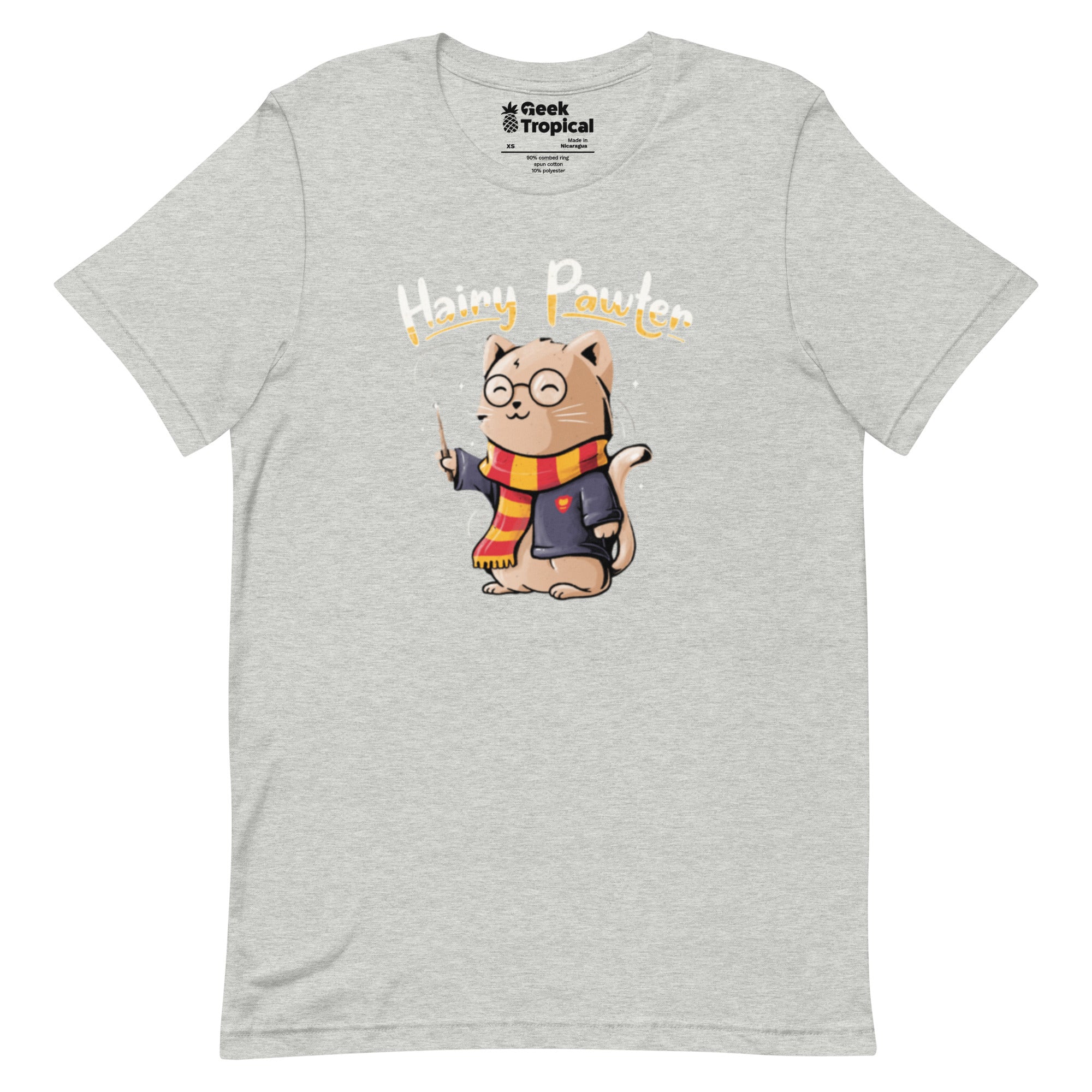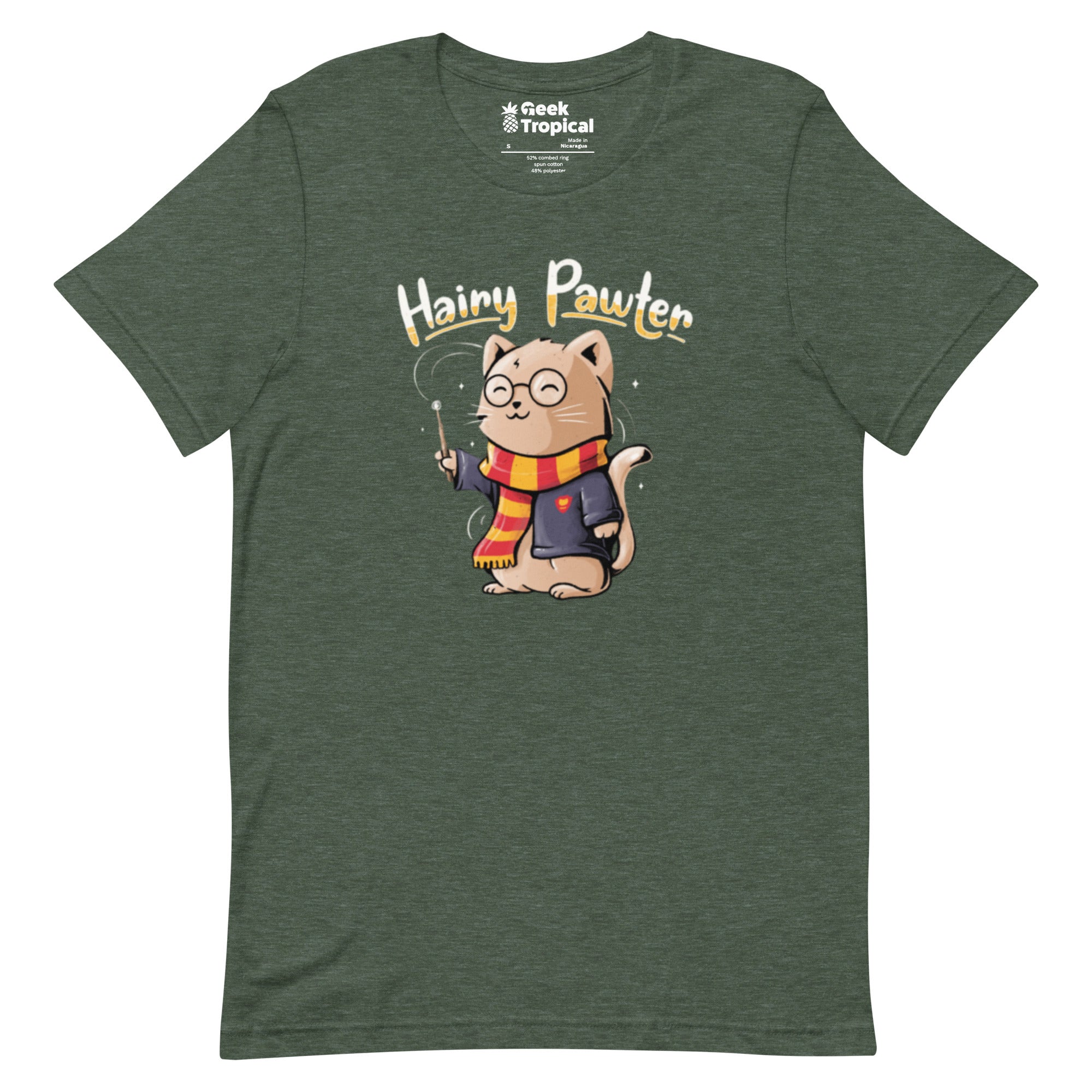 Hairy Pawter T-Shirt conjures a cheeky crossover between fantasy lore and furry charm. The graphic features a hand-drawn, whiskered wizard with storybook vibes and crisp, gallery-clean linework—equal parts parody and poise. Designed by Tobe Fonseca and printed with eco-conscious inks, this artist-backed tee lets your love of books, beasts, and magic share the same spell.