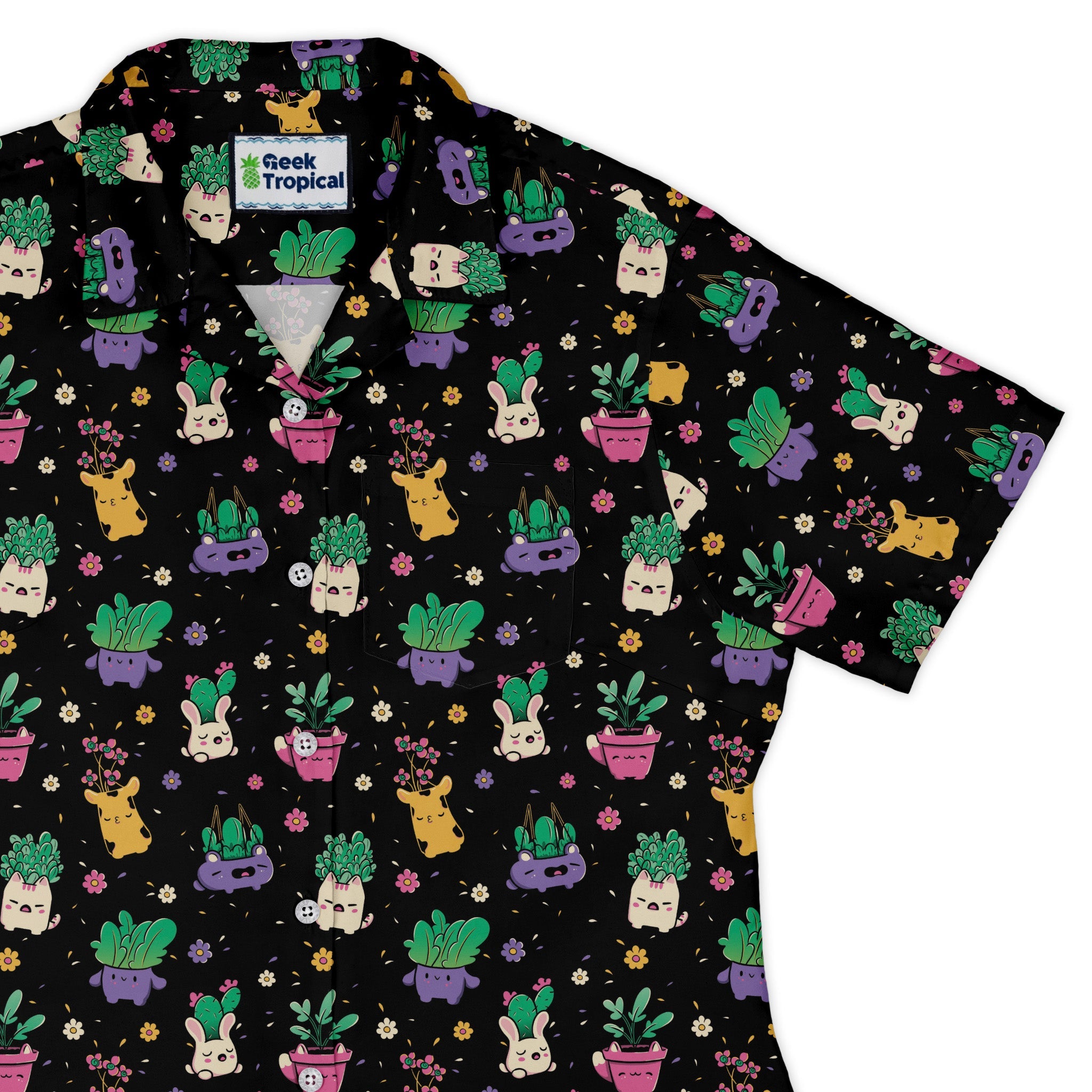 The Happy Kawaii Plants Curvy Button Up Shirt turns plant parenting into wearable joy, featuring a maximalist, all-over garden of cheerful, anime-kawaii sprouts and potted cuties. The curve-loving silhouette keeps things polished yet playful, and the print flows seamlessly across the pocket. Designed by Tobe Fonseca, printed with eco-conscious inks, and artist-backed—so your look and your values both thrive.