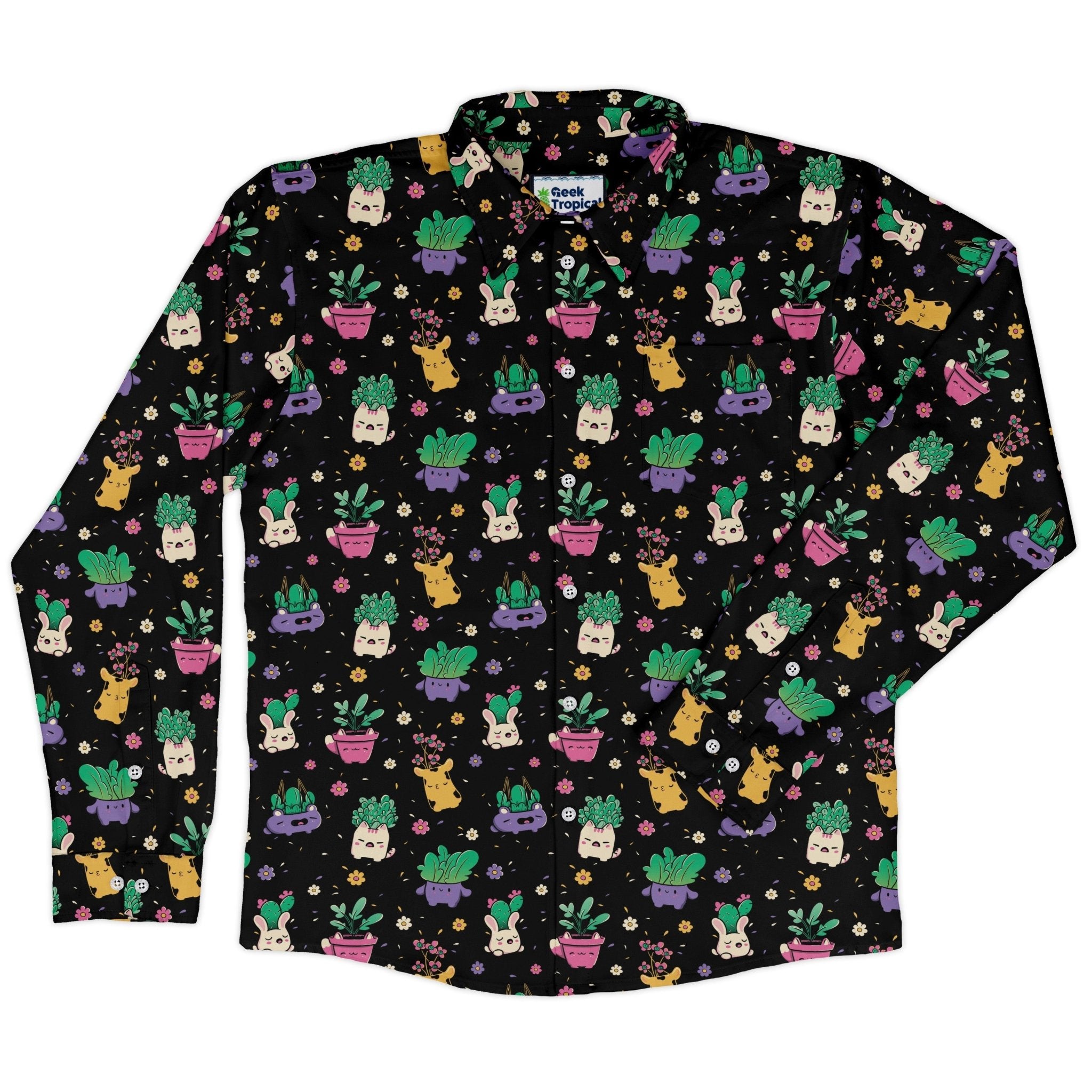 Happy Kawaii Plants Long Sleeve Button Up Shirt