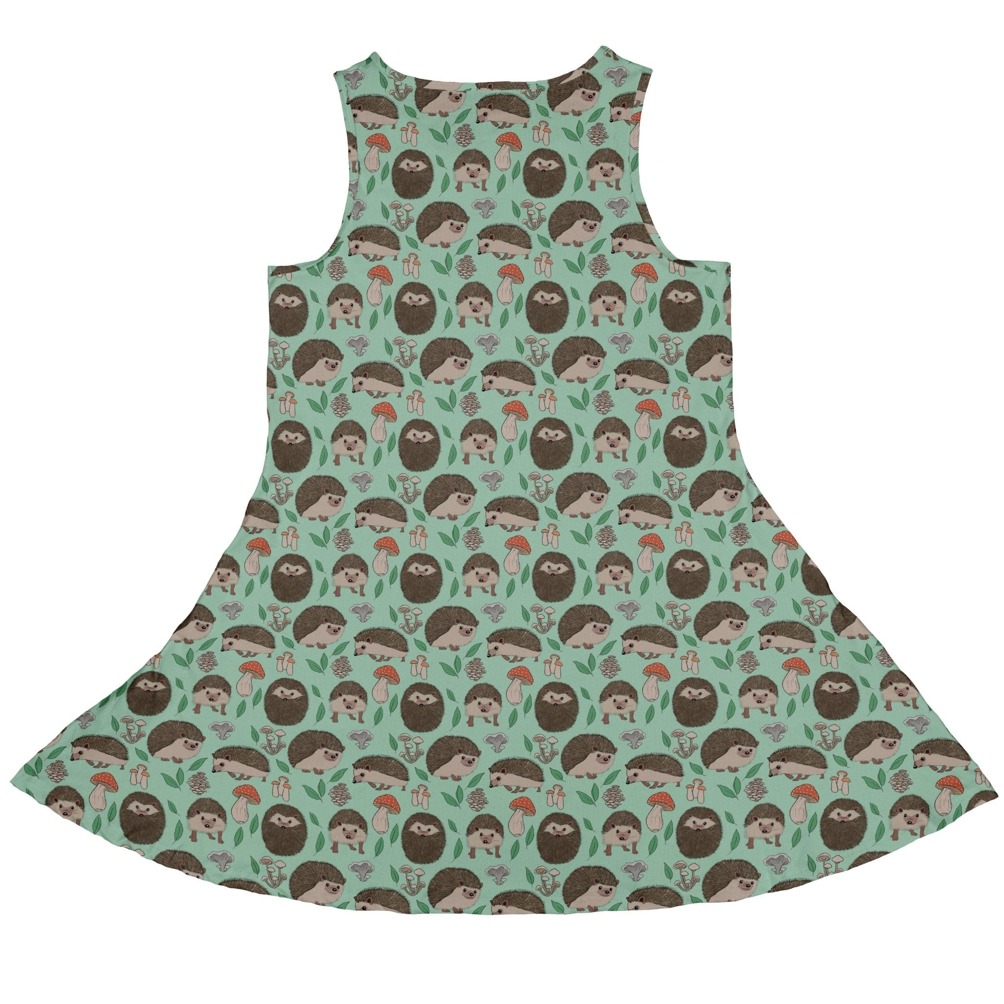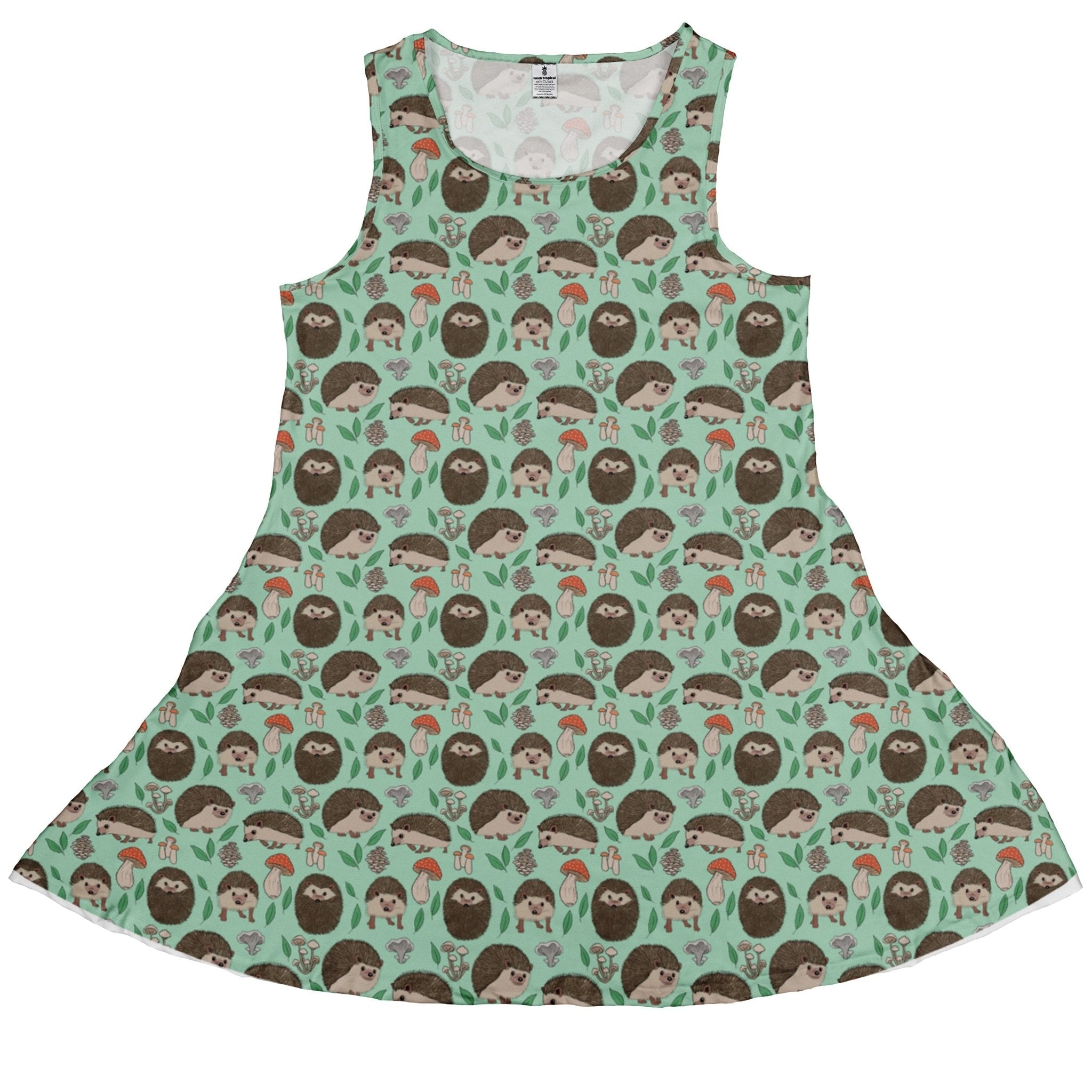 Meet the Hedge Hog Garden Adventures Dress, a whimsical ode to backyard quests. An allover print of curious hedgehogs exploring lush botanicals sets a charming scene, designed by Julie Kitzes. Soft, swishy, and ready for IRL side quests, with discreet pockets for essentials. Dress up or keep it casual—the artist-backed design levels up everyday style.