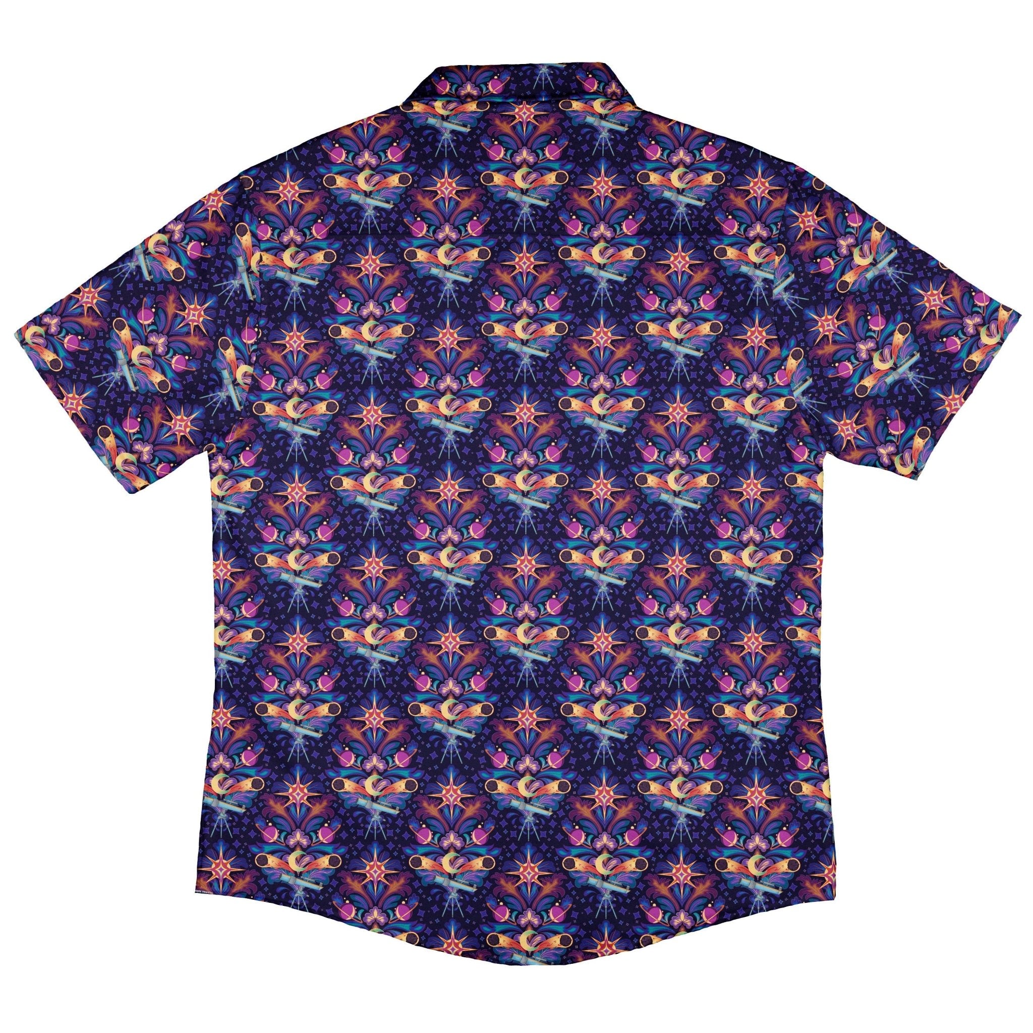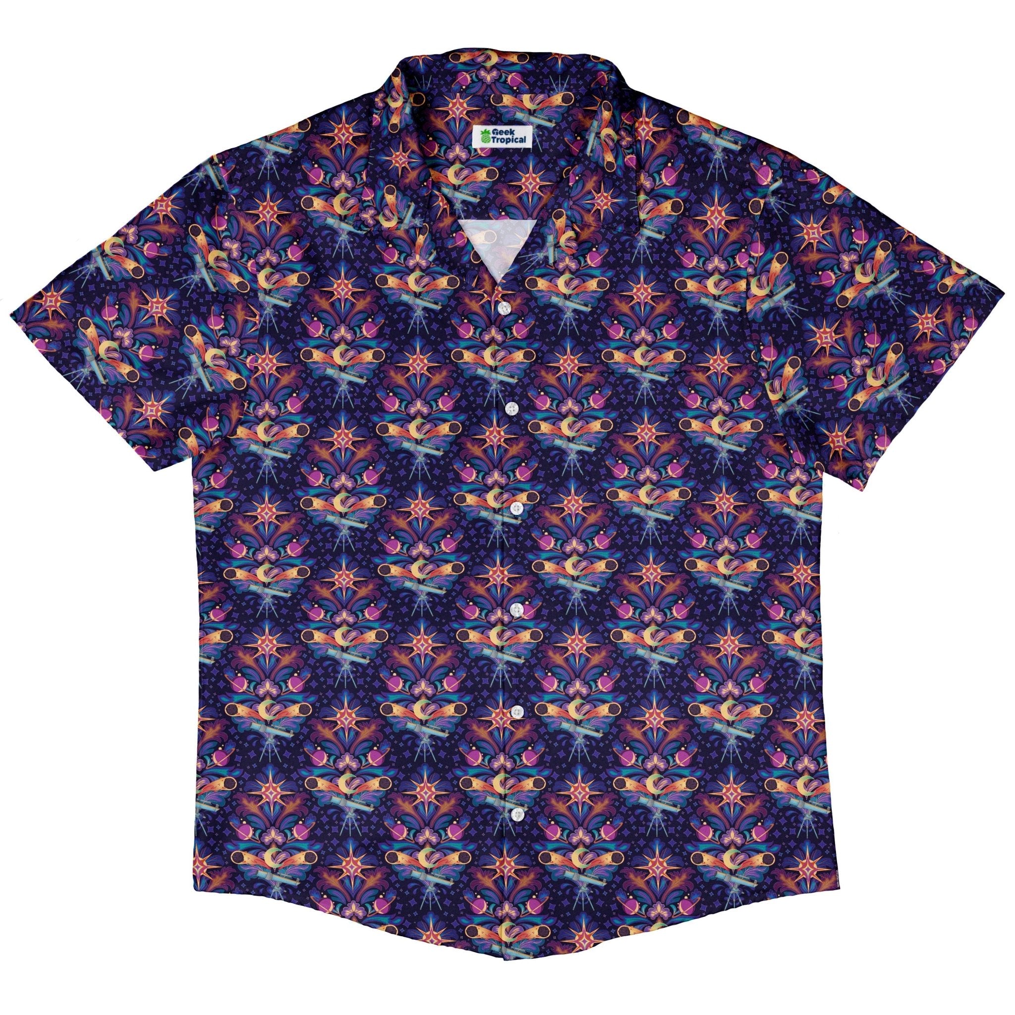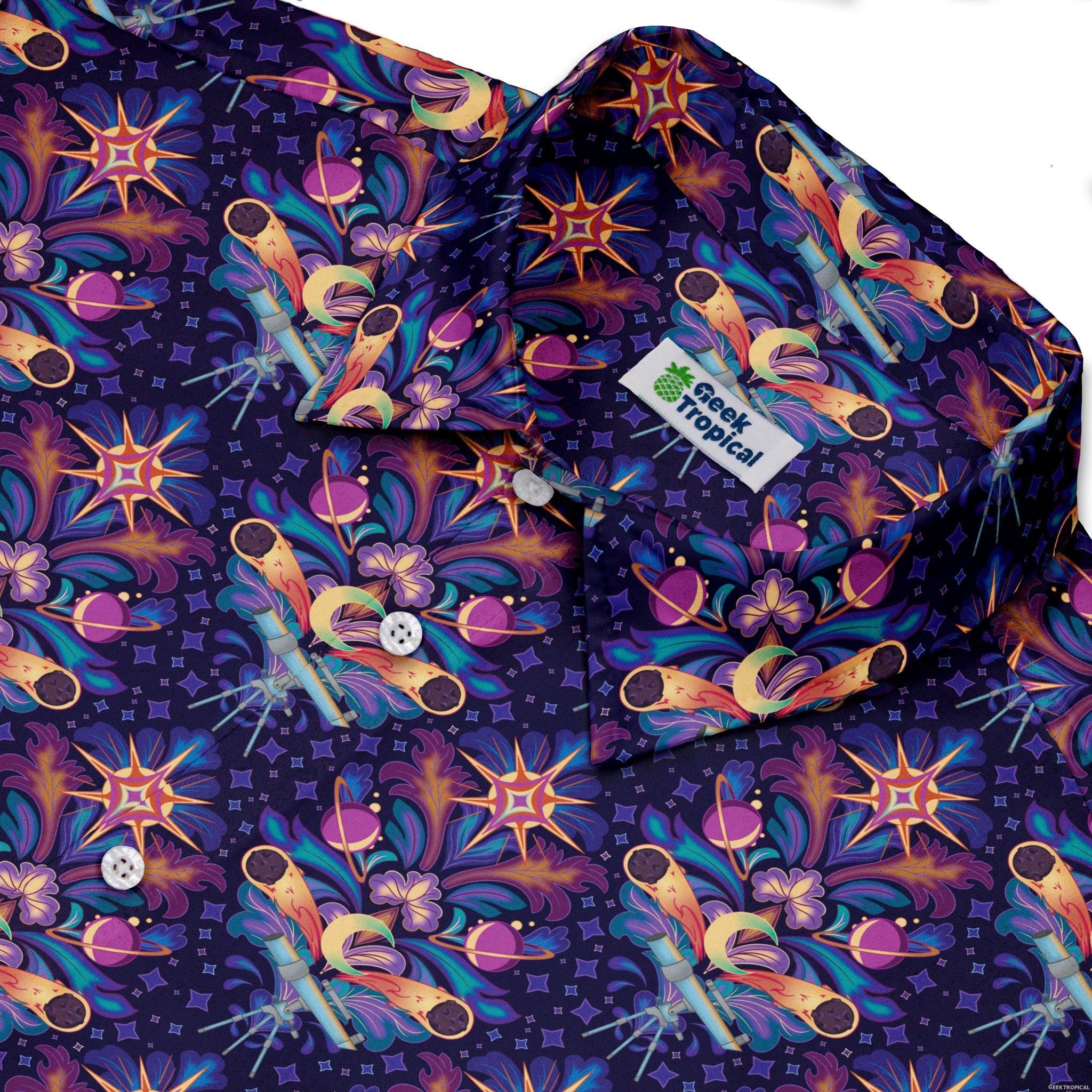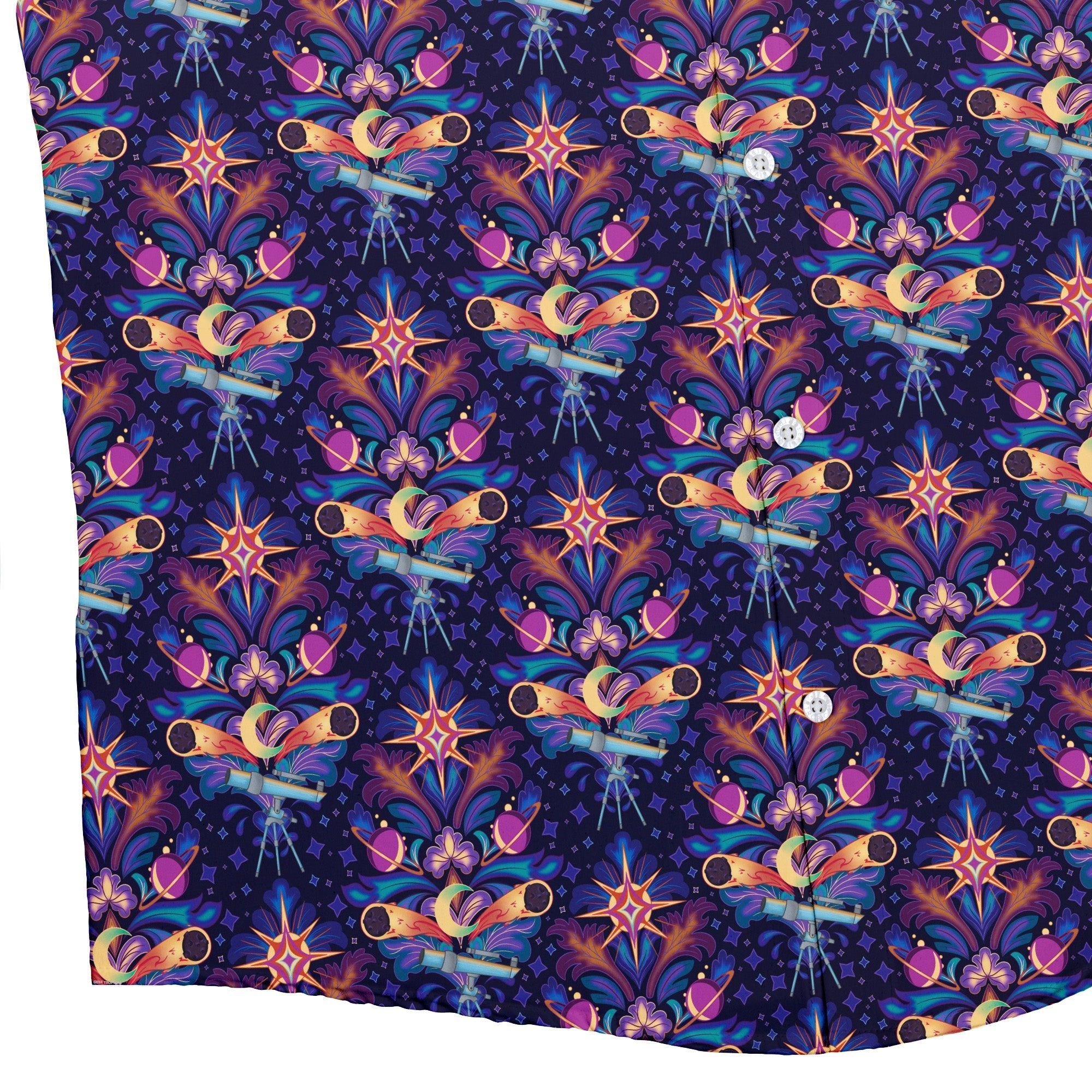 The Hidden Astronomy Button Up Shirt sneaks star-lover cred into your everyday rotation. A dark, cosmic backdrop is mapped with fine constellation diagrams and speckled starlight, with sly astronauts hidden among the clusters for a find-me surprise. Designed by Brigid Ashwood, it hits that sweet spot between nerdy and refined—equally at home under a blazer or on late-night telescope sessions.