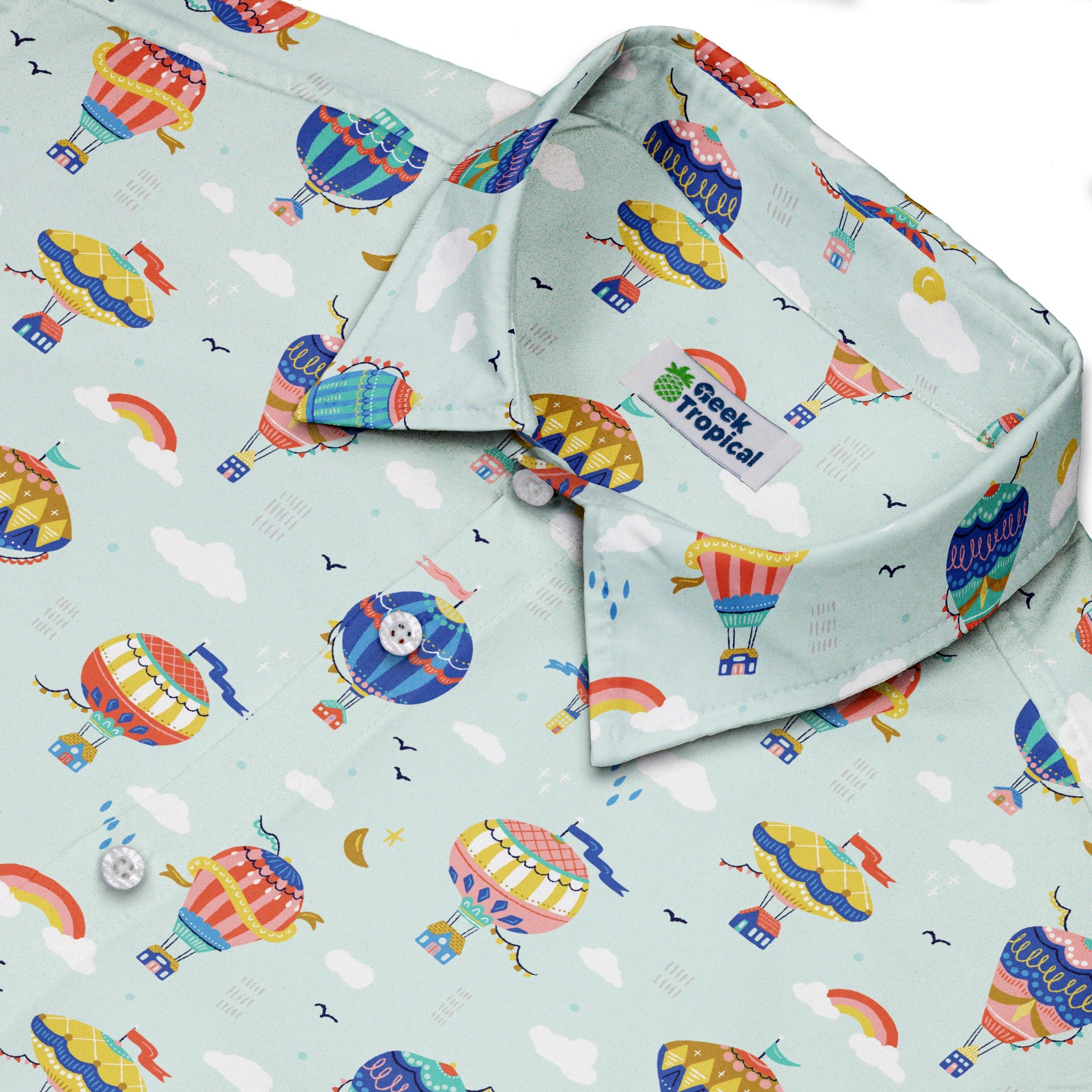 The Hot Air Balloon Sky Button Up Shirt lifts your look with a breezy panorama of vivid balloons drifting across a wide-open sky. Designed by Zirkus Design, the print wraps cleanly across the placket and pocket for a seamless vibe that reads polished yet playful. Soft on the skin and easy to wear, it’s artist-backed style for sky chasers and map geeks—upgraded for everyday adventures.