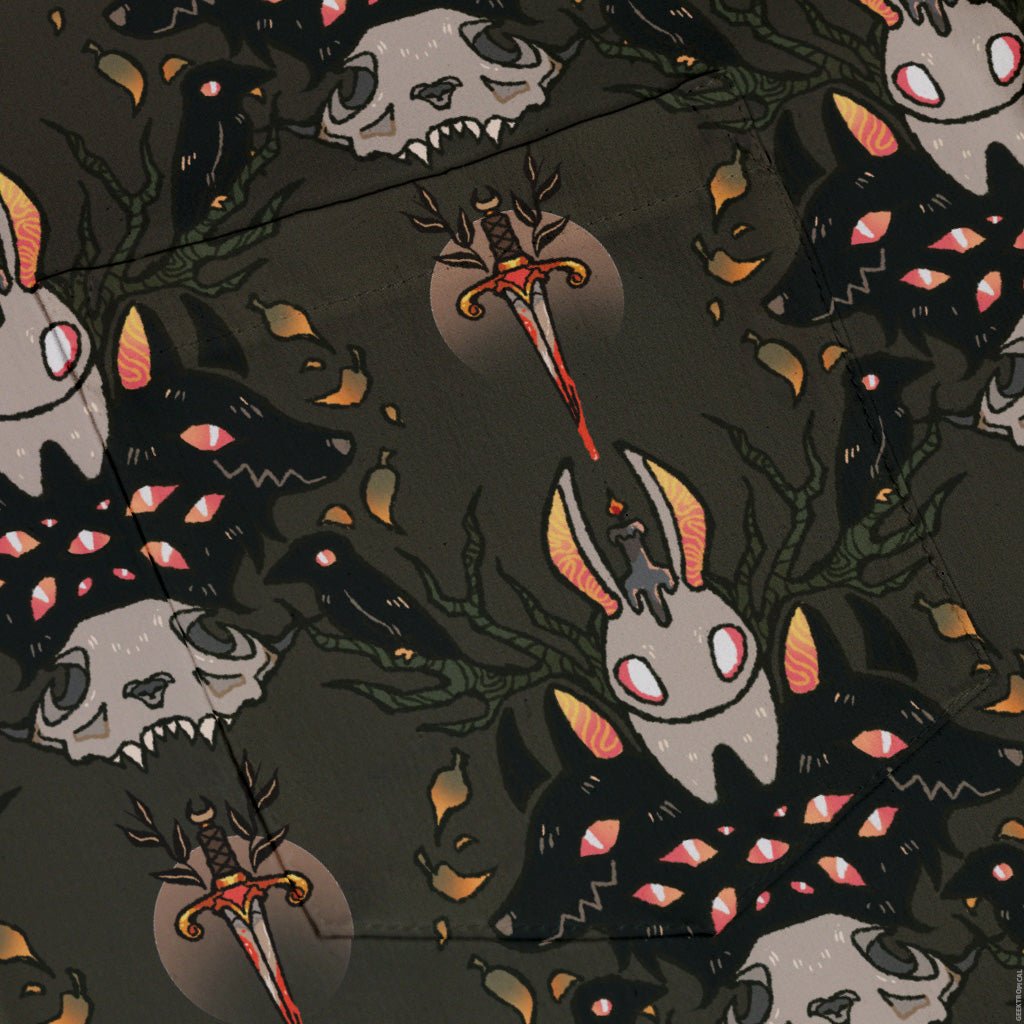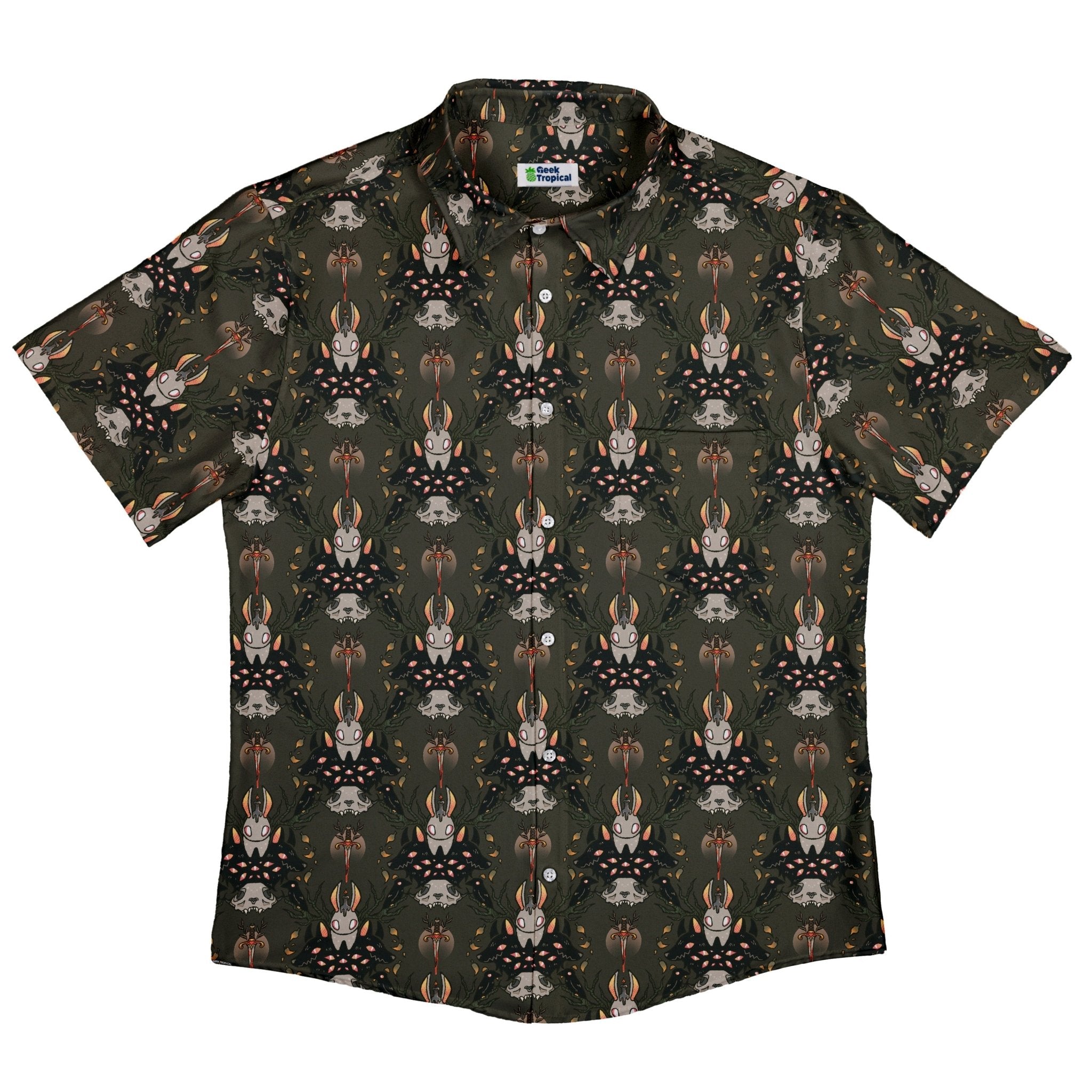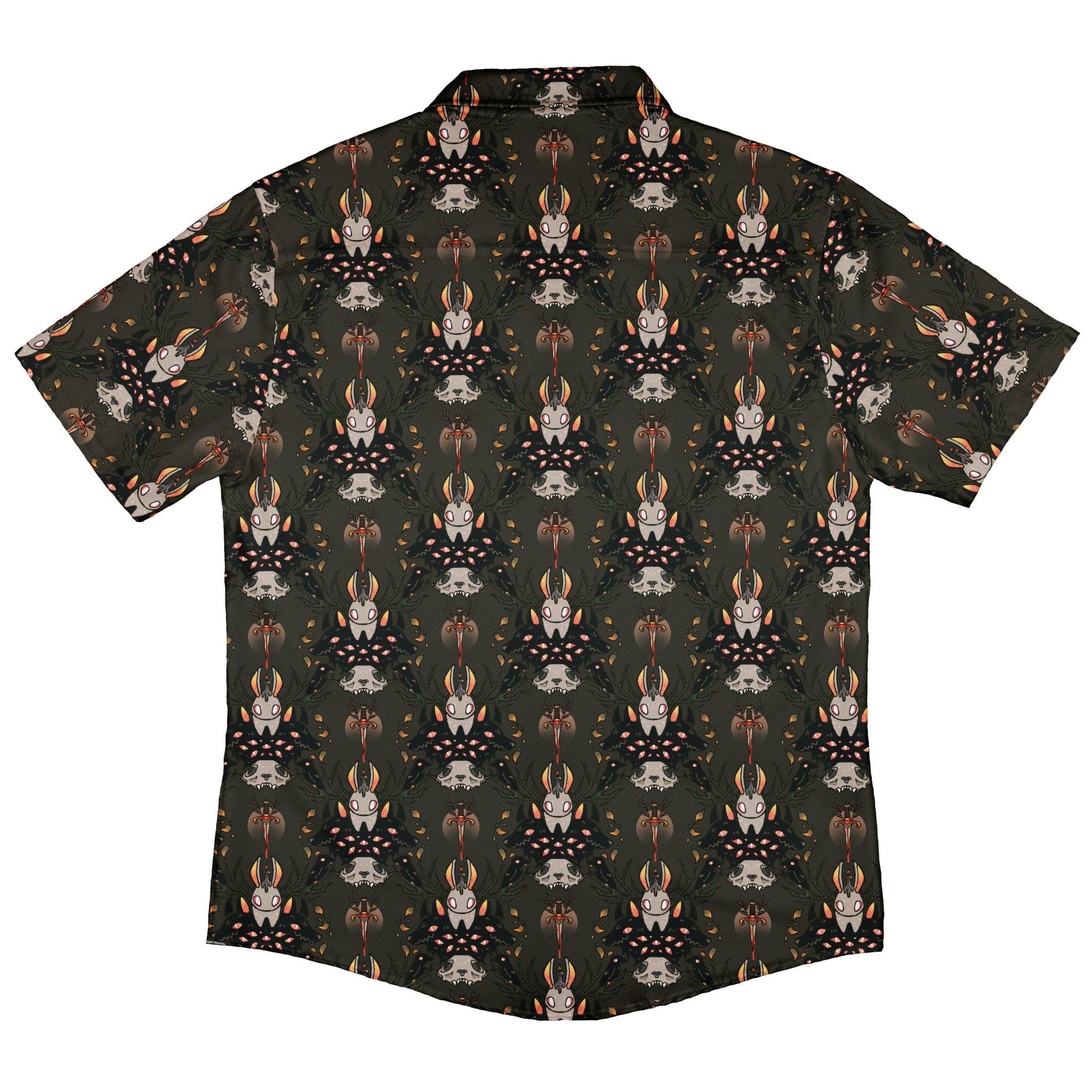 Meet the Hunter and Prey Button Up Shirt, a sly tribute to the eternal chase rendered in repeating animal silhouettes mid-sprint. Predators stalk, prey zigzags, and the all-over artwork flows cleanly across the front for a satisfying, uninterrupted look. Equal parts playful and sharp, it pairs geek flair with easygoing polish. Designed by Ardi Tong, for those who like their style cunning and their patterns in motion.