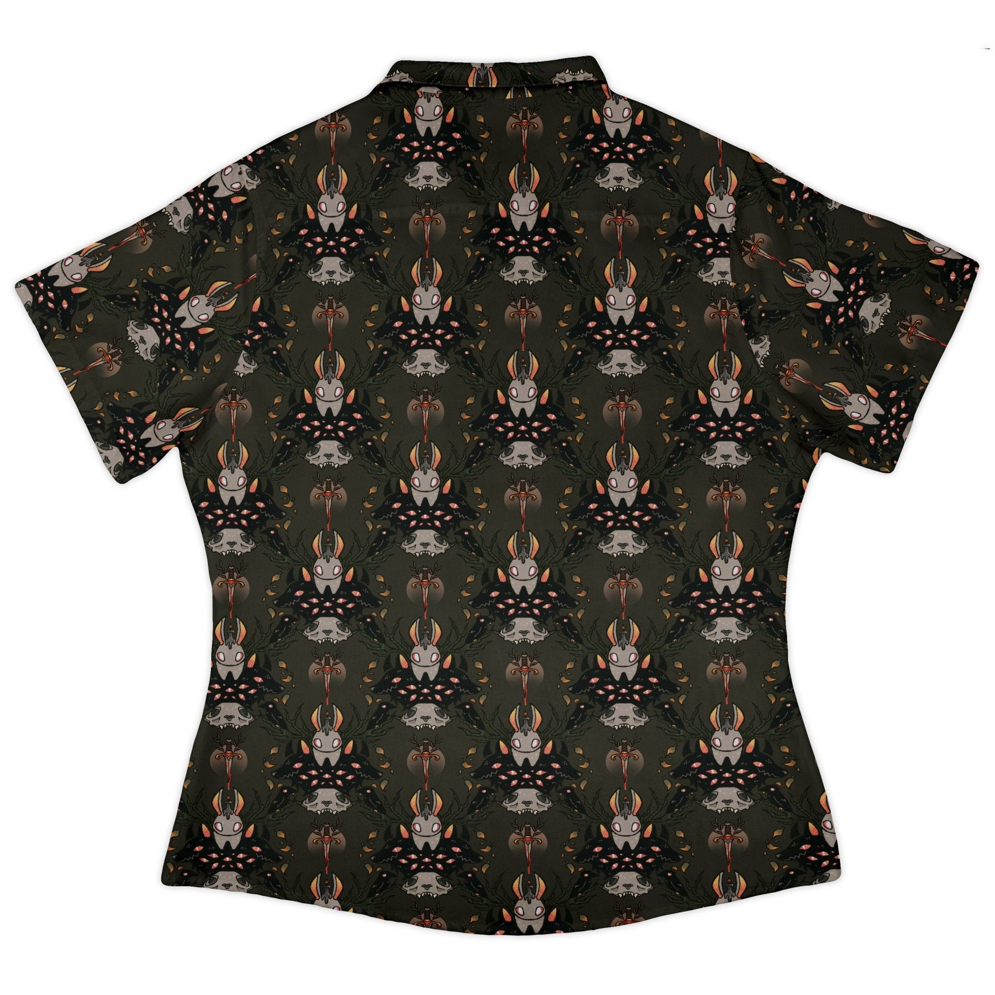 The Hunter and Prey Curvy Button Up Shirt tracks a clever chase across every panel—predators and their quarry looping in a seamless repeat that even aligns across the pocket. Designed by Ardi Tong, it brings art-forward animal energy to a curve-loving silhouette with adjustable sleeves, a polished untucked vibe, and distinctive buttons. Soft, breathable, and printed with eco-conscious inks, it’s gear for geeks with bite.