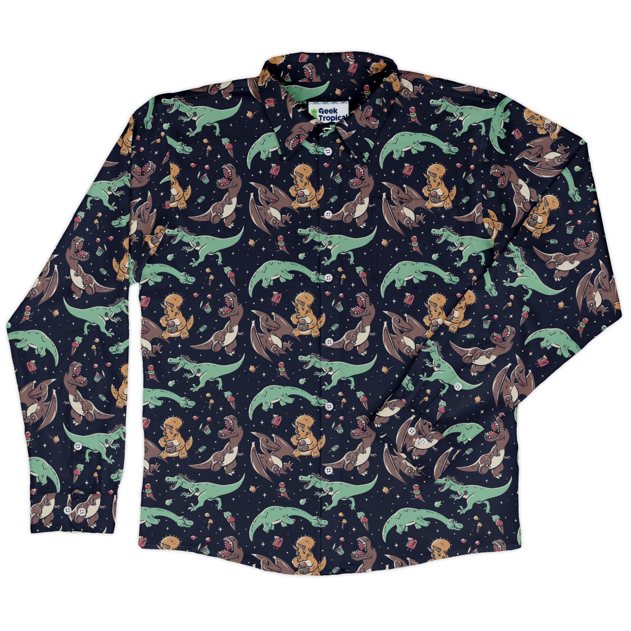 Ice Cream Dinos Long Sleeve Button Up Shirt