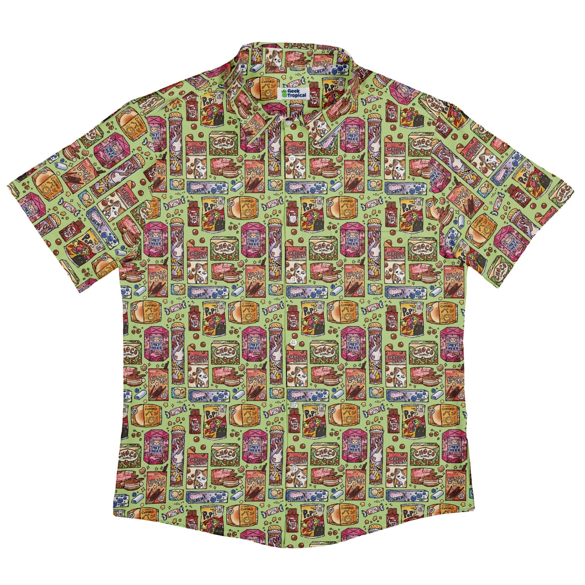 Load up your style credits with the Japanese Vending Machine Snacks Button Up Shirt. A colorful grid of snack windows, push buttons, and bold Japanese lettering turns your torso into a late-night konbini. The print aligns cleanly across the front for that satisfying, maximalist look. Designed by Ardi Tong and artist-backed, it’s an easy flex from arcade runs to ramen dates.