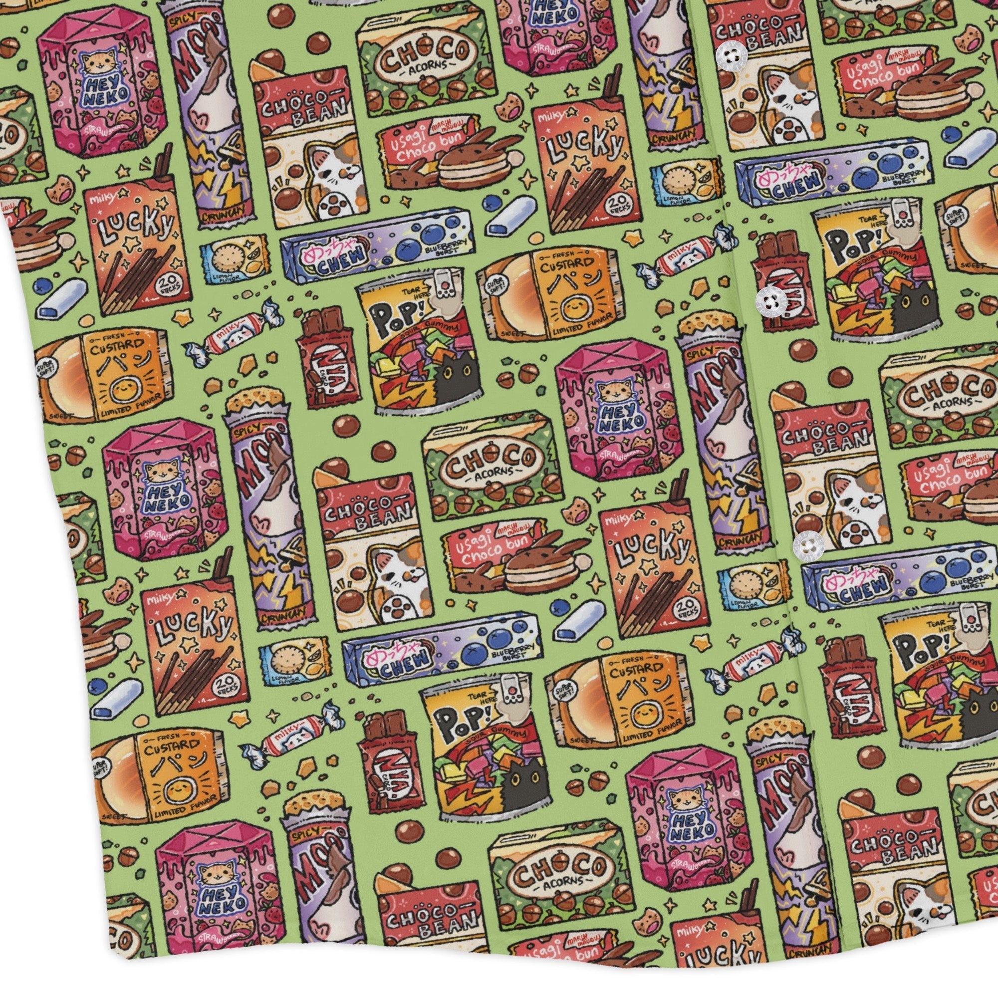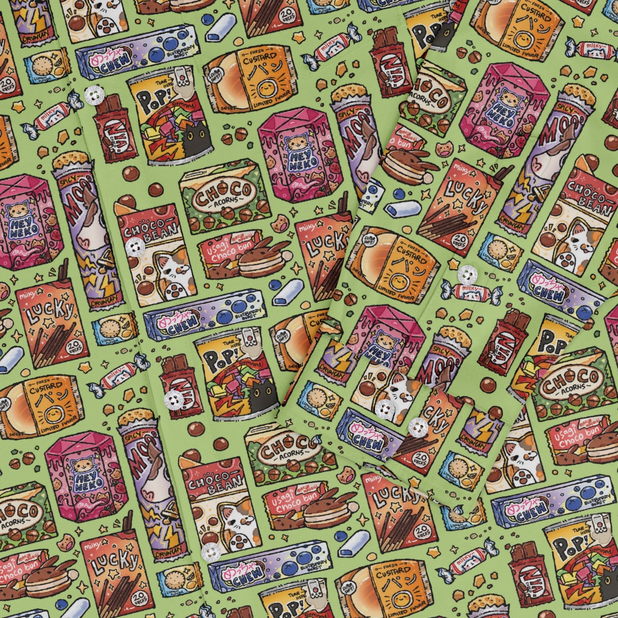 Meet the Japanese Vending Machine Snacks Long Sleeve Button Up Shirt, your wearable trip to the late-night konbini. A maximalist all-over print stacks bright snack icons: cans, bottles, and wrappers arranged like tidy vending rows, with crisp line art and satisfying repeat. Soft, breathable, and ready for marathon hangs, it delivers geeky polish without trying too hard. Designed by Ardi Tong and printed with eco-conscious inks.