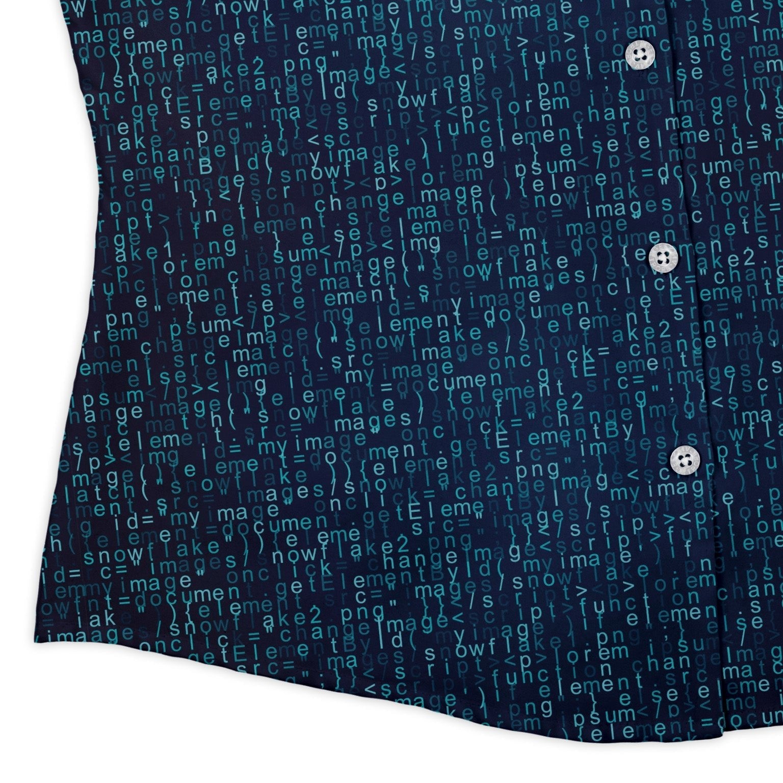 Javascript Computer Code Blue Curvy Button Up Shirt