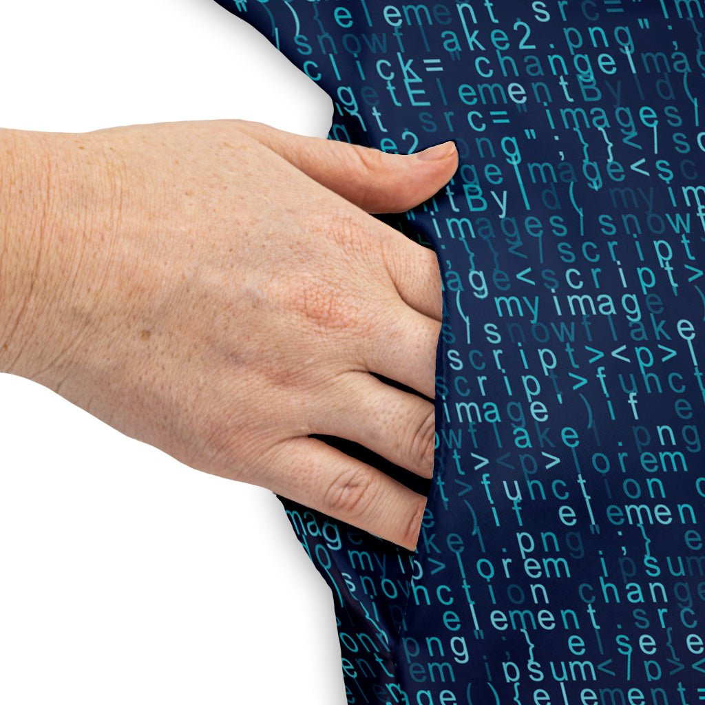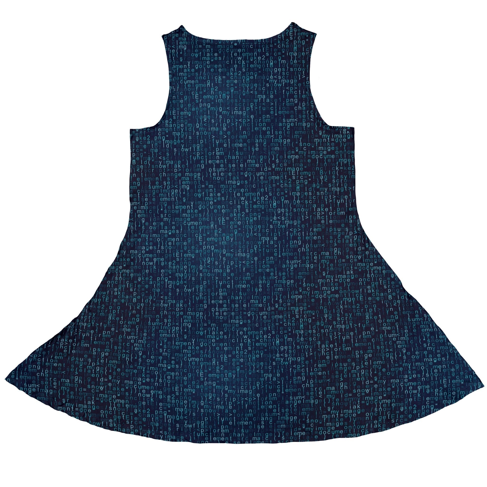 Meet the Javascript Computer Code Blue Dress, where clean lines meet clever lines of code. The vibrant blue base is covered in cascading JavaScript syntax—brackets, braces, and tidy snippets—arranged like a sleek editor window for a minimalist, geek-chic vibe. Easy to style from standup to date night, it serves sharp looks with effortless comfort. Artist-backed and proudly nerdy, built for code reviews and coffee runs.