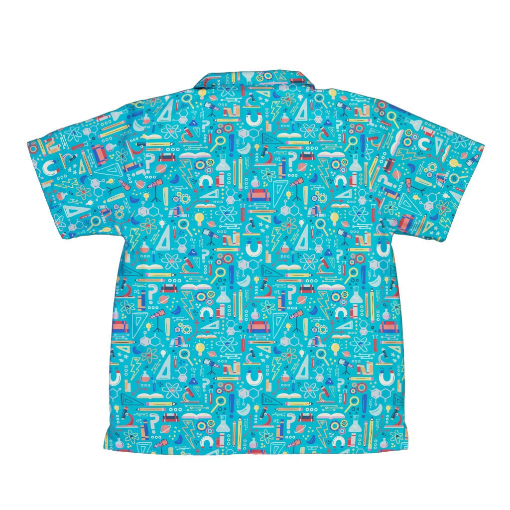 Level up their curiosity with the Just Science Youth Hawaiian Shirt, a playful ode to lab life and big ideas. The all-over science pattern flows seamlessly across the front for a polished, geek-chic look, paired with a relaxed camp collar that keeps things easy. Soft, breezy, and kid-ready for school, camp, or museum days. Designed by Zirkus Design, printed with mindful inks, and every purchase supports the artist.
