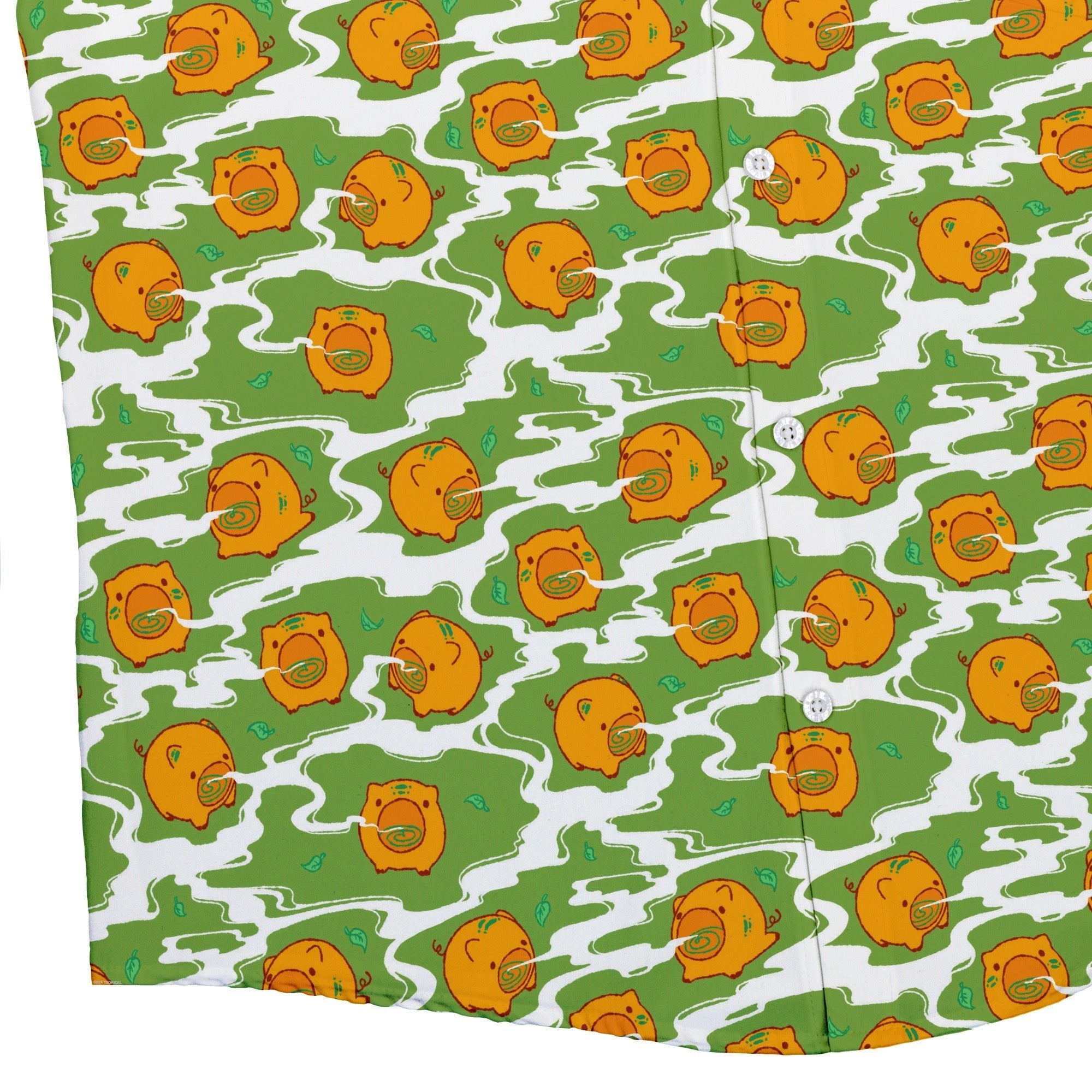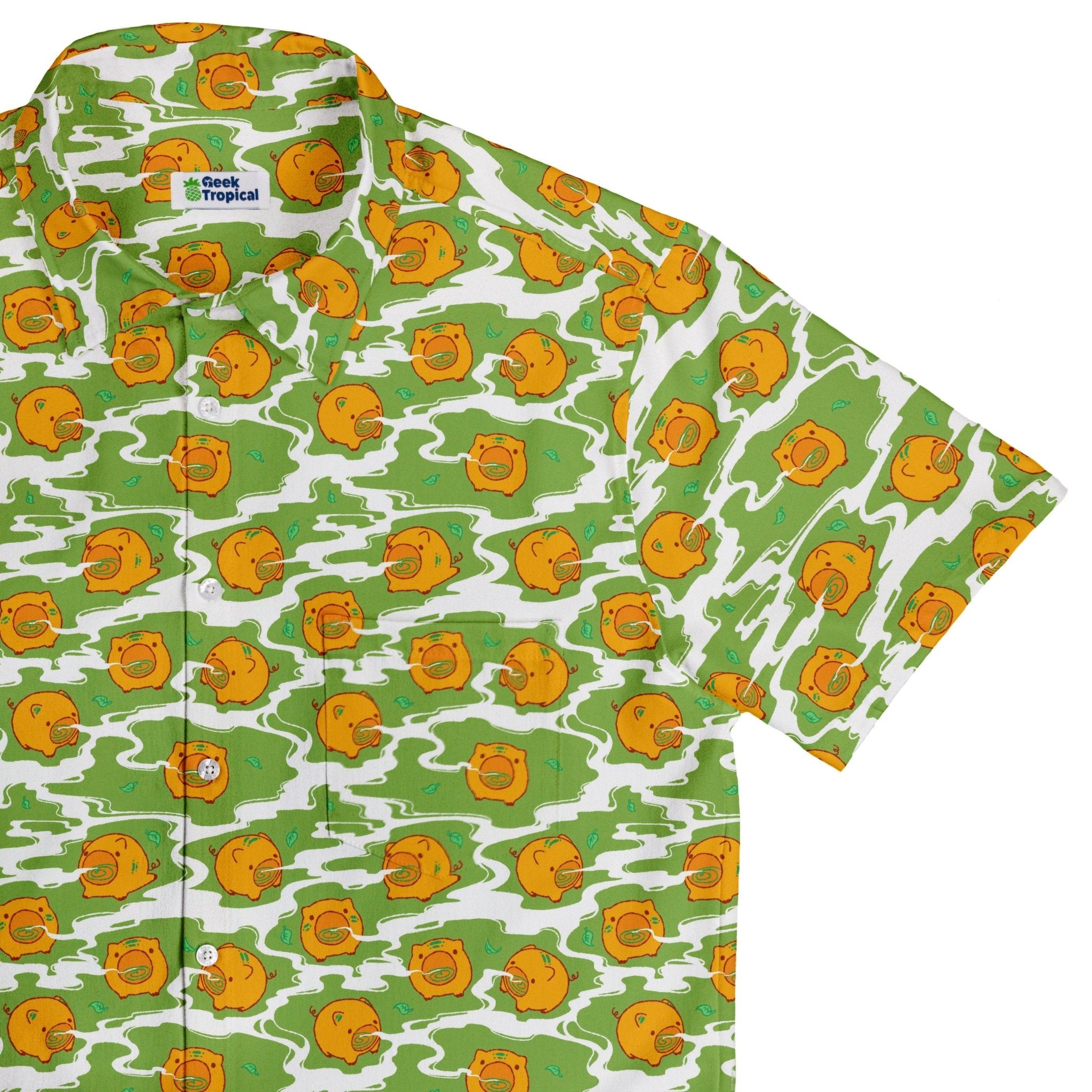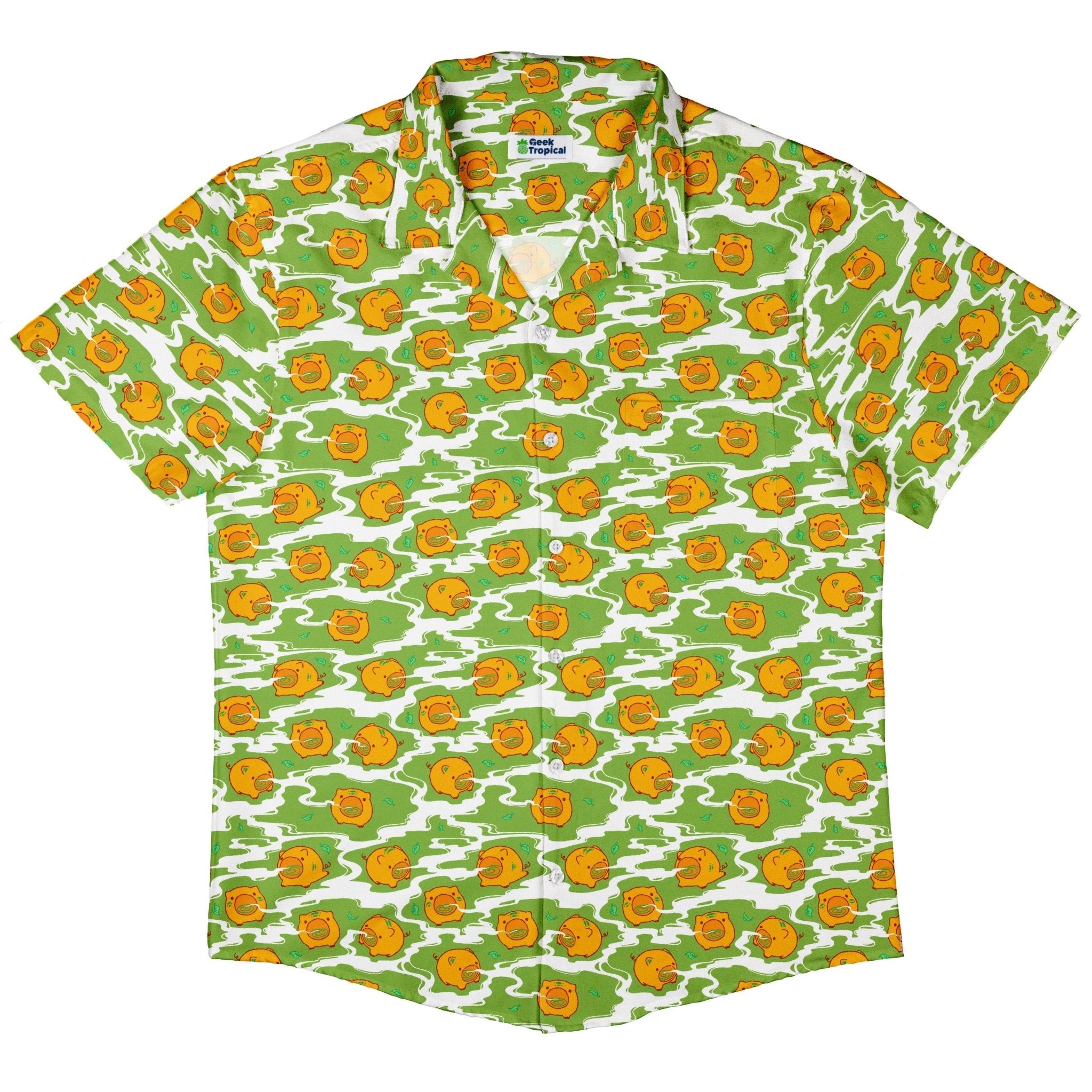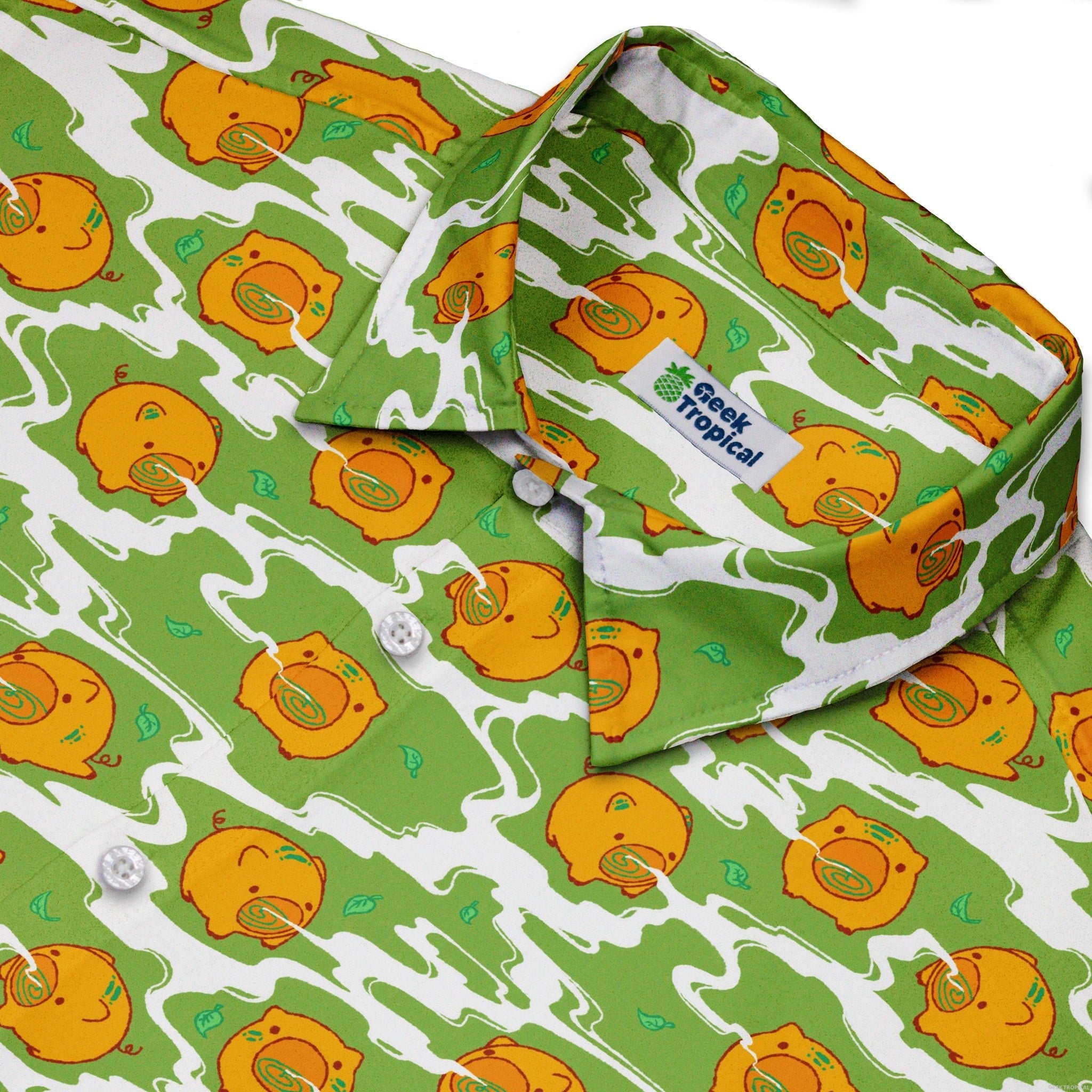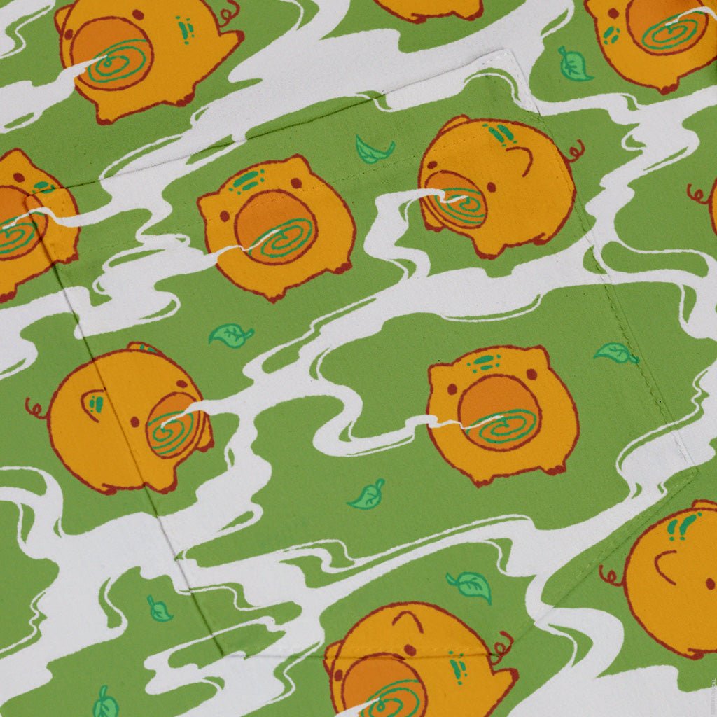Kawaii Piglets Incense Green Button Up Shirt
