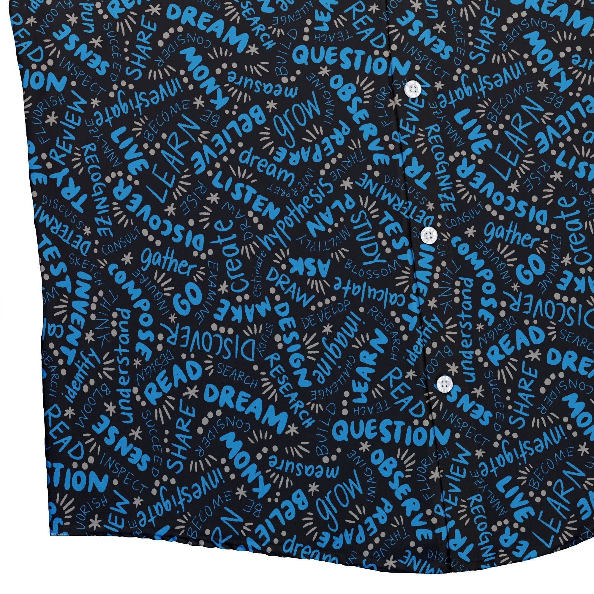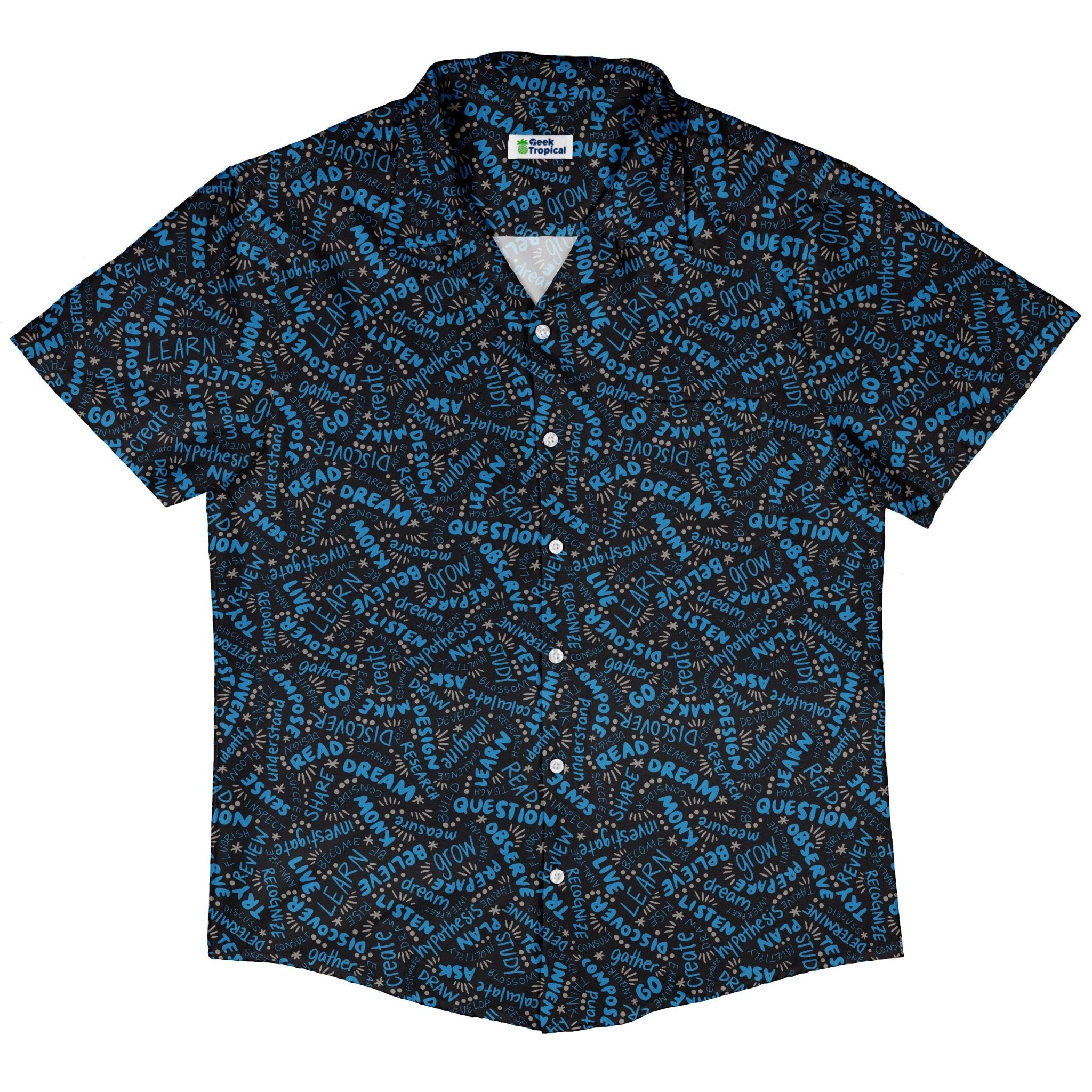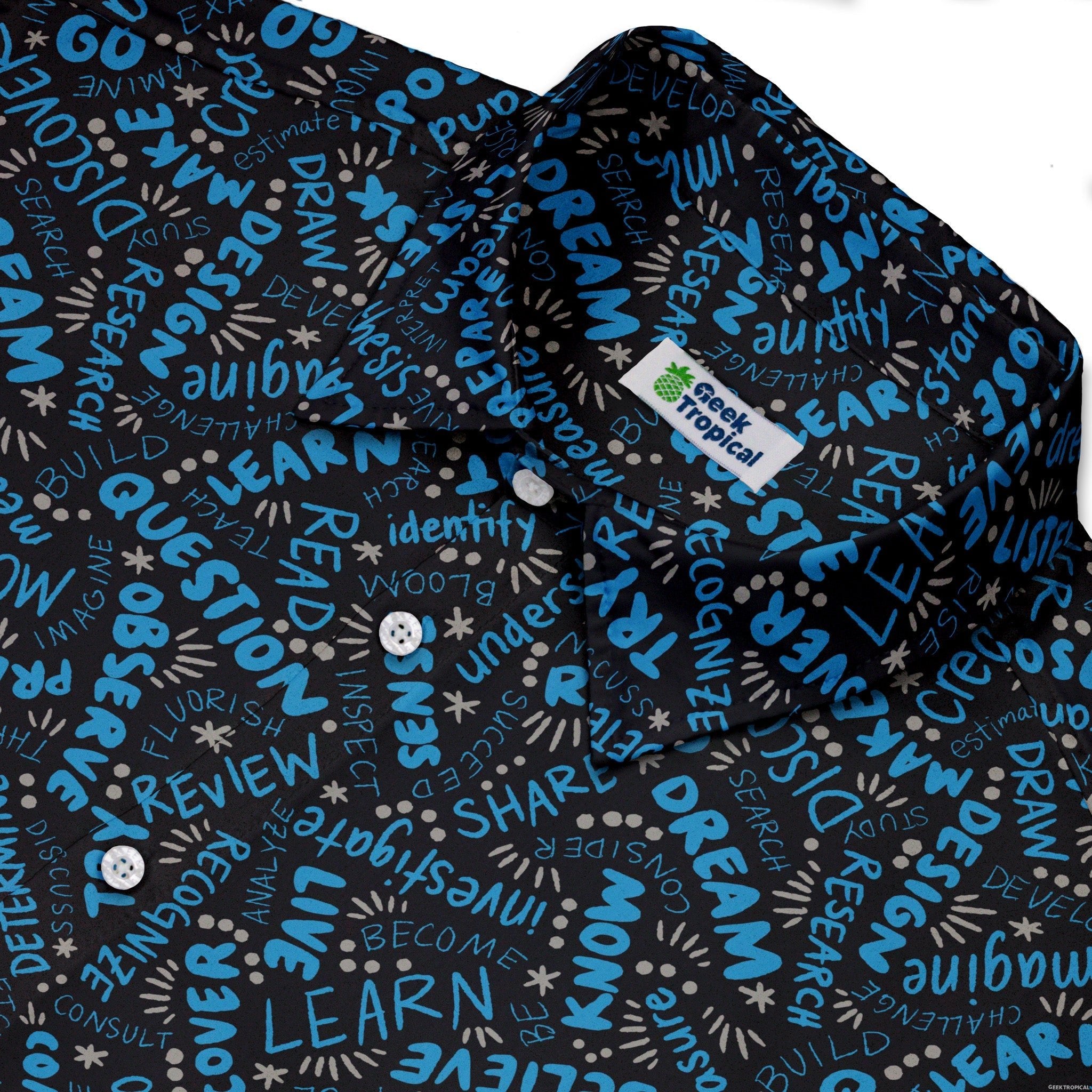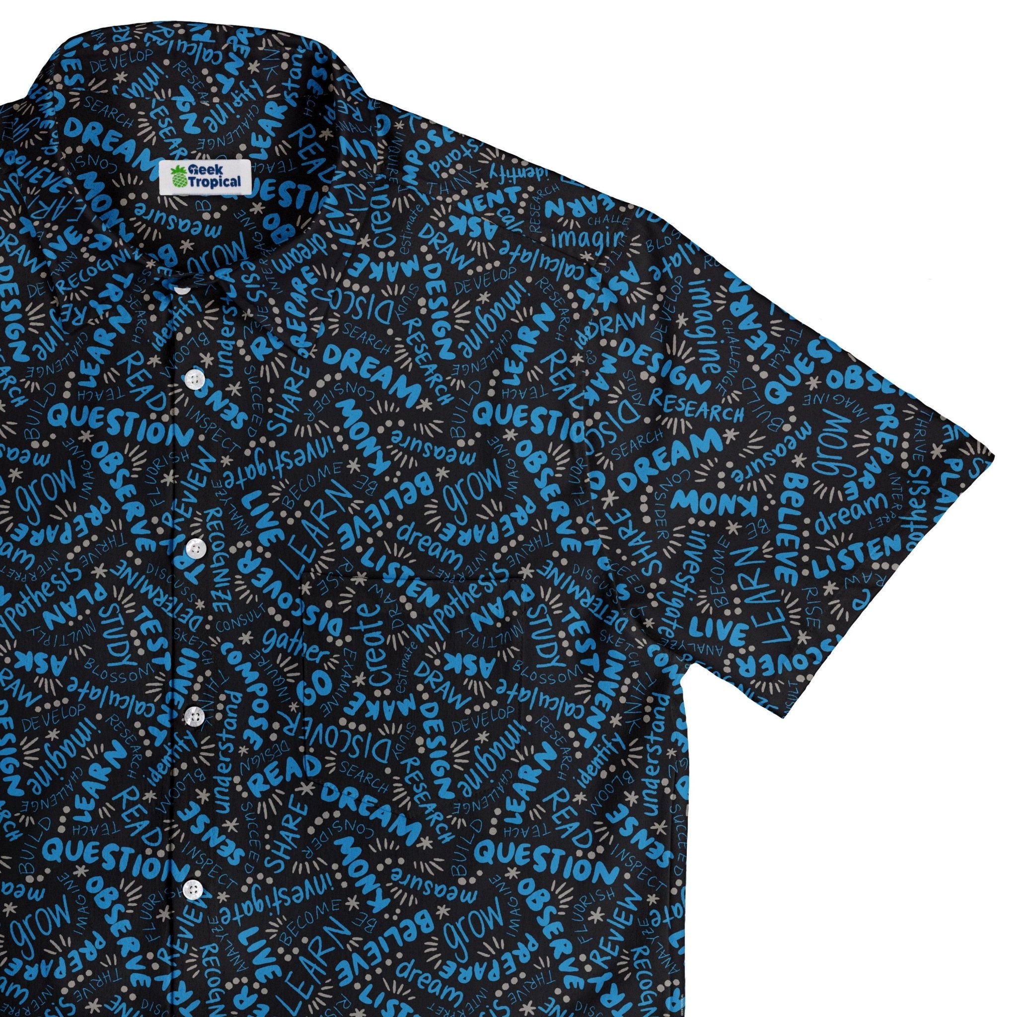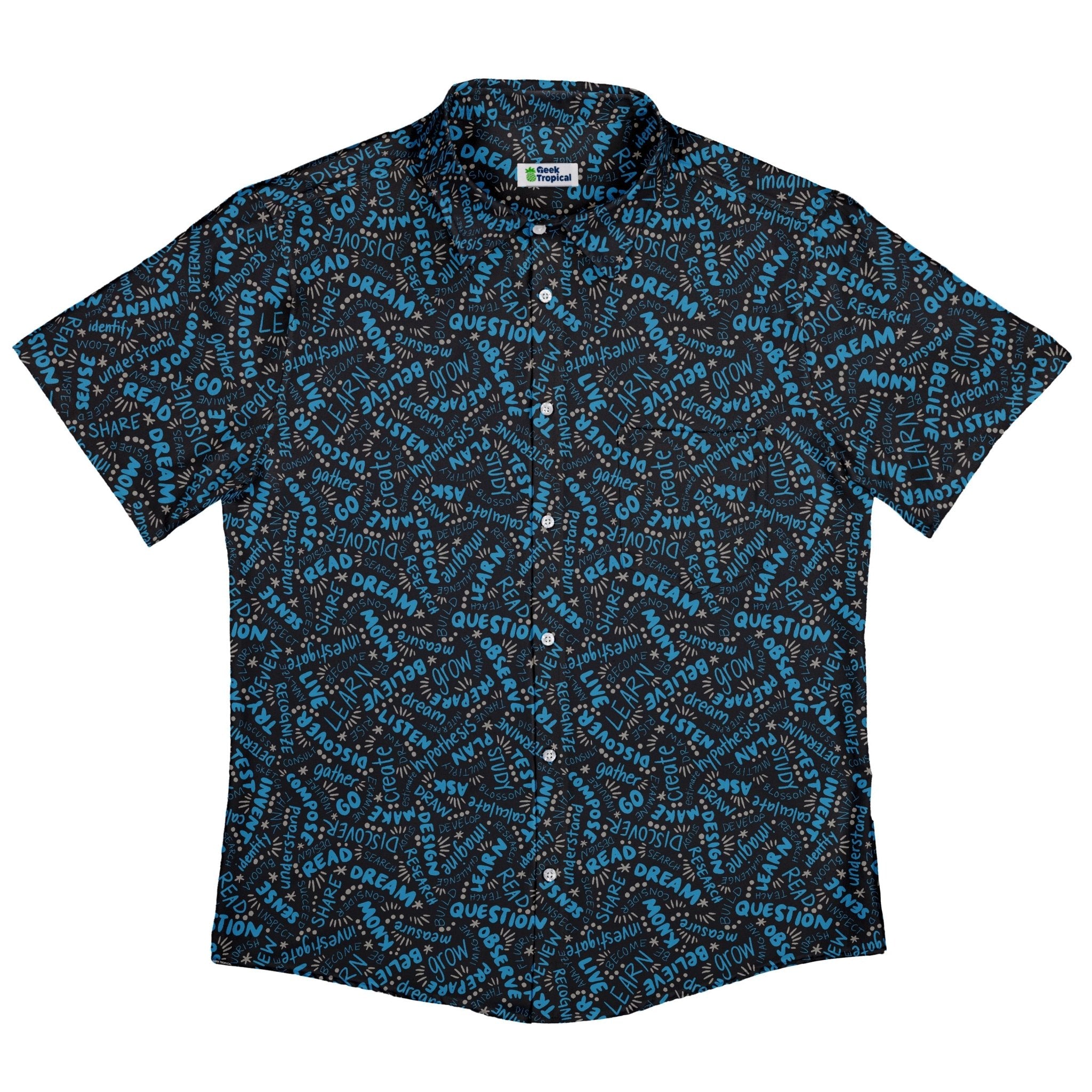 Meet the Learner Affirmations Button Up Shirt, a clever celebration of curiosity you can actually wear. Designed by Zirkus Design, its seamless science print threads uplifting study vibes and tidy linework across the placket and pocket for a crisp, continuous look. Light, breathable, and easy to move in, it dresses up or down with nerdy confidence—artist-backed and printed with eco-conscious inks in adult sizing.