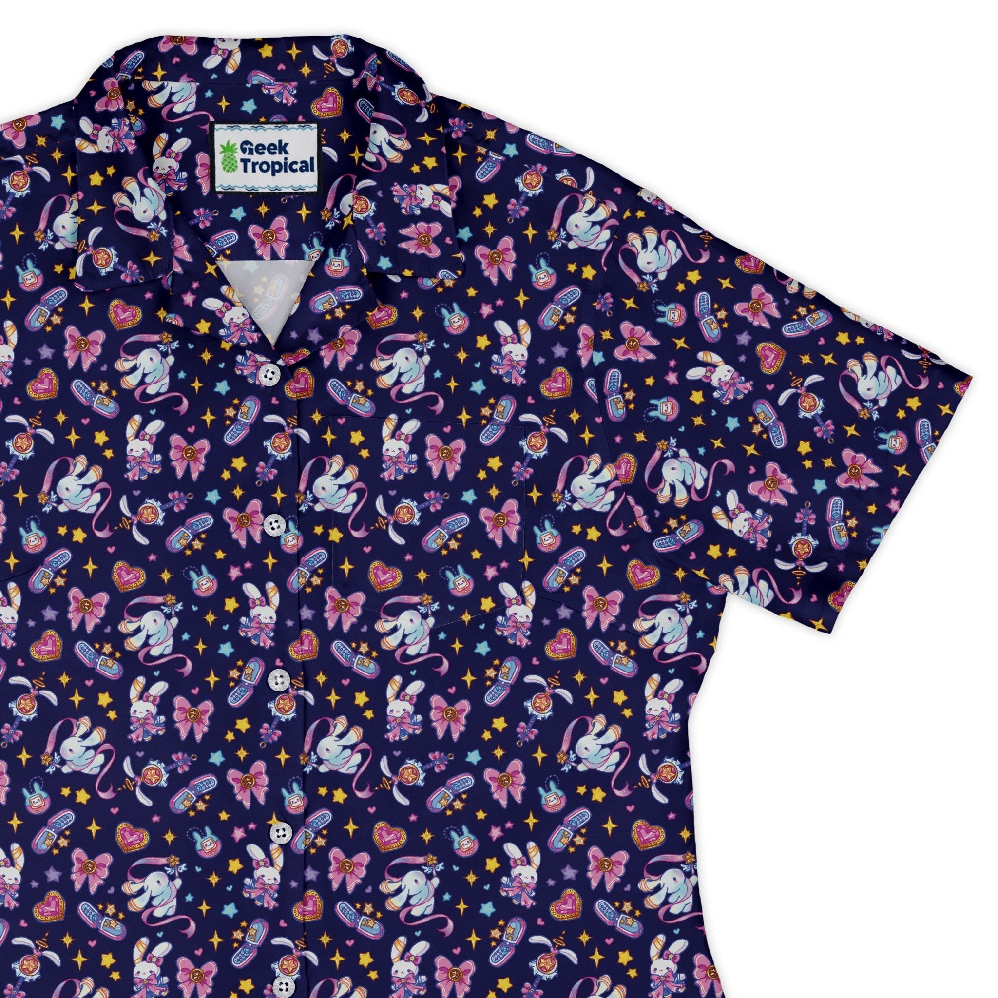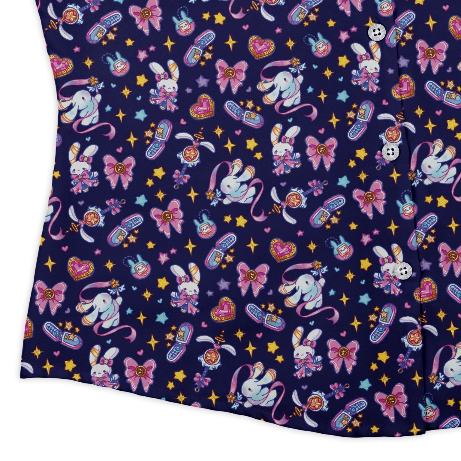 Meet the Magical Bunny Evolution Night Curvy Button Up Shirt—a nocturnal tapestry of whimsical bunny motifs with an anime flair. Designed by Ardi Tong, the artwork wraps smoothly across the front and pocket for a clean, uninterrupted look. Tailored to celebrate your curves with a polished untucked silhouette and adjustable sleeves, it feels easy all day and looks razor-sharp. Printed with eco-conscious inks and proudly artist-backed.