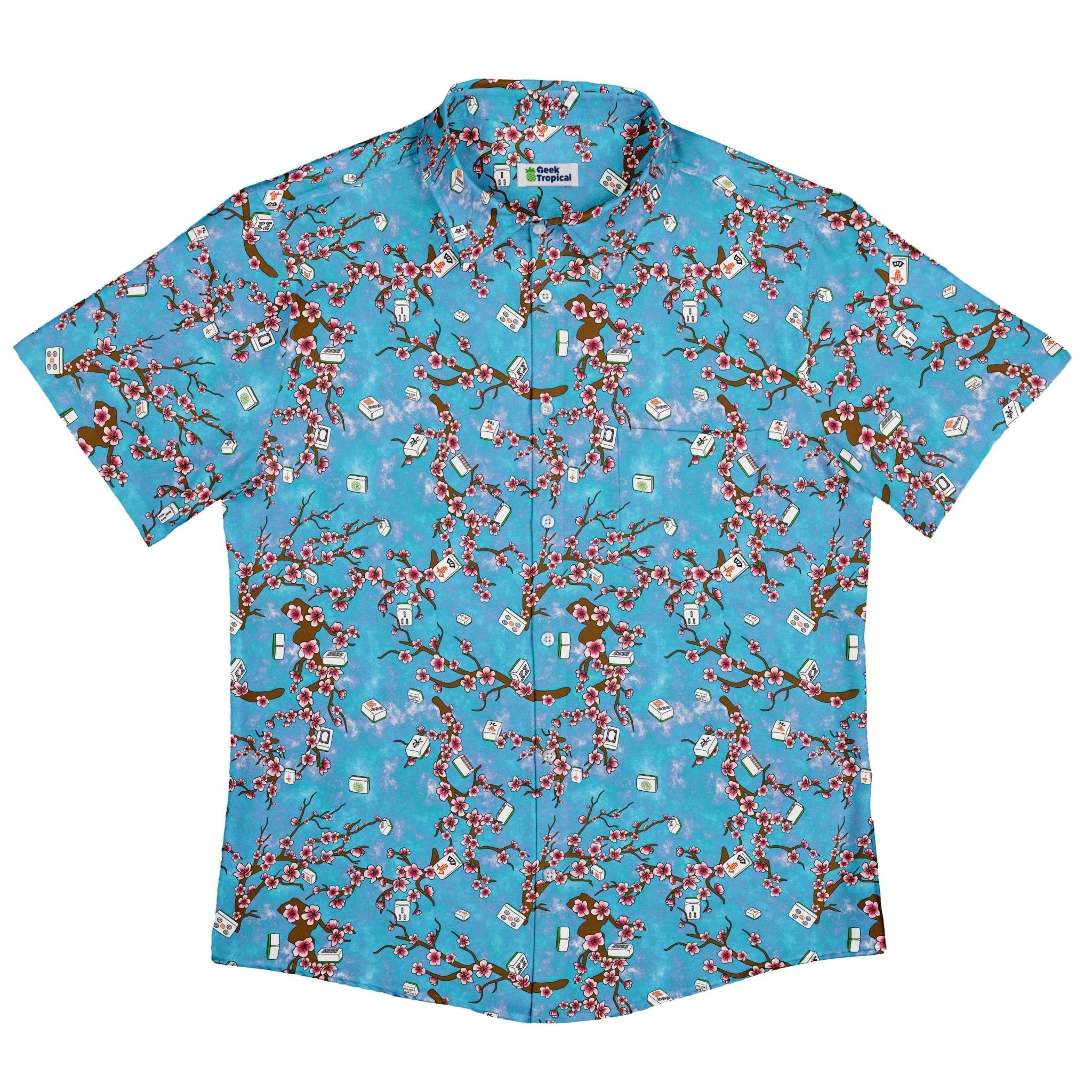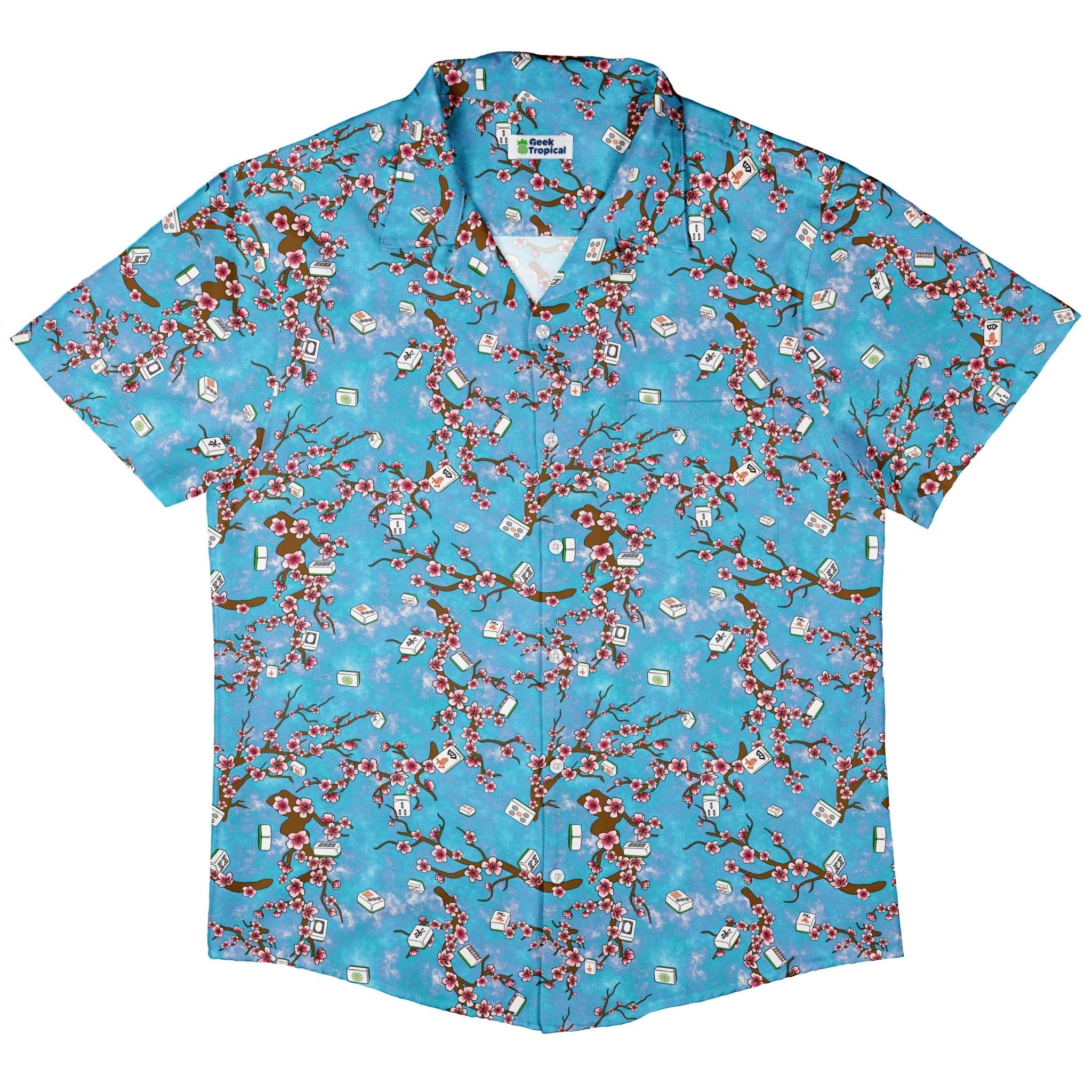Mahjong Tiles Sunrise Anime Button Up Shirt turns tabletop strategy into street-ready style. Crisp mahjong tile faces scatter across a warm dawn gradient, while a burst of sunrise rays in the corner gives the print a clean anime vibe. Comfortable from first deal to last round, it levels up everything from casual Fridays to con halls. Designed by Nathan with licensed art, printed using planet‑minded inks that support the artist.