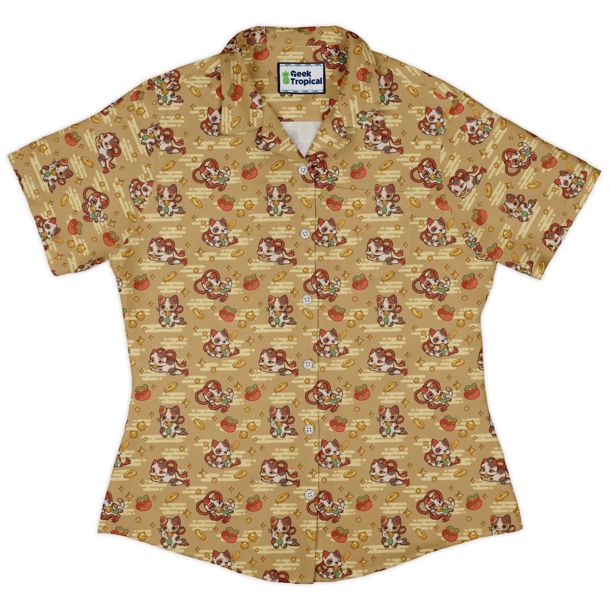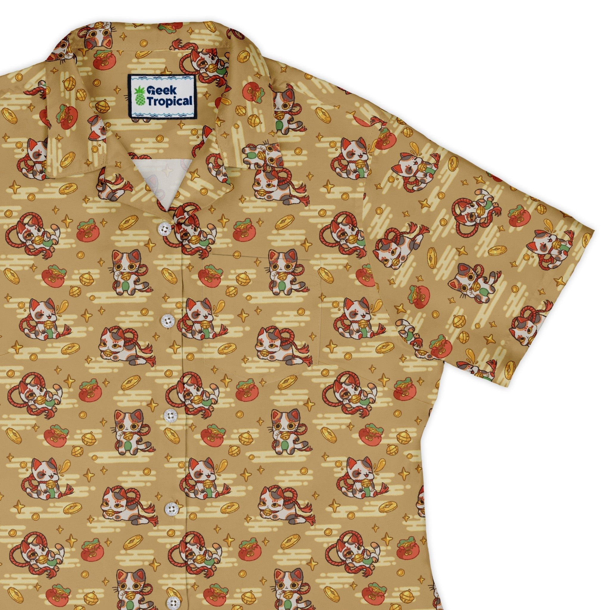 Maneki Cat Gold Curvy Button Up Shirt