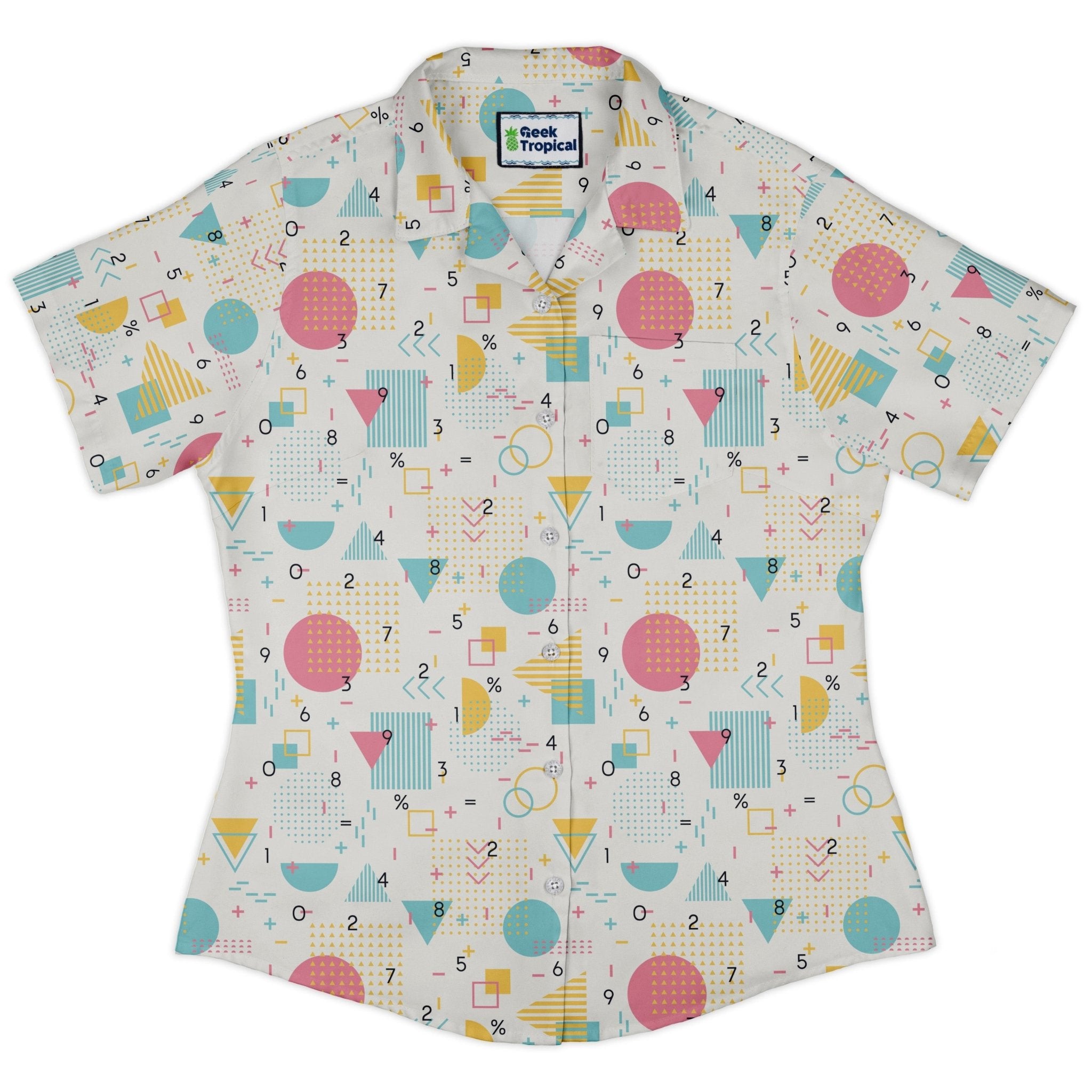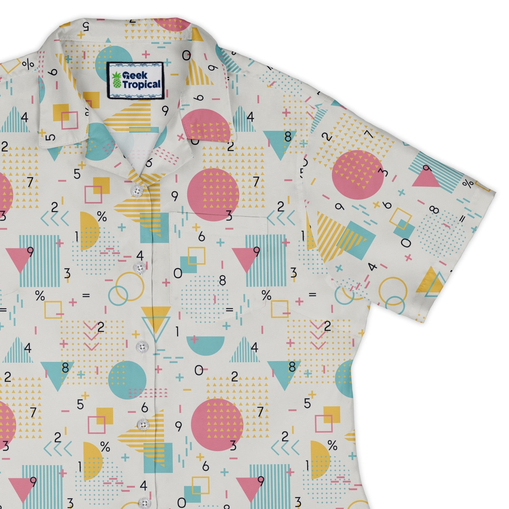 Meet the Math Memphis Style White Curvy Button Up Shirt, a clever mash-up of geometry and retro pop. On a crisp white base, playful Memphis motifs—bold shapes, lines, and squiggles—create a maximalist math print that’s equal parts smart and fun. The curve-loving cut and rounded hem wears easily untucked, with adjustable sleeves for fitted or relaxed days. The pattern flows across the placket and pocket, plus branded buttons and eco-conscious inks. Every purchase supports licensed artists.