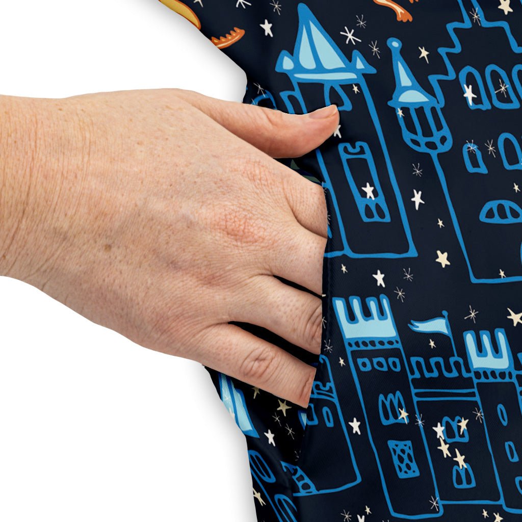 Breathe saga-worthy style into your day with the Medieval City Dragon Dress, a fantasy print by Zirkus Design. A sweeping medieval skyline sets the stage as a dragon coils above rooftops and ramparts, wrapping the dress in storybook drama. Polished enough for the office, playful enough for Dnd nights, and blessed with real pockets you’ll actually use. Soft, breathable, opaque, and ready for quests — all while supporting licensed artists.