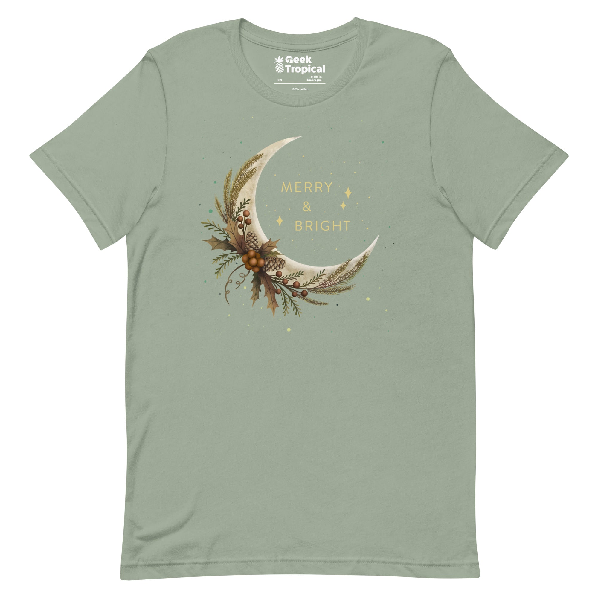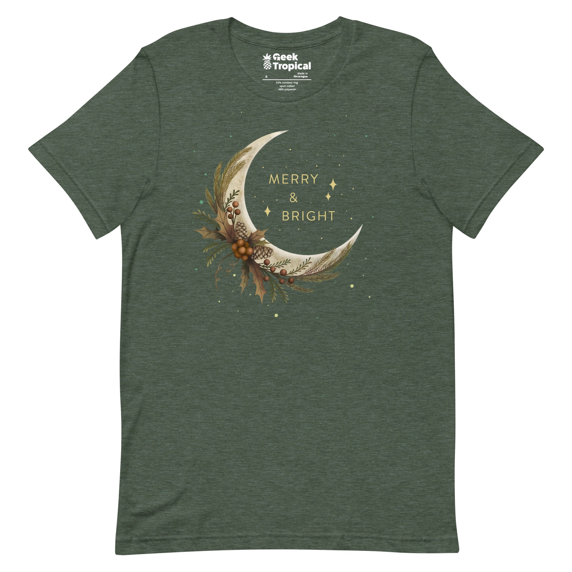 Merry And Bright T-Shirt brings cozy holiday energy to your nerdy rotation. The graphic spotlights hand-drawn Merry and Bright typography framed by starry accents—clean, bold, and ready for gift selfies and late-night marathons. Designed by Episodic Drawing and printed with eco-minded inks, this artist-backed tee delivers vivid color, soft wear, and a fit that stays sharp through the season and beyond.