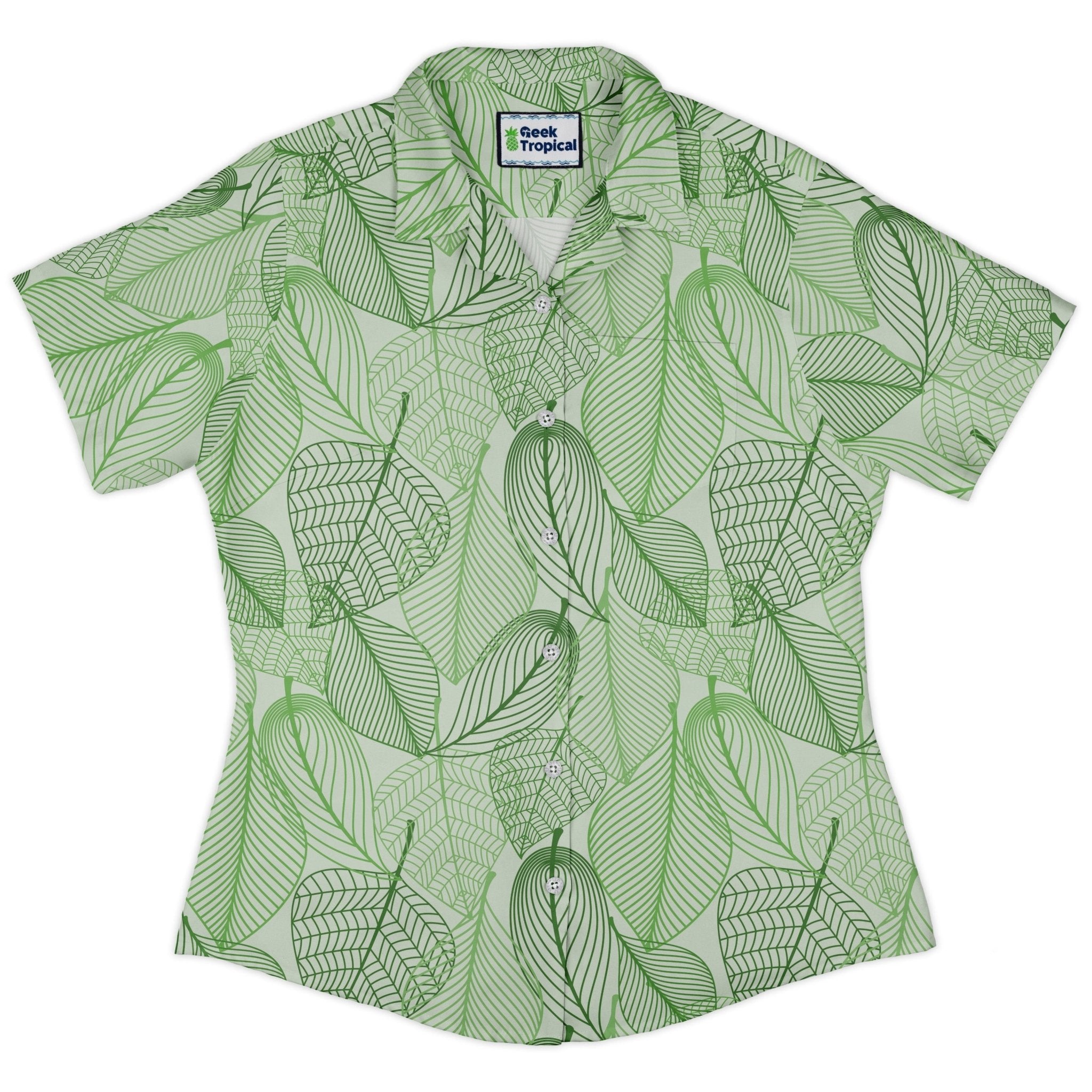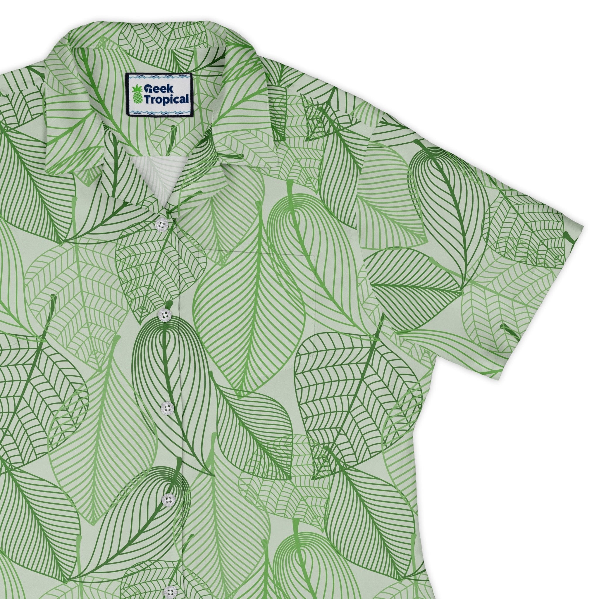 Micro Minimalist Leaves Curvy Button Up Shirt