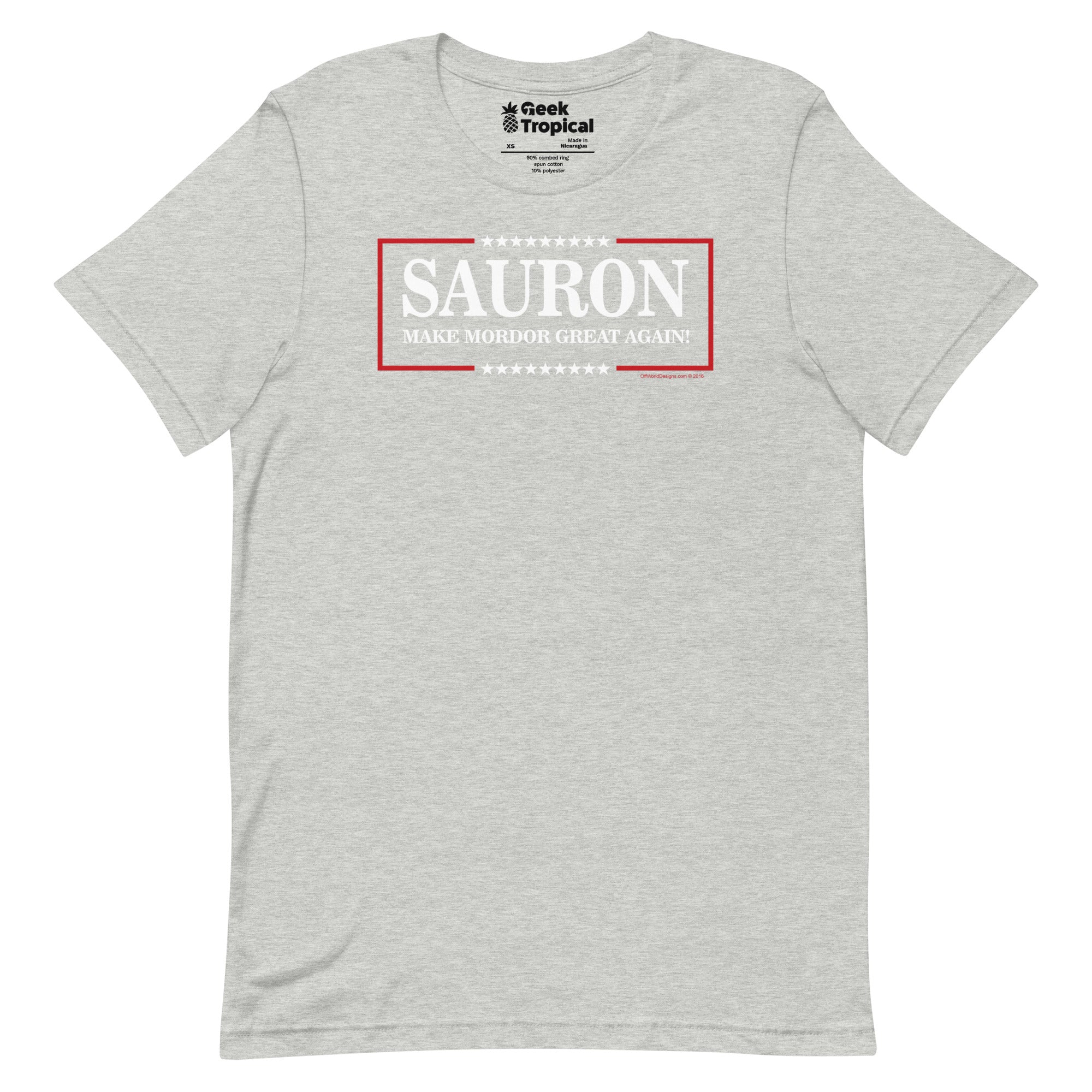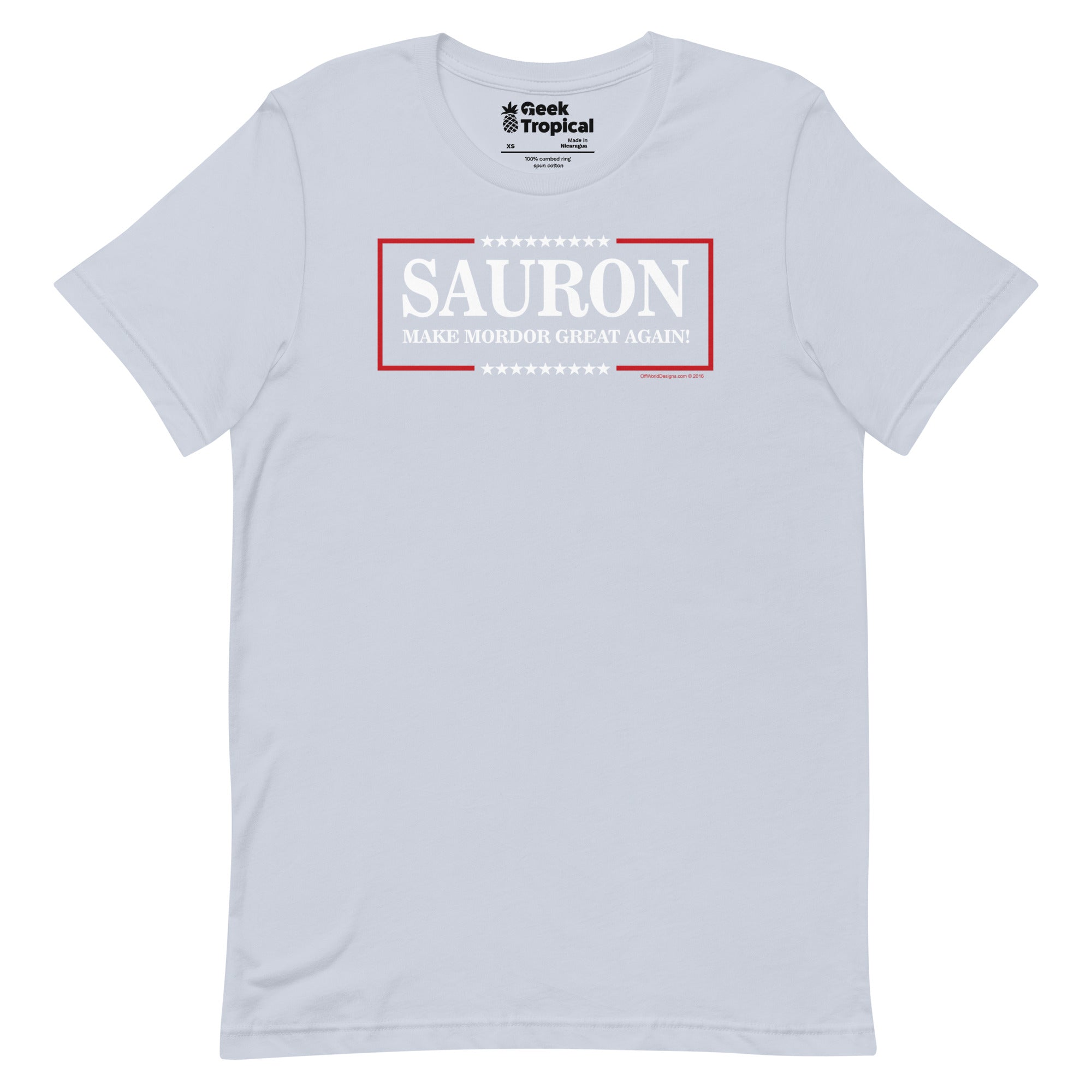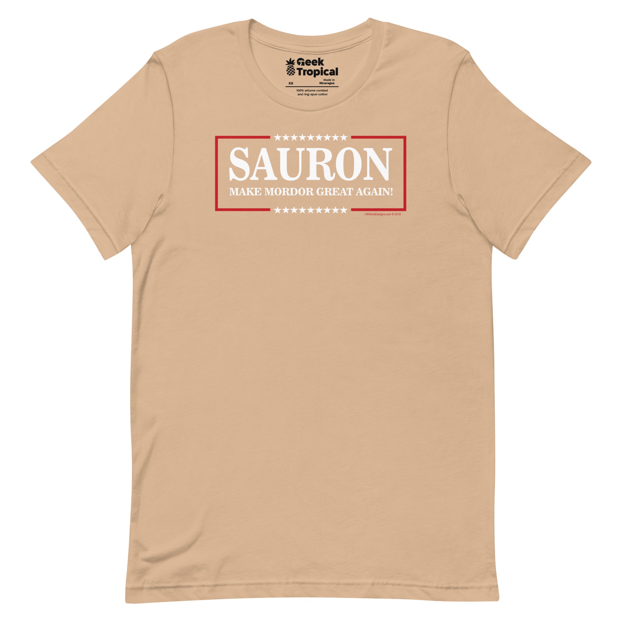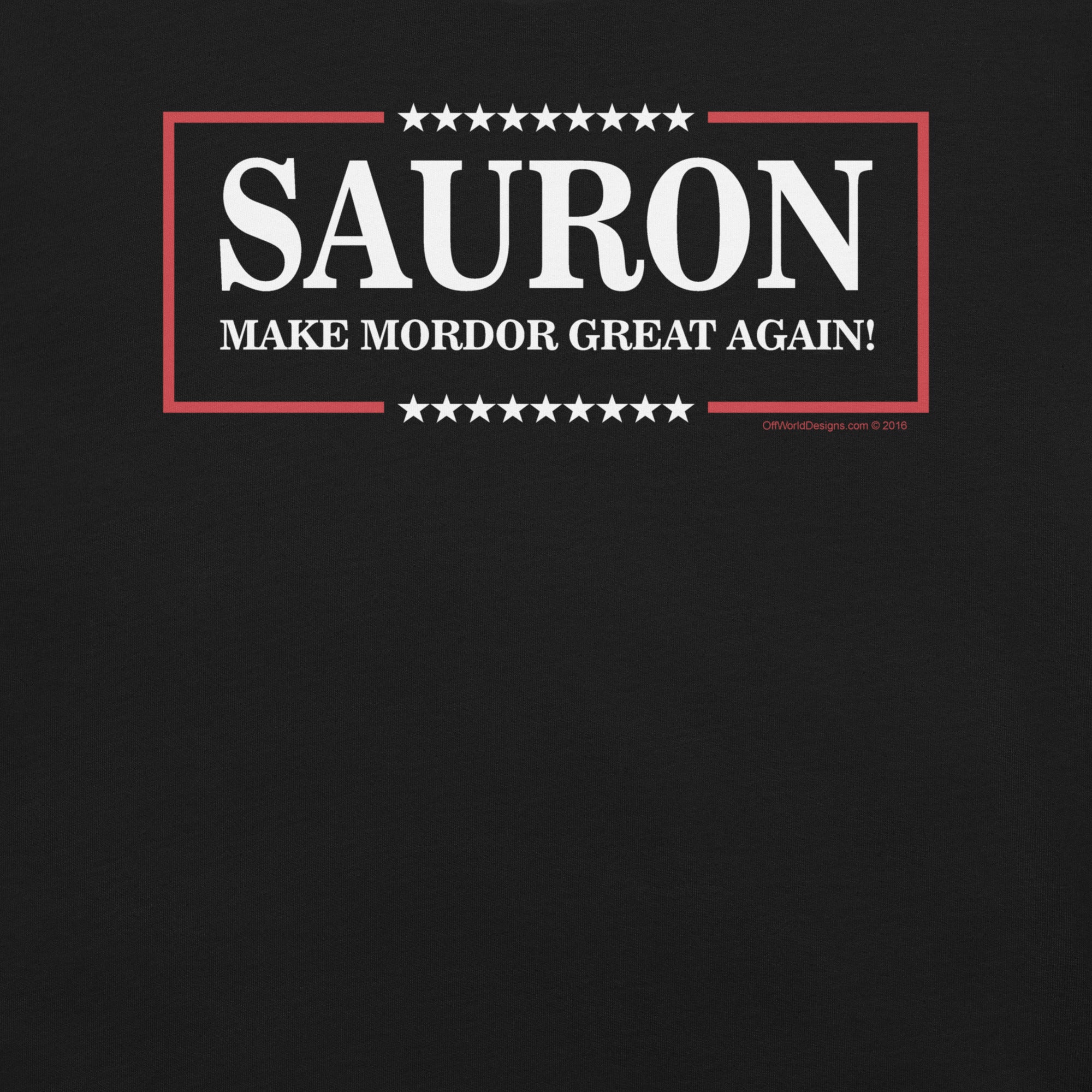 Make Mordor Great Again T-Shirt is your cheeky campaign tee for fans who like their fantasy served with political satire. The graphic leans into a bold slogan layout with a tongue‑in‑cheek, election-style vibe straight out of the land of shadow. Soft, lightweight, and ready for quest marathons or con-floor debates. Designed by Off World Designs—officially licensed, artist-backed, and printed with eco‑conscious inks for crisp, lasting color.