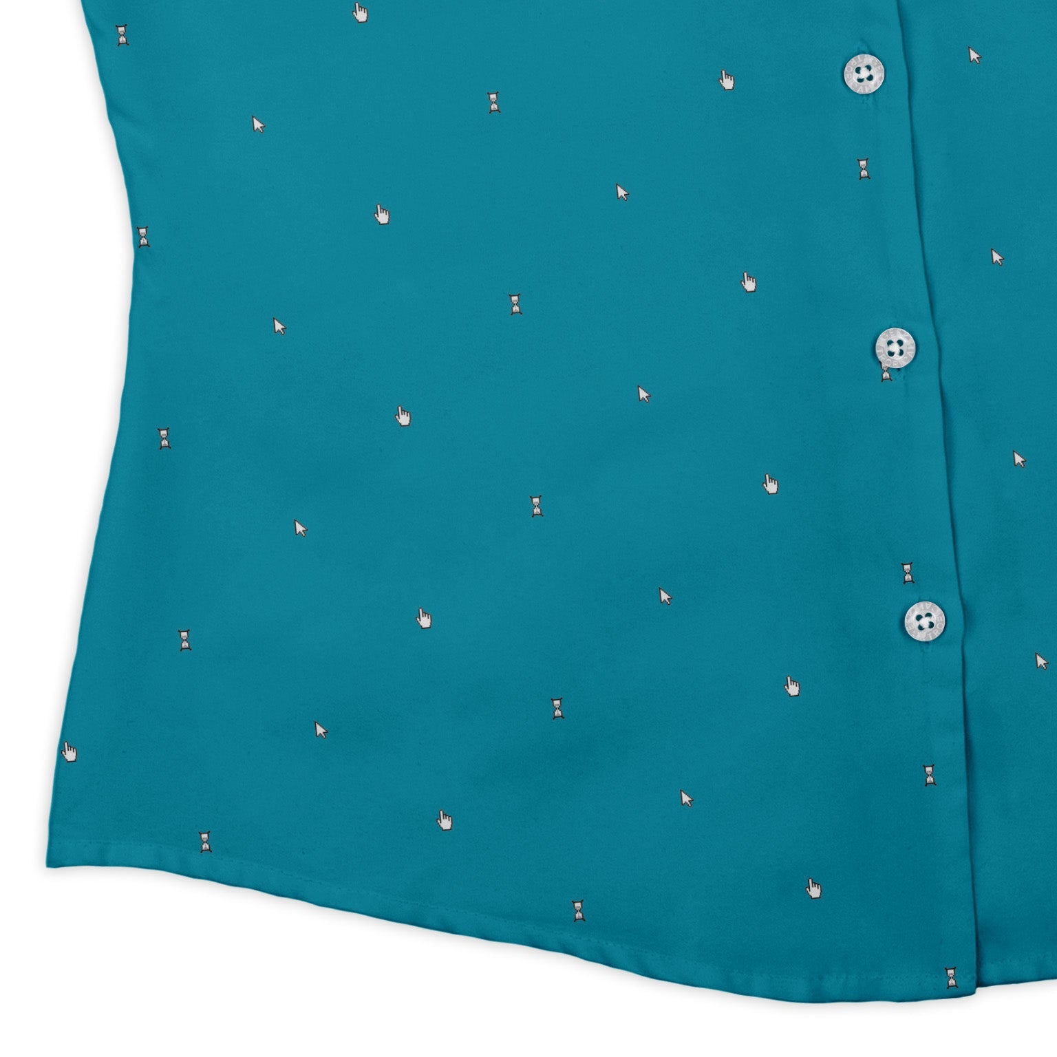 The Mouse Curvy Button Up Shirt pairs geeky charm with an easy, curve-following cut. A clean, repeating computer-mouse motif, designed by Claire Murphy, wraps smoothly across the body and pocket for a satisfyingly seamless look. Wear it untucked and polished, with narrow shoulders and adjust-and-go sleeves keeping it comfy. Finished with branded buttons and printed with eco-conscious inks to support licensed artists.