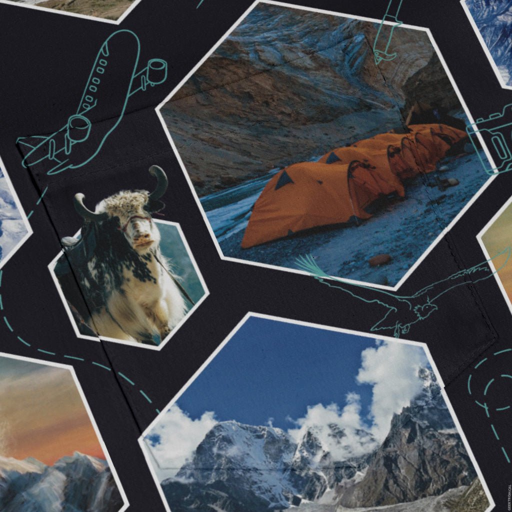 The Mt Everest Wonder Long Sleeve Button Up Shirt merges alpine awe with sci‑fi charm: Everest’s massif crowned by a dreamy outer‑space skyline where astronauts drift in serene orbit. Designed by Nathan, this art-forward print lines up cleanly across the front and pocket, with a smooth, breathable feel and an easy, regulaxed fit. Button cuffs dial in your sleeves, and eco‑conscious inks keep your look stellar and thoughtful.