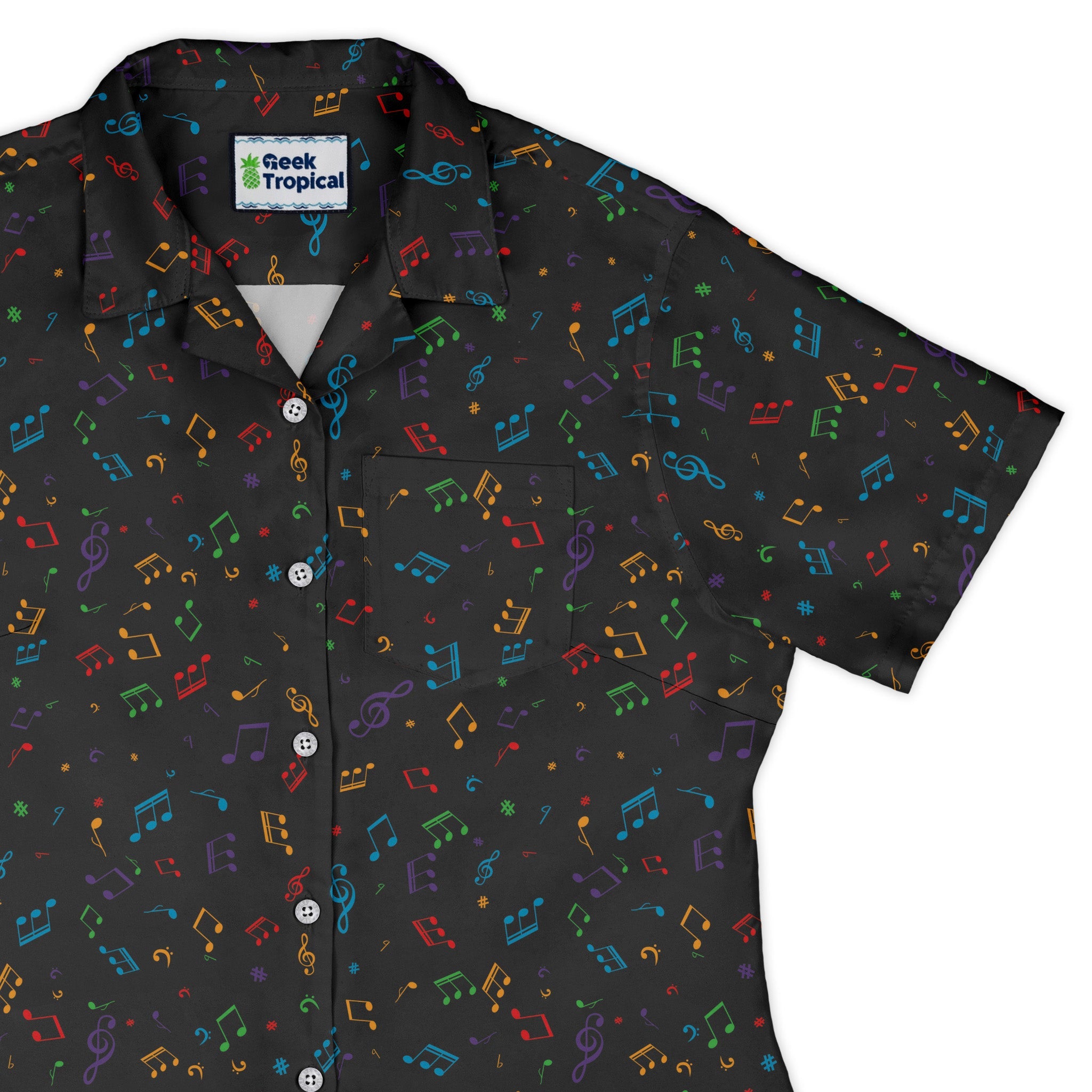 Musical Rainbow Notes Black Curvy Button Up Shirt